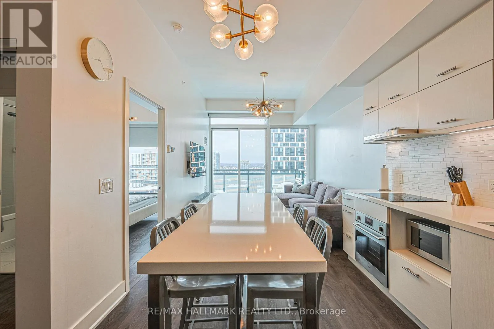 Cross Streets: Birchmount & Enterprise Blvd. ** Directions: North East Corner of Enterprise and Birchmount. Executive 1-bedroom, 1-bathroom penthouse condo offering luxury living in the heart of Downtown Markham. This open-concept unit features soaring 10-ft ceilings and includes P1 parking. Thoughtfully designed with hardwood flooring, quartz countertops, and a modern kitchen equipped with integrated appliances, built-in oven, and a versatile movable kitchen island. Floor-to-ceiling windows fill the space with natural light, while the private balcony offers views of surrounding restaurants, shops, and businesses-ideal for outdoor enjoyment. As part of the Signature Collection Residences, residents enjoy access to Marriott Hotel amenities, including a fitness centre, indoor pool, hot tub, meeting spaces, and on-site dining options such as Ruth's Chris Steak House and the acclaimed Draco Restaurant. Steps to boutique shops, fine dining, Cineplex VIP, YMCA, York University, the Carousel, and skating rink. Conveniently located near VIVA Transit, Unionville GO Station, and with easy access to Highways 7, 407, and 404. An excellent opportunity to enjoy upscale living in a highly sought-after Downtown Markham location. (id:27476)