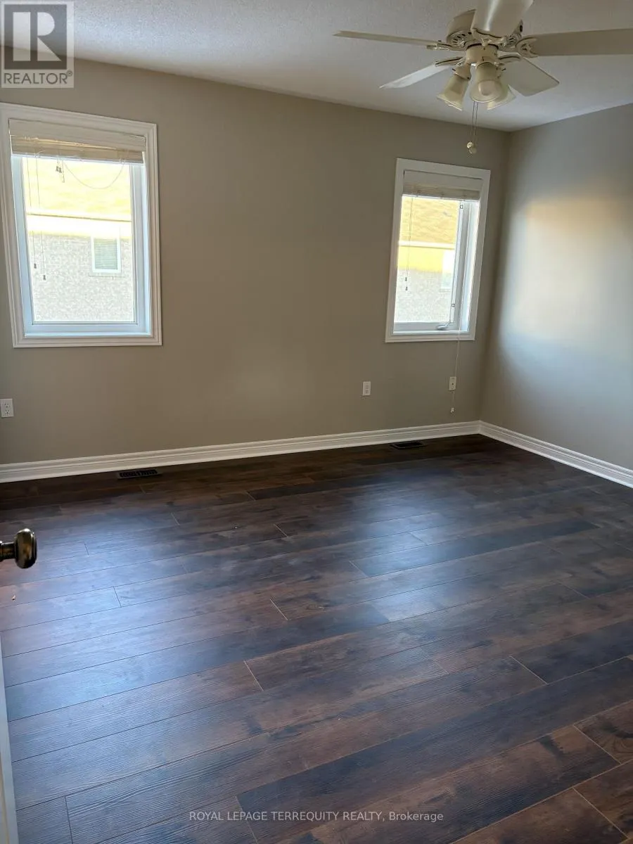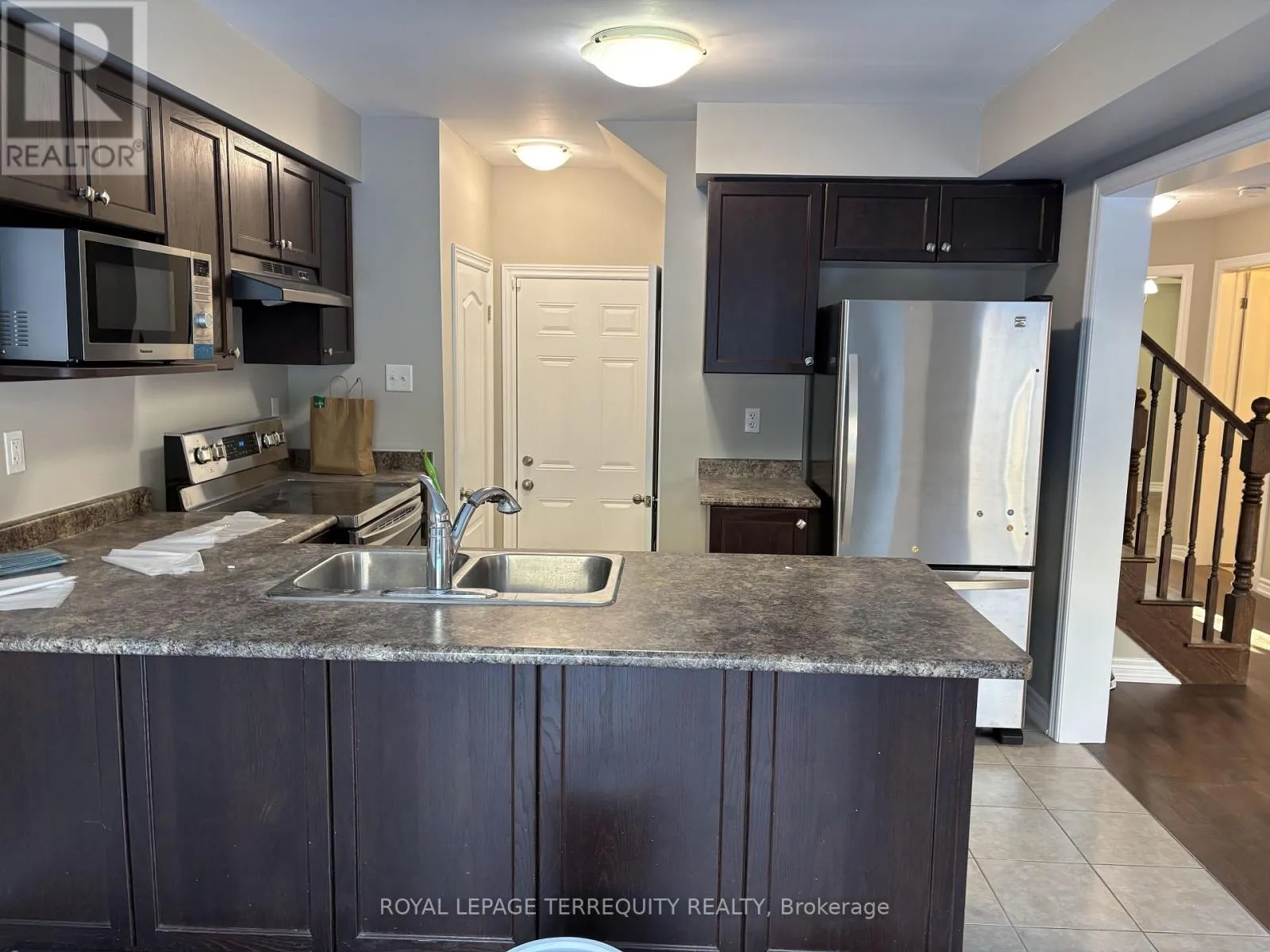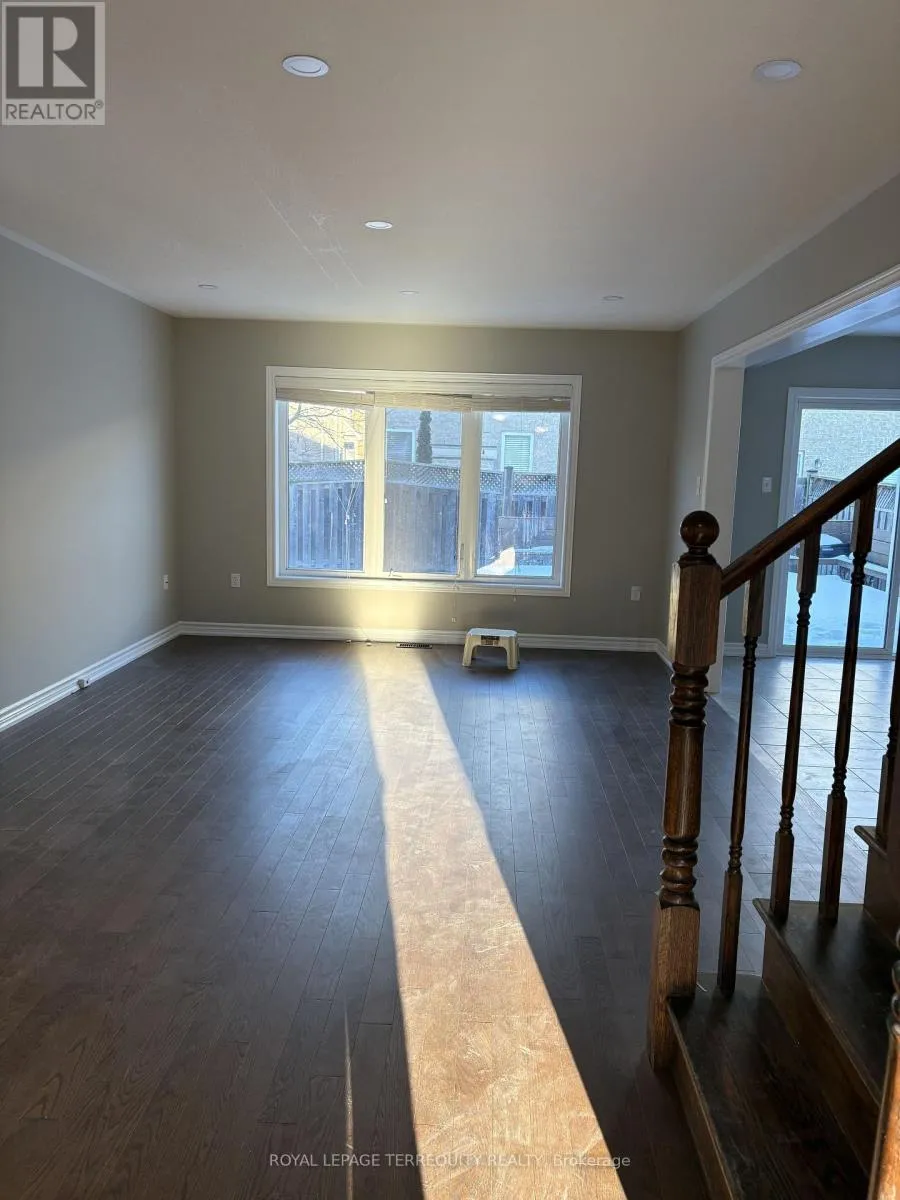 Bur Oak/Mingay Well-maintained Ballantry home offering over 1,700 sq. ft. of living space, featuring 3 bedrooms and 2.5 bathrooms. The main floor includes a spacious family room combined with the dining area, along with a formal living room showcasing beautiful west-facing sunset views. The large kitchen is equipped with stainless steel appliances, a breakfast bar, and a separate breakfast area with a walkout to a generous deck - perfect for entertaining. The kitchen also provides direct access to the garage for added convenience. The basement is unfinished, offering ample storage space or room for additional use as needed. Recent upgrades include new hardwood flooring on the main floor and upgraded luxury vinyl plank flooring throughout the upper-level bedrooms and hallway. Freshly painted and move-in ready. This freehold end-unit townhome is located in the highly desirable Wismer community, known for its excellent schools, including Bur Oak Secondary School, Wismer Public School, and Fred Varley Public School. Ideally situated within walking distance to the GO Station , parks, and everyday amenities such as Home Depot, Shoppers Drug Mart, banks, and much more. (id:27476)