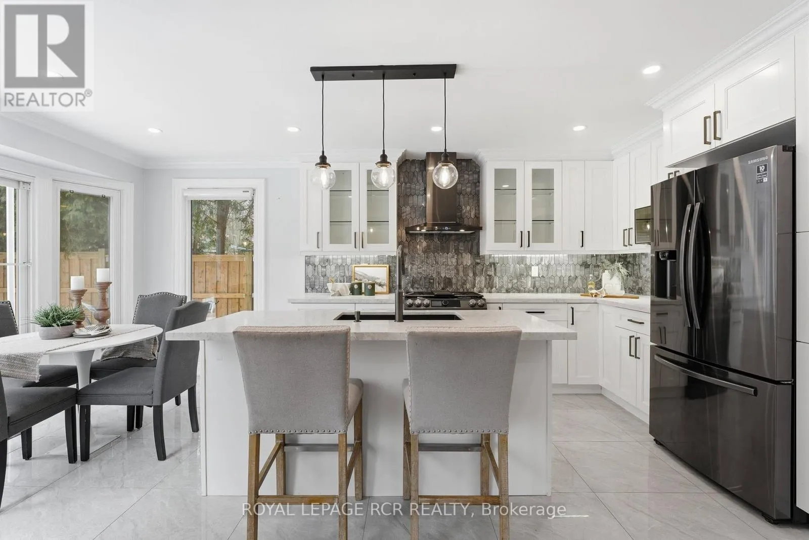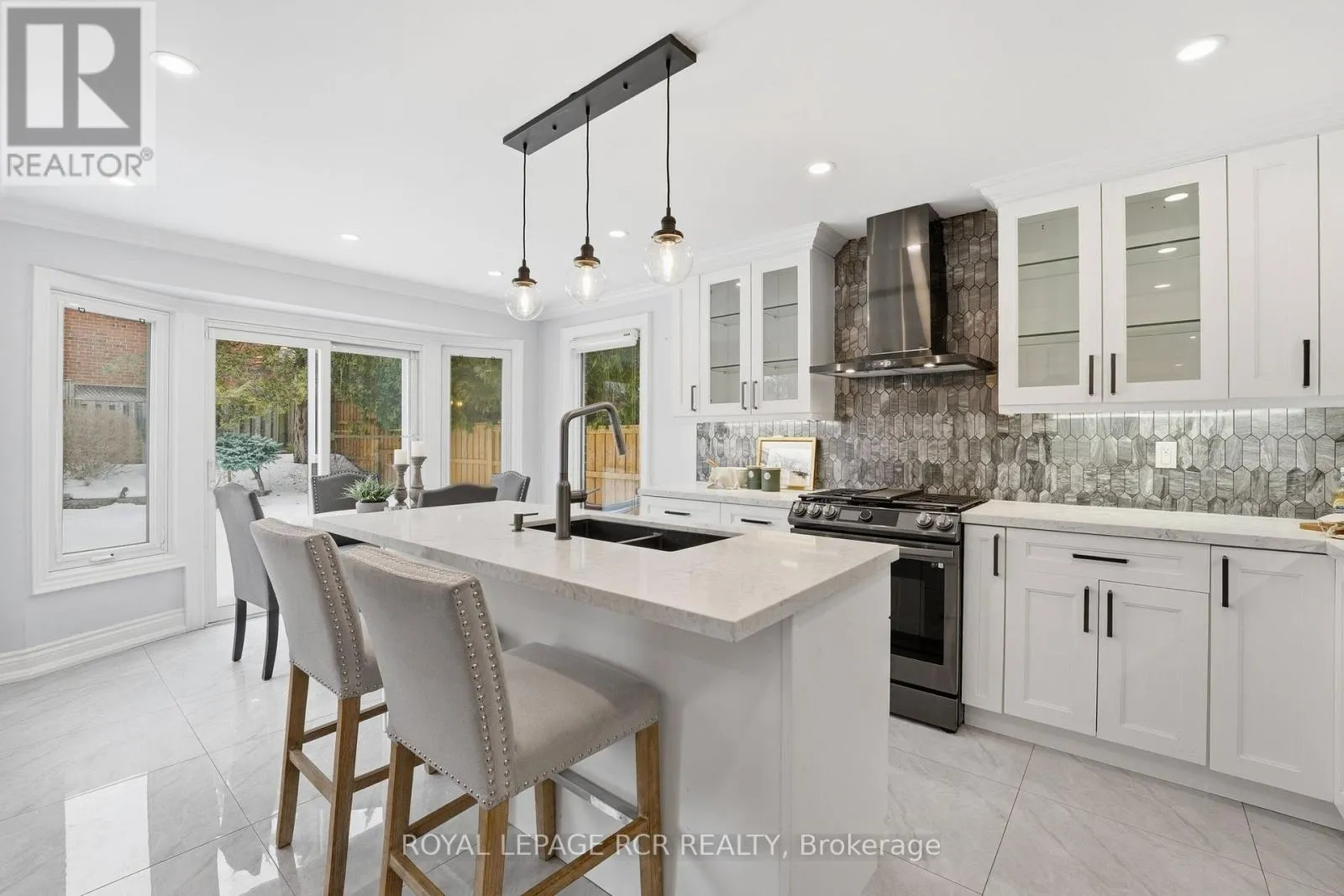 Cross Streets: 16th & Markham Rd. ** Directions: Fincham & Meyer Circle. Welcome to 2 Meyer Circle - A beautifully upgraded corner lot residence offering refined finishes, thoughtful updates, and a true family-focused layout in one of Markham's established neighbourhoods. Re-stained hardwood floors (2026), smooth ceilings, crown molding, and expansive principal rooms create an elegant yet inviting main level. The renovated kitchen (2022) is designed for both everyday living and entertaining, featuring quartz countertops, tile backsplash, centre island with seating, and stainless-steel Samsung appliances including a gas stove. A bright breakfast area walks out to the backyard, while the updated laundry room (2026) with new tile, sink, washer and dryer provides convenient garage and side access. Upstairs, four spacious hardwood bedrooms accommodate a growing family with ease. The primary suite offers a walk-in closet and a private 4-piece ensuite, while the additional bedrooms feature California shutters, wall paneling, and closets. The finished basement adds versatile living space with a recreation room, electric fireplace, added bedroom, renovated 4-piece bath (2024), and rough-in for a future kitchen, ideal for multi-generational living. Step outside to your private resort-inspired backyard, complete with a salt water concrete pool with heated in-ground spa, new pool equipment (2023), professional landscaping, and a new 10-foot privacy fence. A turnkey home that blends luxury finishes with the functionality today's families need. (id:27476)