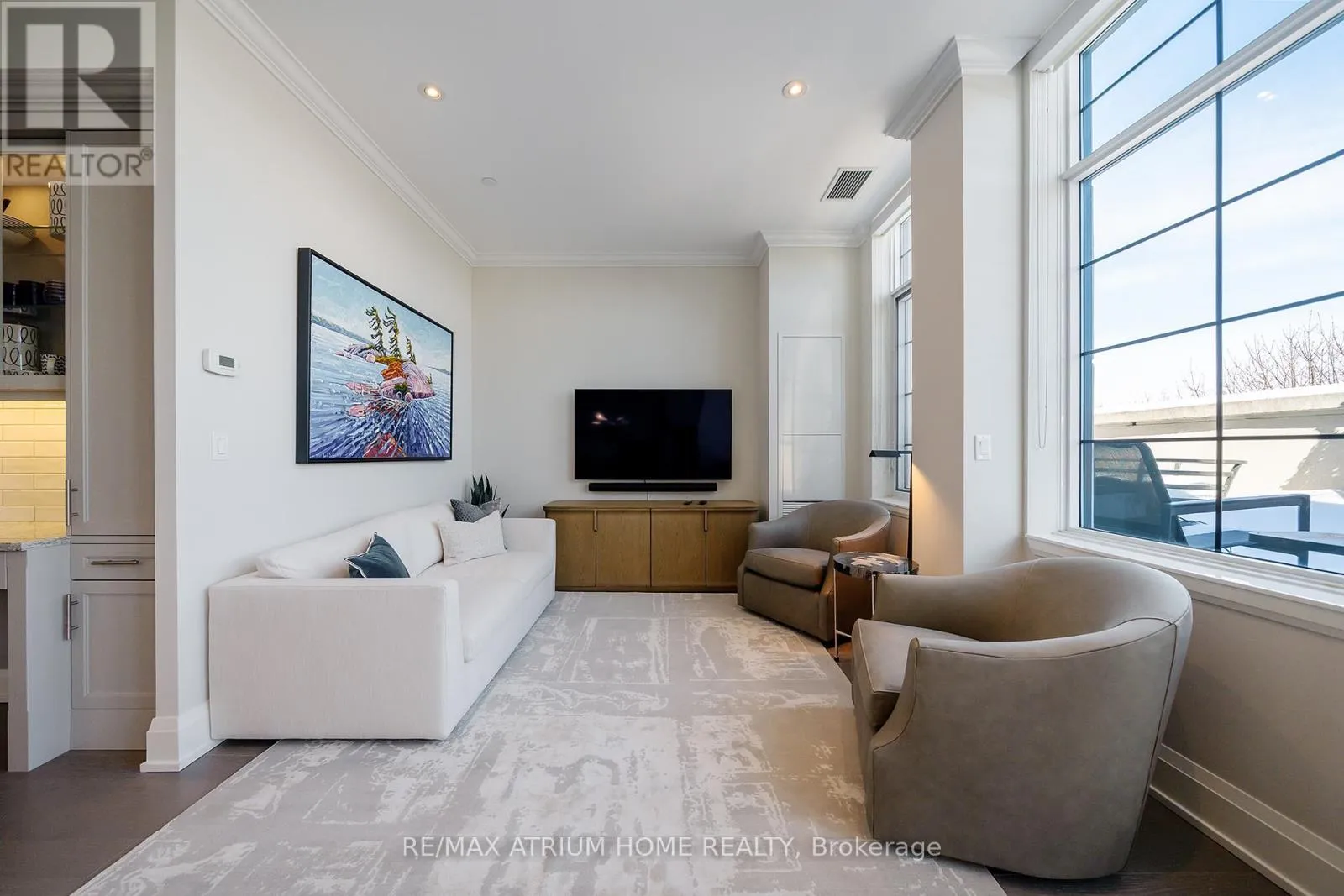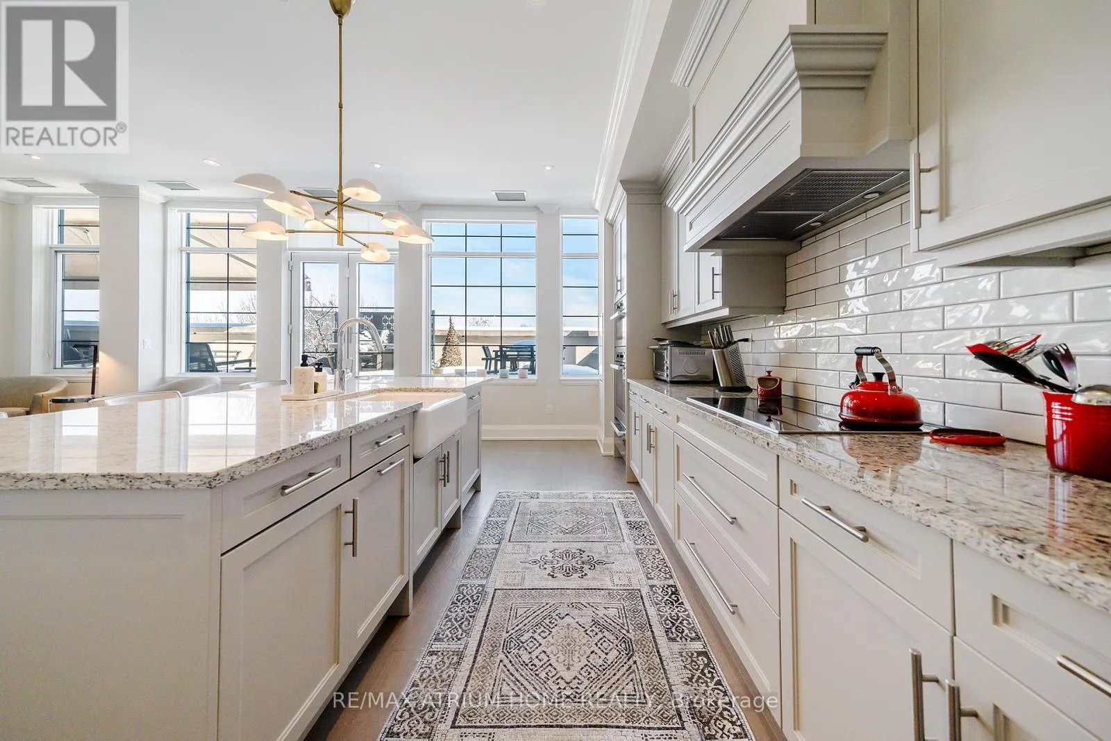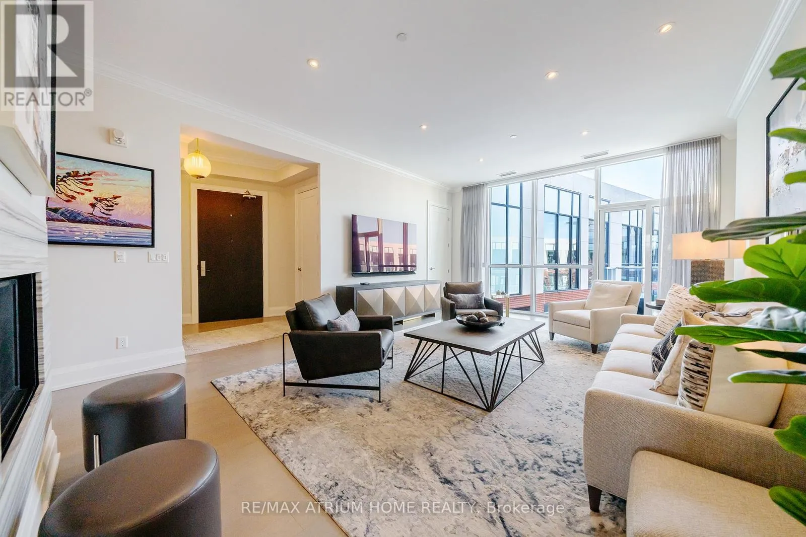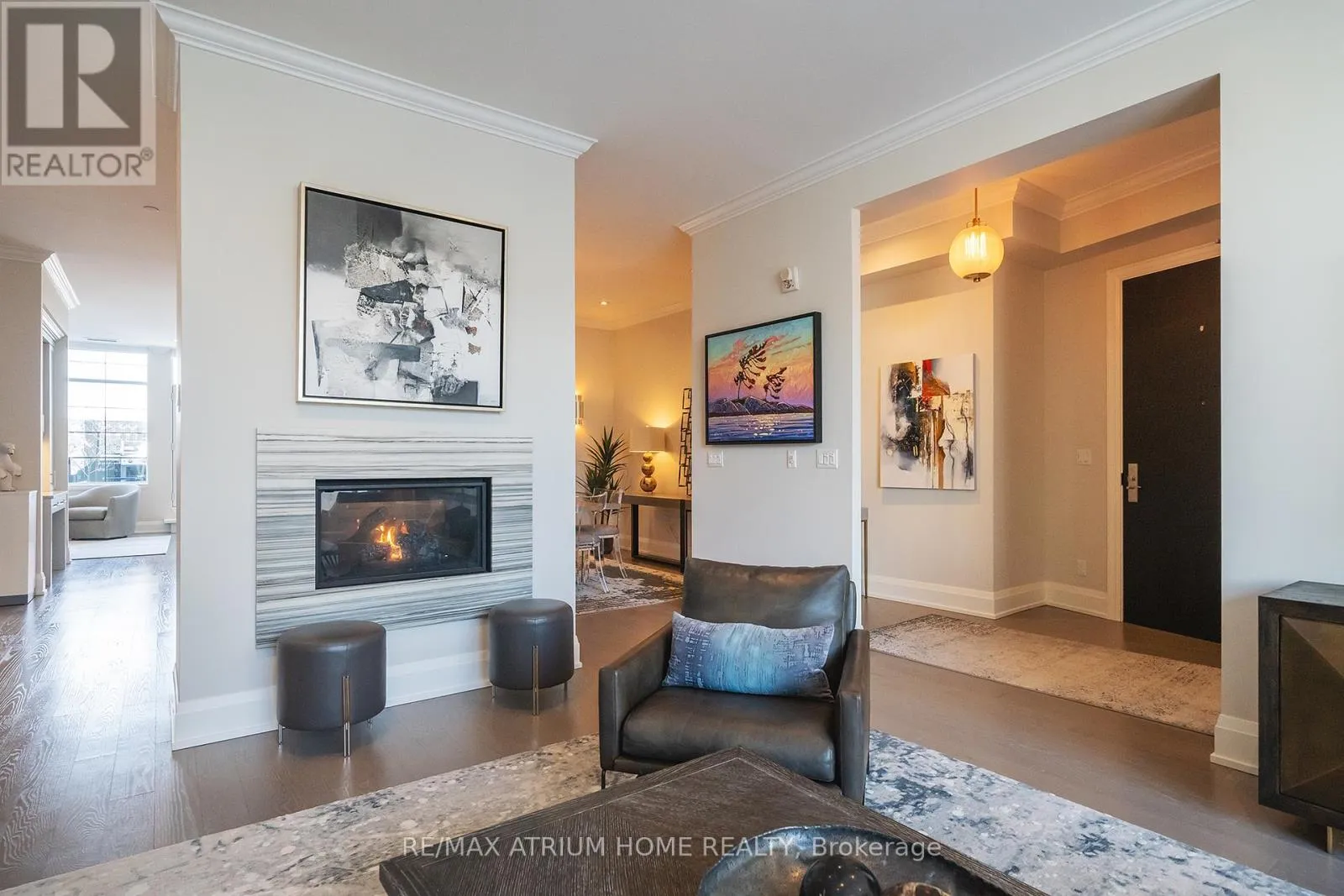 Cross Streets: Main Street Unionville / Fred Varley Dr. ** Directions: fred varley dr. A rare opportunity to own a luxury penthouse at The Varley, offering an exceptional and generously designed layout of 2,471 sq. ft- A truly unique find in the sought-after boutique community and a perfect place to call home. With desirable east and west exposures, the suite enjoys natural light throughout the day and beautiful sunset views in the evening. Inside, the spacious layout offers two well-appointed bedrooms, each with its own en-suite and walk-in closet, a third bedroom thoughtfully transformed into a den with a walk-in closet, and a separate family room adjacent to the kitchen that can easily function as an additional lounge or workspace. A sophisticated two-way fireplace elegantly separates the living and dining rooms, adding warmth and architectural presence to the main entertaining space. The impressive chef-inspired kitchen is just stunning, showcasing built-in Miele appliances, 55" paneled built-in double door fridge, a sleek Miele induction cooktop, generous cabinetry, and a wide island that comfortably seats 4-5 people, perfect for both everyday living and hosting. The den is further elevated by a georgeous 60" built-in Sub-Zero wine cooler with double glass doors. The home features both a private balcony facing the central garden and a quiet, private terrace, thoughtfully designed for refined outdoor living with lifetime high-end hardwood terrace tiles, fully retractable awnings, and a Weber Genesis II grill, creating the perfect setting for entertaining or relaxing outdoors. Additional features include two side-by-side parkings and two locker units. Residents enjoy 24-hour concierge, fitness centre, outdoor BBQ area, party room, and abundant visitor parking, all just steps from Main Street Unionville, scenic Toogood Pond, parks, trails, cafés, restaurants, and top-ranking schools-offering an exceptional lifestyle in one of Unionville's most desirable boutique residences. (id:27476)