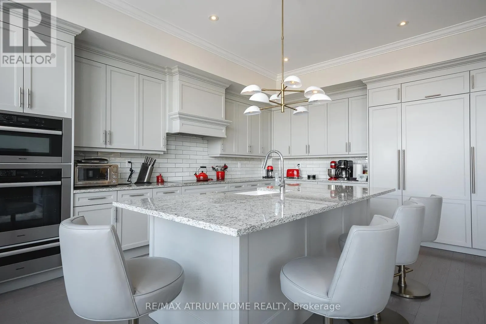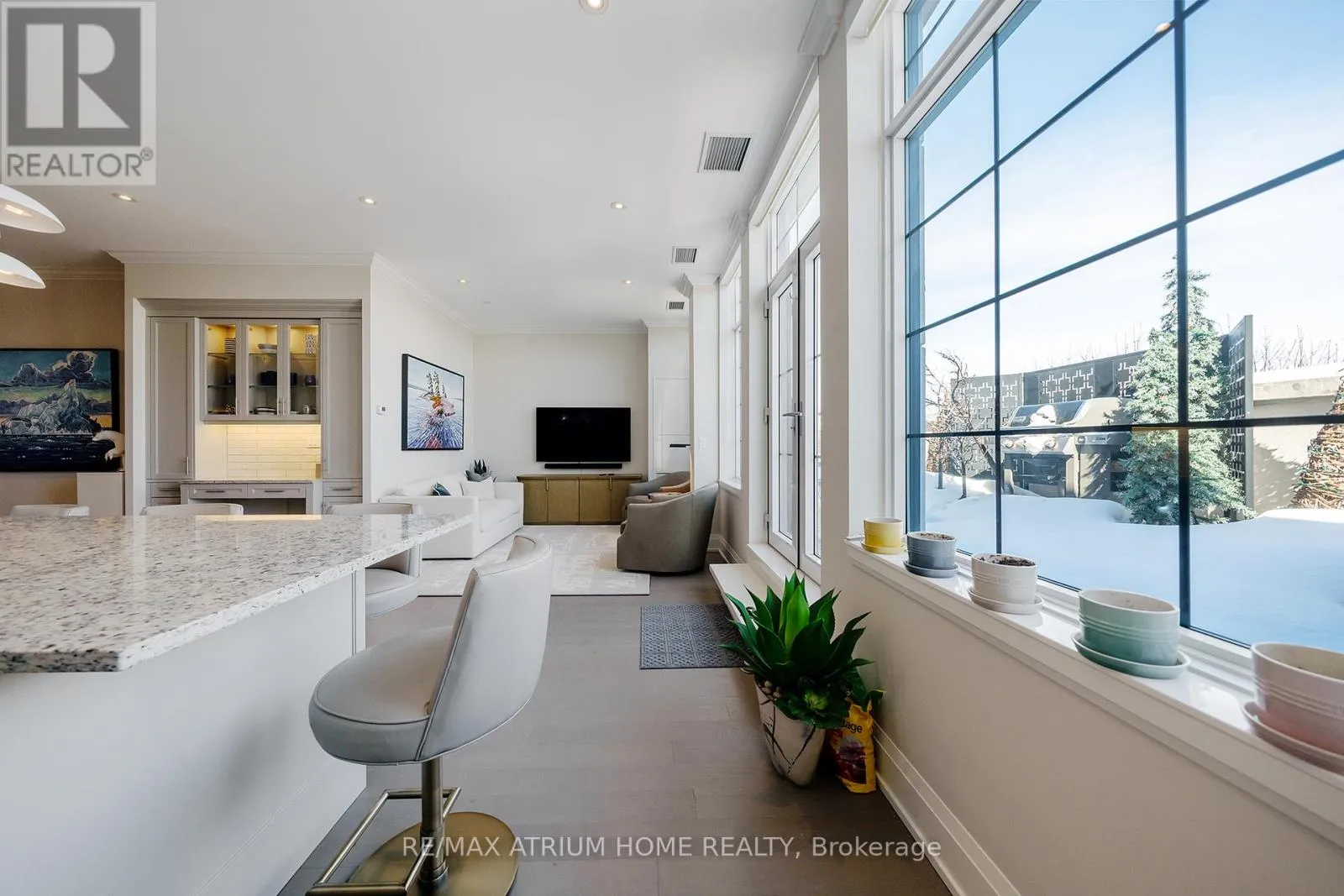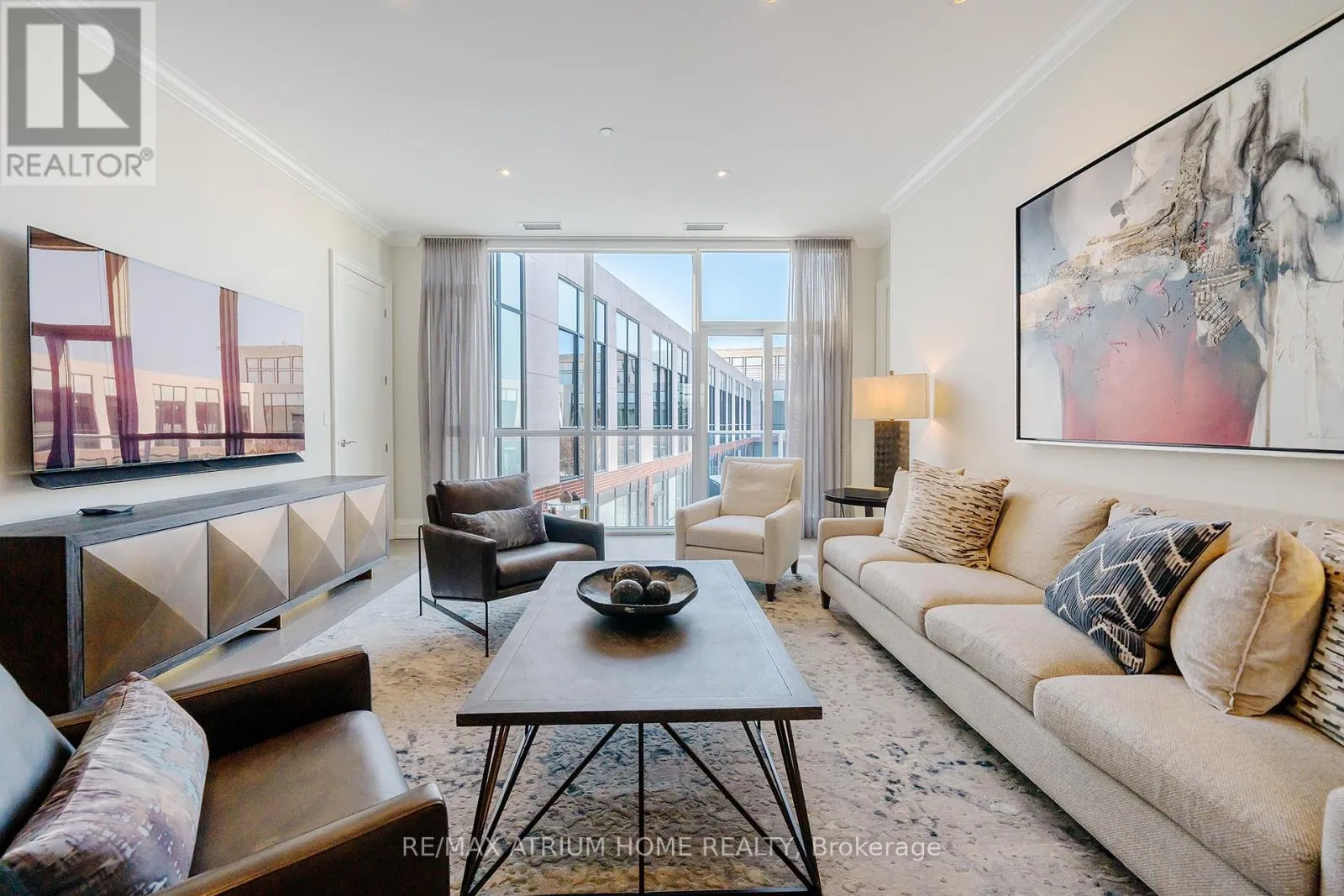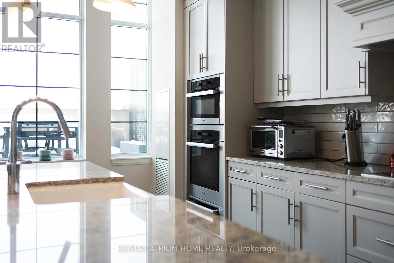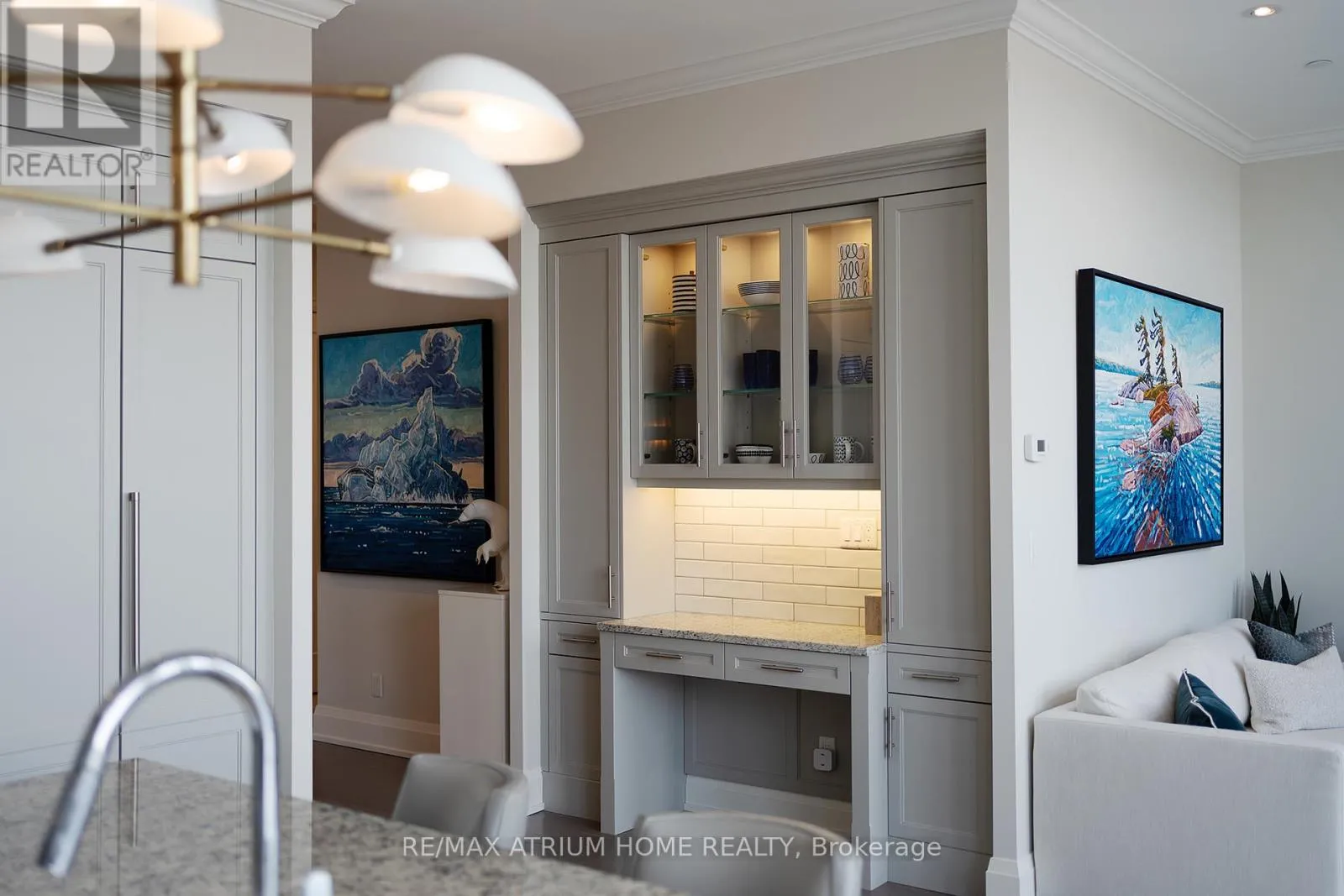 Cross Streets: Main Street Unionville / Fred Varley Dr. ** Directions: fred varley dr. A rare opportunity to own a luxury penthouse at The Varley, offering an exceptional and generously designed layout of 2,471 sq. ft- A truly unique find in the sought-after boutique community and a perfect place to call home. With desirable east and west exposures, the suite enjoys natural light throughout the day and beautiful sunset views in the evening. Inside, the spacious layout offers two well-appointed bedrooms, each with its own en-suite and walk-in closet, a third bedroom thoughtfully transformed into a den with a walk-in closet, and a separate family room adjacent to the kitchen that can easily function as an additional lounge or workspace. A sophisticated two-way fireplace elegantly separates the living and dining rooms, adding warmth and architectural presence to the main entertaining space. The impressive chef-inspired kitchen is just stunning, showcasing built-in Miele appliances, 55" paneled built-in double door fridge, a sleek Miele induction cooktop, generous cabinetry, and a wide island that comfortably seats 4-5 people, perfect for both everyday living and hosting. The den is further elevated by a georgeous 60" built-in Sub-Zero wine cooler with double glass doors. The home features both a private balcony facing the central garden and a quiet, private terrace, thoughtfully designed for refined outdoor living with lifetime high-end hardwood terrace tiles, fully retractable awnings, and a Weber Genesis II grill, creating the perfect setting for entertaining or relaxing outdoors. Additional features include two side-by-side parkings and two locker units. Residents enjoy 24-hour concierge, fitness centre, outdoor BBQ area, party room, and abundant visitor parking, all just steps from Main Street Unionville, scenic Toogood Pond, parks, trails, cafés, restaurants, and top-ranking schools-offering an exceptional lifestyle in one of Unionville's most desirable boutique residences. (id:27476)