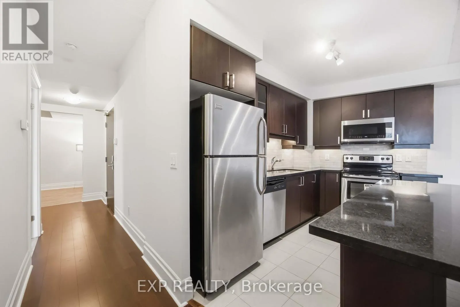 Warden/Hwy 7 Welcome to Verdale by Remington in the heart of vibrant Downtown Markham. This bright and spacious 1 bedroom plus den suite (755 sq ft) features 9 ft ceilings, large windows and a functional open concept layout with no wasted space. The modern kitchen offers granite countertops, stainless steel appliances, and a breakfast bar, overlooking the living and dining area with walkout to a private balcony. The generous den is ideal for a home office or can easily serve as a second bedroom. Residents enjoy excellent building amenities including 24-hour concierge, indoor pool, sauna, gym, party room with kitchen and dining area, theatre room, billiards room and outdoor terrace with BBQs. Located steps to Cineplex VIP, restaurants, shops, parks, YMCA, and York University Markham Campus, with easy access to GO Transit, Hwy 407, and Hwy 404. A fantastic opportunity to live in one of Markham's most sought-after communities. 2 side by side parking. 1 locker. (id:27476)