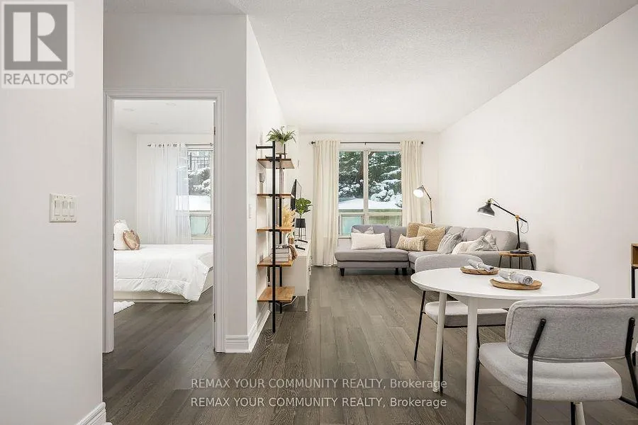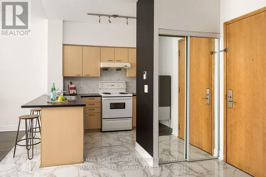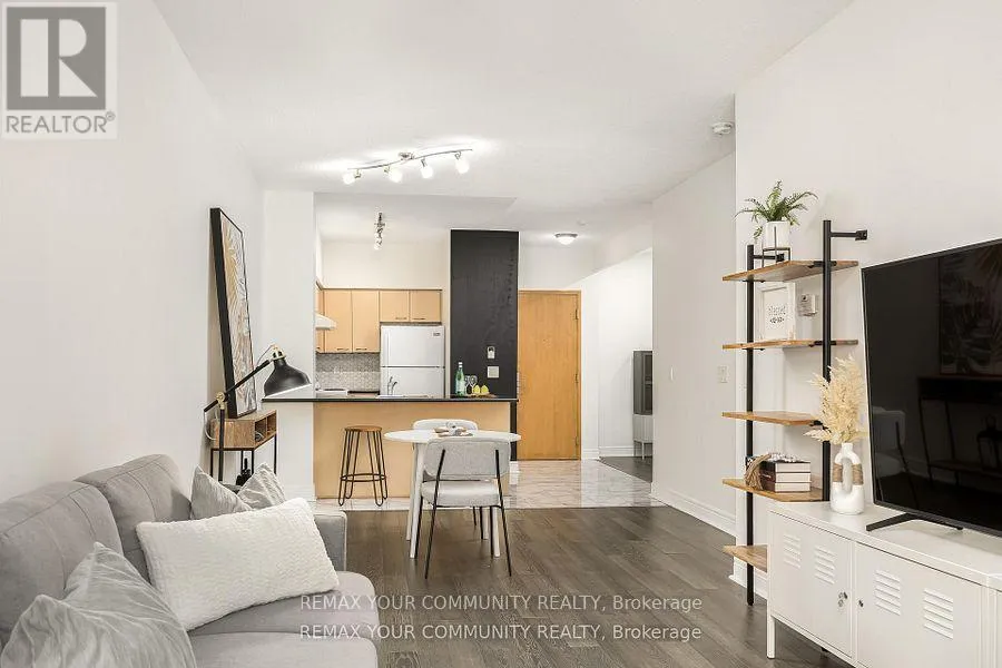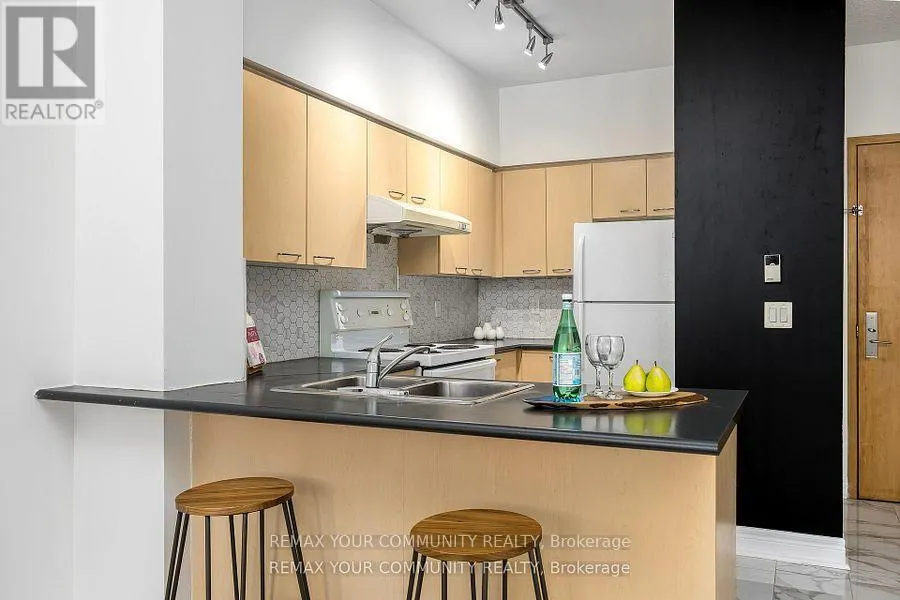 Hwy 7 & Leslie St. This bright and spacious 1+1 suite at the prestigious Thornhill Towers features one of the larger layouts in the building. Located in the highly sought-after Commerce Valley community, this well-appointed residence offers exceptional convenience and lifestyle appeal in the heart of Markham. The suite showcases upgraded flooring throughout, an open-concept kitchen with a breakfast bar-perfect for everyday living and entertaining-and a beautifully renovated bathroom. The versatile den provides valuable additional space, ideal for a home office, guest area, nursery, or additional lounge space. Enjoy being just steps from shopping, dining, and public transit, including the Viva Rapidway, with convenient access to Highway 7, Highway 404, and Highway 407-making commuting effortless. A fantastic opportunity to enjoy comfortable and connected urban living (id:27476)
