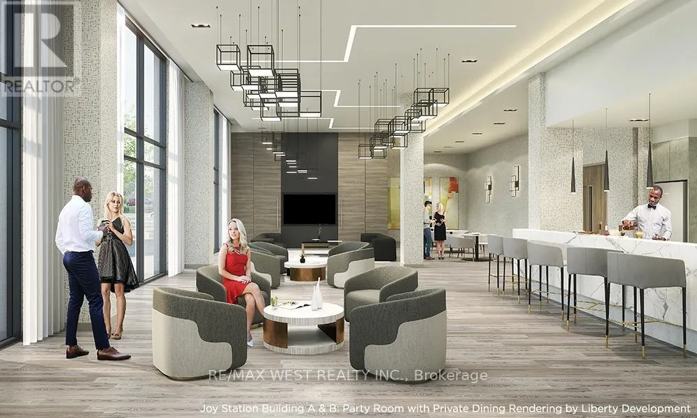 Markham Rd & Castlemore Ave Elegant two-bedroom corner suite at Joy Station Condos offering approximately 728 sq. ft. of interior living space, complemented by a spacious balcony with impressive North West city views. The modern open-concept kitchen is equipped with high-end appliances and seamlessly connects to the living area, creating a perfect setting for both everyday living and entertaining. The primary bedroom includes a private ensuite bathroom, generous closet space, and a window that provides plenty of natural light while maintaining privacy. Ideally situated in a prime Markham location close to schools, public transit, shopping, and everyday conveniences. Residents enjoy access to excellent building amenities including a gym, indoor swimming pool, party room, 24-hour concierge service, visitor parking, and one parking space included. (id:27476)