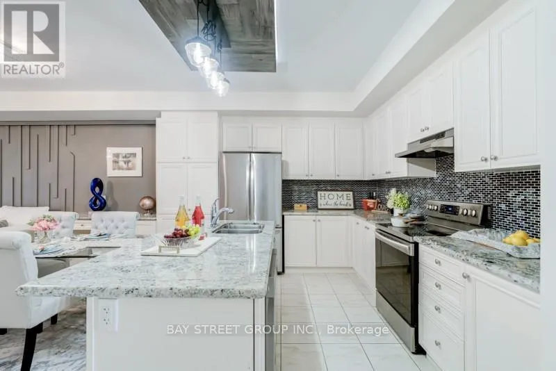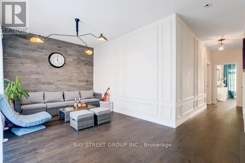 Hwy 407/9th Line Welcome to this luxury 3,492 sq.ft. ARISTA Baywood Model in prestigious Boxgrove Village, featuring a rare 890 sq.ft. ground-floor commercial flex space-ideal for retail, office, studio, medical, or professional use. The storefront faces Copper Creek Drive with large display windows and strong exposure. Enjoy exceptional parking with an attached 2-car garage plus a 4-car driveway (up to 6 total). The main level offers a bright open-concept great room with hardwood floors, elegant wall trims, and a statement staircase with wrought-iron pickets.The upgraded chef's kitchen features granite countertops, stainless steel appliances, mosaic backsplash, a large island, and a stylish breakfast area. This level also includes 2 full bedrooms, laundry room, and a walkout to a balcony features motorized retractable screens that keep out mosquitoes and snow, allowing you to enjoy fresh air year-round while maintaining complete privacy (you can see out, but others can't see in). The upper level includes a bright media loft with a designer wood-accent wall, two generous bedrooms. The primary suite offers a custom geometric feature wall, a walk-in closet, and a luxury 5 piece ensuite with double vanities, glass shower, and deep soaker tub. A standout highlight is the expansive third-floor rooftop terrace, providing private outdoor living ideal for entertaining, dining, gardening, children's play, or creating a custom rooftop lounge. A large outdoor storage shed is included. This property follows layout: Ground Floor - 890 sq.ft. commercial unit flex space, 2-car garage (plus 4-car driveway); Main Floor - Great room, kitchen, breakfast, bedroom, study/office, laundry, balcony; Upper Floor - Media loft, 2 large bedrooms, 2 full baths (incl. primary ensuite) and Oversized private terrace with storage shed. VTB may be considered for qualified buyers on a fast closing, terms to be negotiated. Furniture package available for purchase at buyer's option; pricing negotiable. (id:27476)