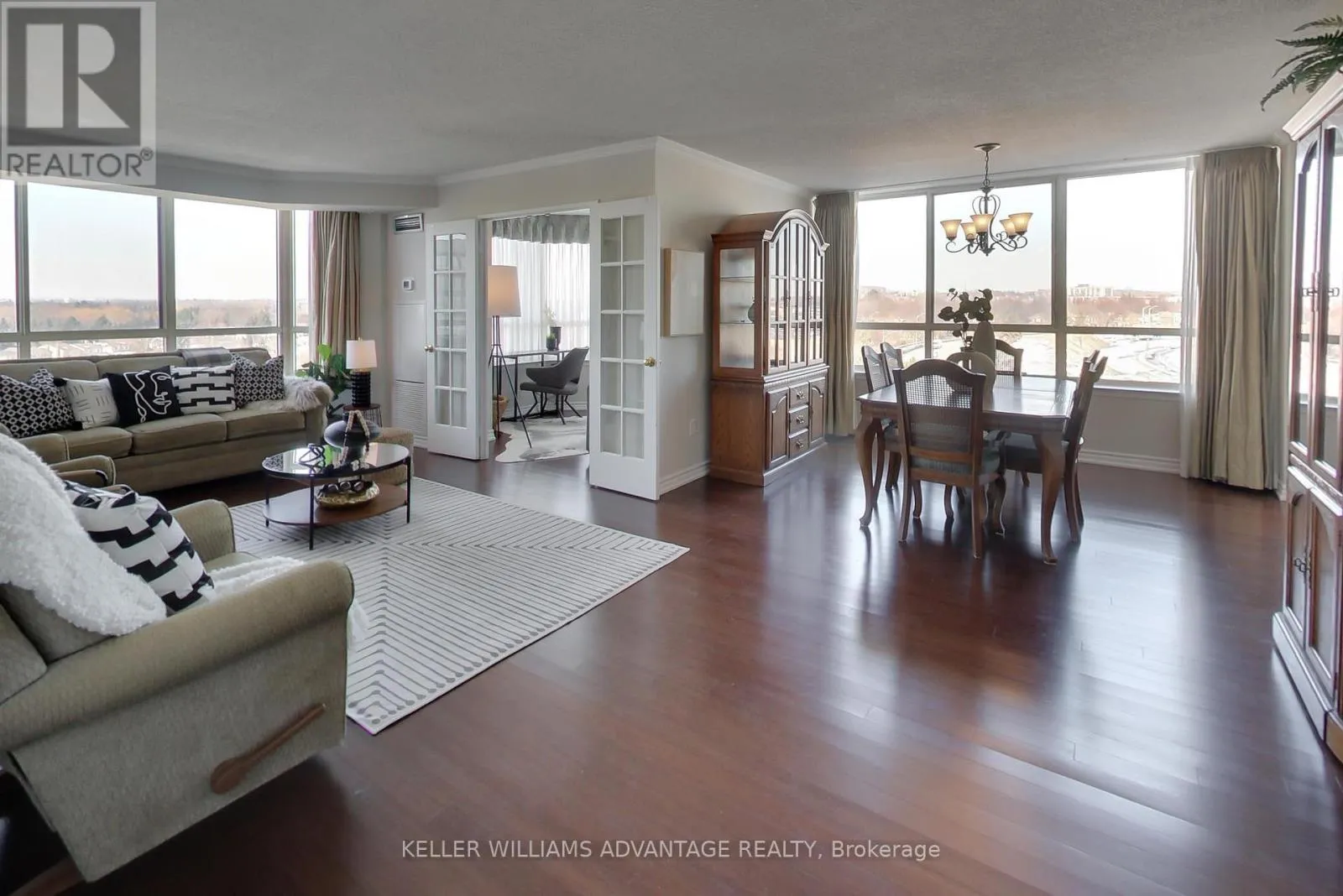 Cross Streets: McCowan Rd / HWY 7. ** Directions: McCowan Rd, left on HWY 7, right on Bullock Dr, left on Austin Dr. Welcome To Tridel's Walden Pond2! Beautiful corner 1530 sq ft suite with clear views. Bright, open, spacious concept. 2 large bedrooms with ample space and privacy. Den was used as a third bedroom. Large kitchen with breakfast area and sliding doors to balcony. Carpet free! Engineered hardwood, has near floor to ceiling windows which floods the suite with year-round natural light. All-inclusive maintenance fees, including Rogers basic cable and Wifi. Has 2 underground parking spots, side-by-side and close to the elevator. The exceptionally managed building has many amenities. 24hr gatehouse security, Full gym, indoor swimming pool, change rooms, billiards room, guest suites, library, tennis courts, and more. Walking distance to Markville Mall, restaurants, parks, trails, ponds, Markville Secondary School, Centennial GO Station, groceries, and more. (id:27476)