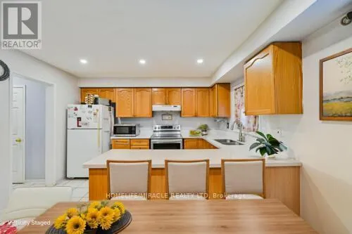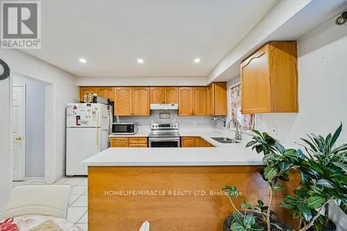 MARKHAM RD / STEELES RD Convenient Great Location!!!Elegant End-Unit Freehold Townhome in Prime Cedarwood Location! Bright and spacious 3+2 bedroom, 3.5-bath home offering the feel of a semi-detached property. This well-maintained 2-storey features a functional open-concept layout with hardwood floors, covered porch area, modern lighting, and pot lights throughout the main living areas. Convenient second-floor laundry and generously sized bedrooms. The finished basement adds excellent living space with a large rec room, two additional bedrooms, and a full bathroom-ideal for extended family or guests. Enjoy the convenience of a single-car garage and private driveway. Located in the highly desirable Cedarwood community, just minutes to shopping (Costco, Walmart, Home Depot, Rona), schools, parks, golf course, community center, and quick access to Hwy 401 & 407. Move-in ready and a fantastic opportunity in one of Markham's most sought-after neighborhoods! Improvements: Dishwasher (2025), Quartz Countertop (2025), New Furnace under warranty (2023), Garage Door (2022), Side Alley (2021), Back lawn (2021), Attic (2022), Drive way (2020), Roof (2020), Front Yard (2020), Washer (2019), Pot lights (2019), Porch (2018), AC (2015). (id:27476)