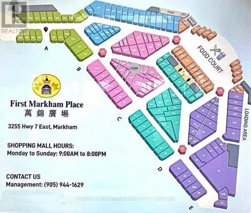 Cross Streets: Woodbine / Highway 7 E. ** Directions: First Markham Place (FMP Mall). One Of The Best Spots Locates In The First Markham Place(FMP Mall). Excellent Exposure And Prime Locations With High Traffic, Ample Parking, Great Opportunity!********* Tenant of #129A Only Needs To Pay Half The Cost for property tax , maintenance fee and Utilities fee (Hydro & Heat). For Reference (after half price) , Property Tax in 2025 was $345.60 /month , Maintenance Fee in 2026 is $597.58+Hst / month, and Utilities Fee in 2025 was $150/month (id:27476)