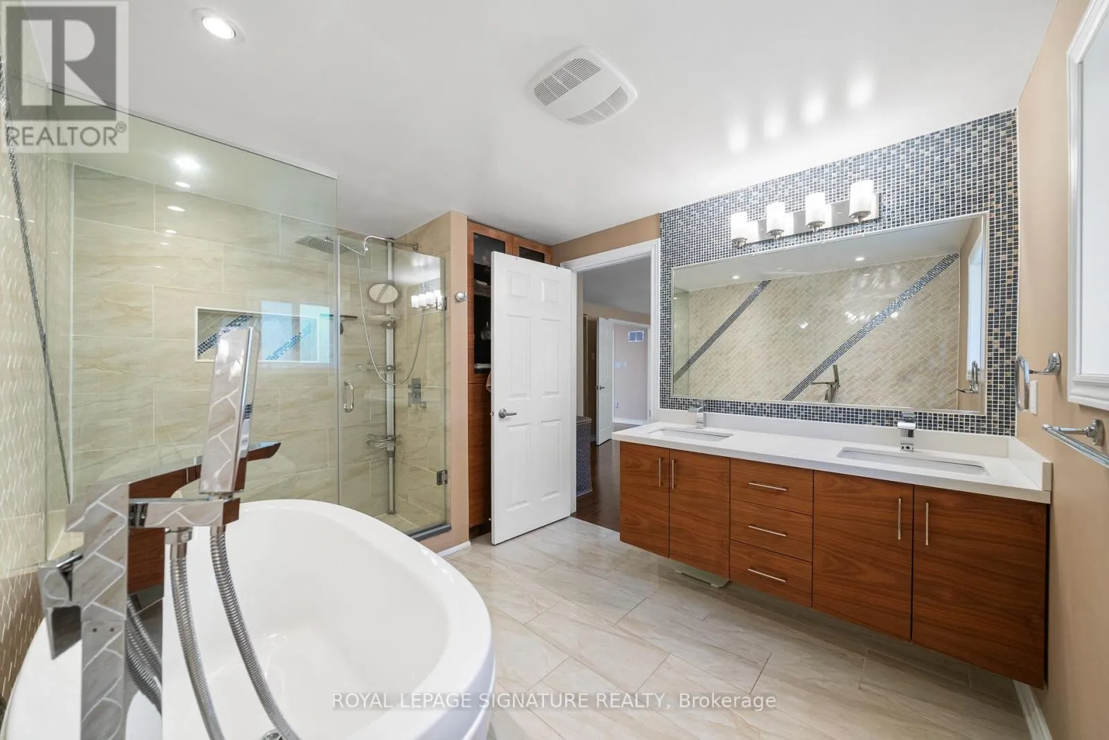 Cross Streets: Woodbine/Hwy7. ** Directions: Woodbine/Warden/Hwy7. Experience sophisticated living in this stunning detached home located in the prestigious Unionville-Buttonville community-renowned for its top-ranking schools, upscale amenities, and vibrant neighbourhood atmosphere. Situated on a rare premium pie-shaped lot (152.08 ft as per GeoWarehouse), this property offers exceptional privacy and expansive outdoor space, perfect for elegant entertaining and family enjoyment. Step inside to a beautifully updated interior featuring a designer contemporary kitchen with luxurious quartz countertops and pristine stainless-steel appliances. California shutters throughout, combined with skylights, pot lights, and smooth ceilings, fill the home with natural light while enhancing its refined, modern aesthetic. A fully owned solar panel system generates an impressive income stream through the Hydro network-offering both sustainability and added investment value. The walk-out lower level showcases a fully self-contained living suite with a full kitchen, two spacious bedrooms each with private 3-piece ensuites, and a separate laundry area-ideal for extended family, guests, or private accommodations. A rare offering that seamlessly blends luxury, functionality, and long-term value in one of the area's most desirable communities. (id:27476)