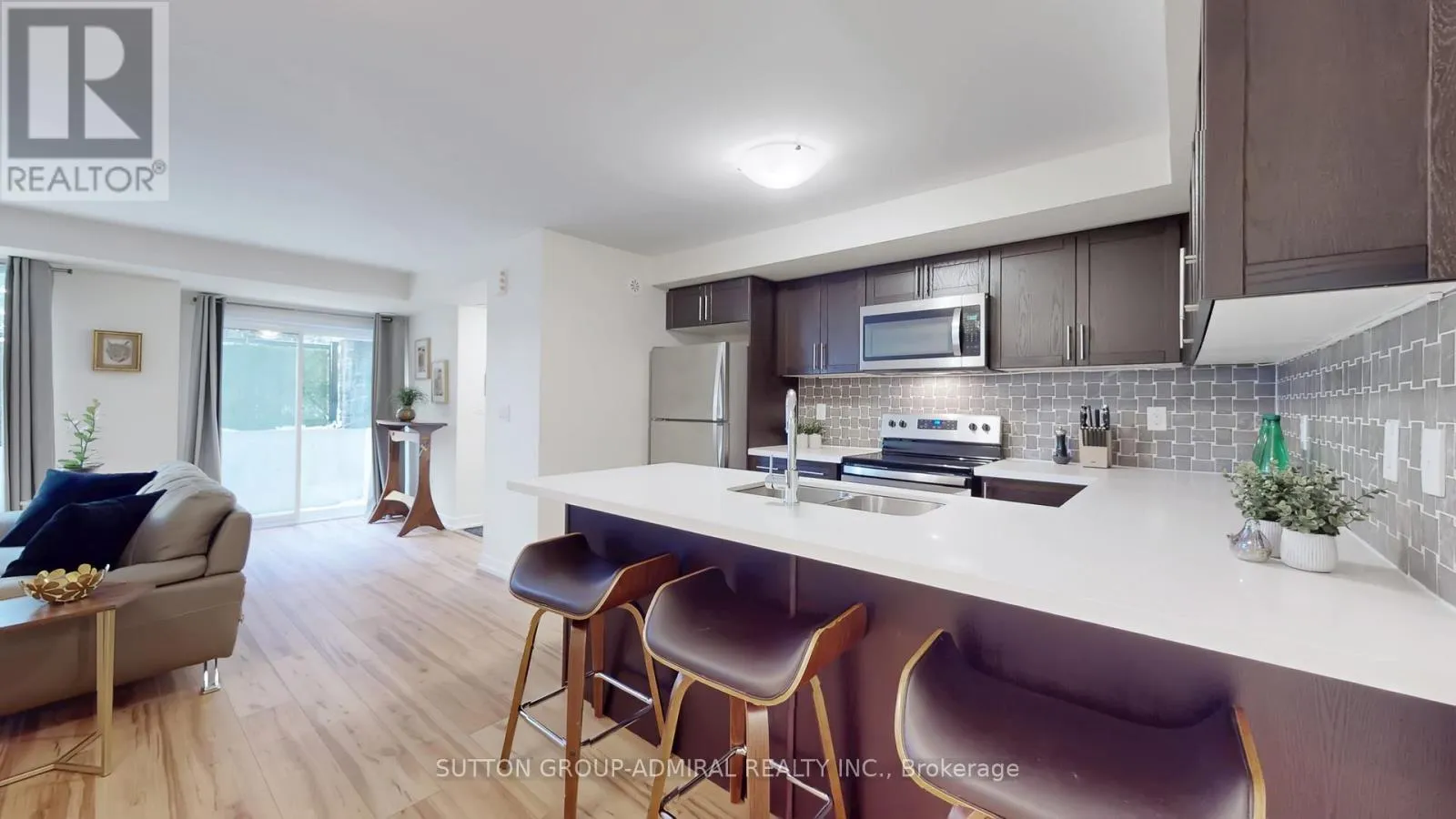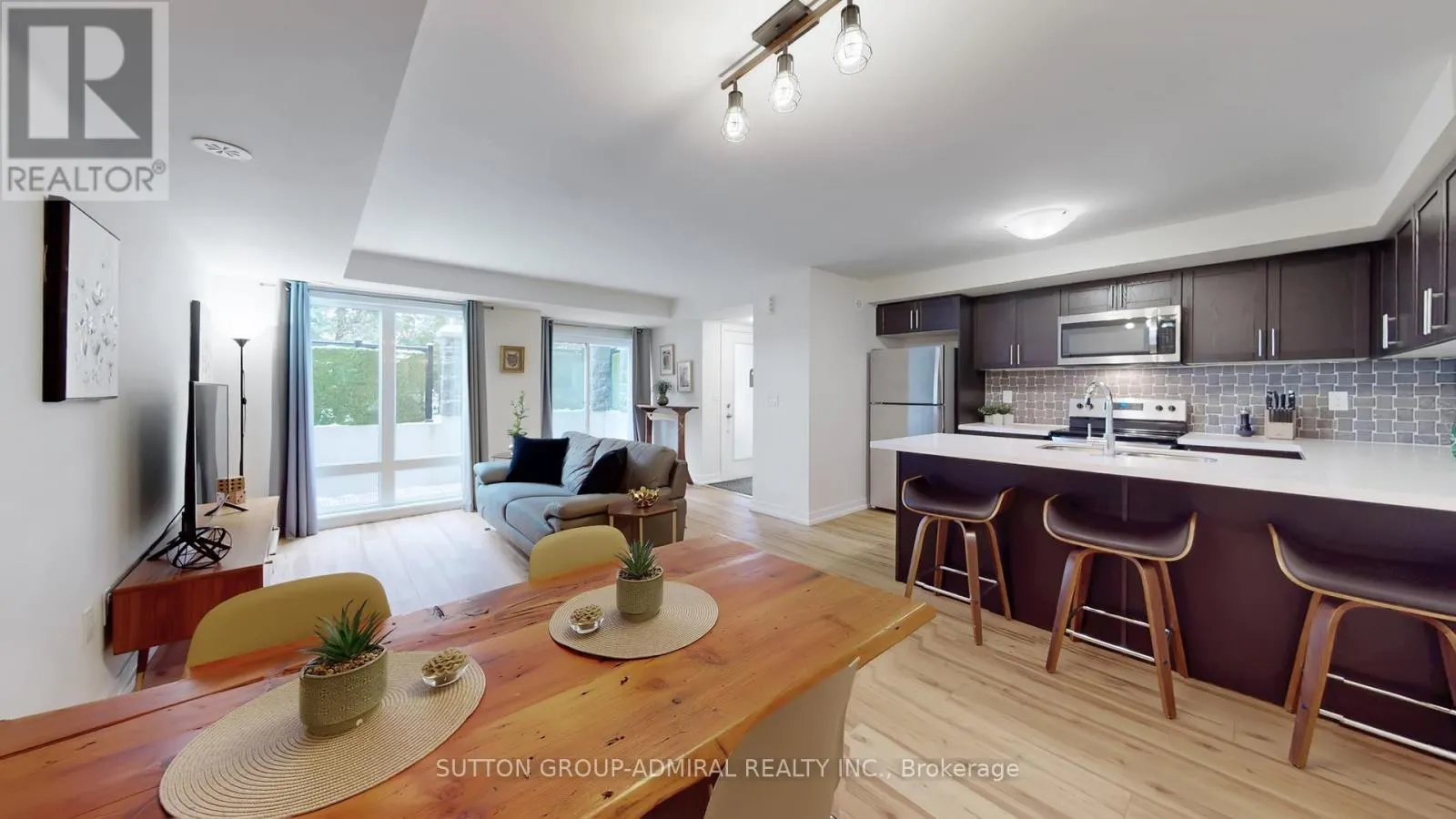 Cross Streets: Ninth Line/Hwy 7. ** Directions: Hwy 7/Stoney Stanton Rd./Westmeath Lane. Suite 2527 is the hot listing needed to snap our city's current cold spell. This beautifully upgraded end-unit condo townhome is located in Markham's highly sought-after Cornell community, where lifestyle, convenience, and privacy come together effortlessly.Thoughtfully designed, this 1,000 sq foot home lives far larger than expected. Freshly painted in chic, neutral tones and featuring 9-foot ceilings throughout, this sun-filled, renovated residence offers new luxury wide-plank vinyl flooring and an open, airy feel from the moment you step inside. The spacious combined living/dining area is ideal for both everyday living and entertaining, highlighted by flr-to-ceil wndws and a seamless wlk/ot to an exceptionally prvt terrace-perfect for summer soirees, morning coffees, or quiet time with a good book.This outdoor retreat delivers prvcy without compromise.The renovatd kitchen (full glow-up) blends style and function with stone countrtps, stainless steel appl's, a custom backsplash, ample cabinetry including a large pantry, and a convenient brkfst bar-equally suited for casual family meals, hosting guests, or storing the results of spur-of-the-moment Costco runs.The primary bdrm retreat offers generous proportions,a 4-piece ensuite, dbl clsts, and a versatile sitting area-perfect for a reading nook or home office. The sun-filled second bdrm is ideal for sleeping, streaming, or light suntanning (SPF optional, but encouraged). Above-grade wndws flood the rear of the home with natural light.Complete with 2 parking spaces and a locker, this home is ideally located just minutes from Markham Stouffville Hospital, Highways407/7, top-rated schools, Cornell Bus Terminal, prks, library, SmartCentre, Markville Mall, dining, groceries, and the natural beauty of Rouge National Urban Park. New beginnings start in end units. Offer today, live tomorrow. (id:27476)