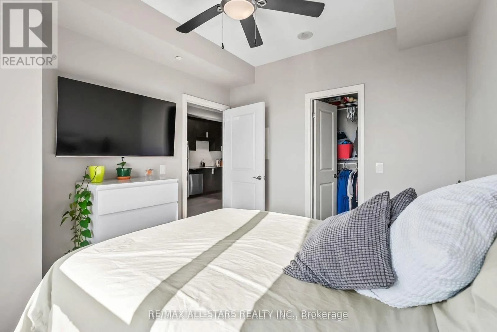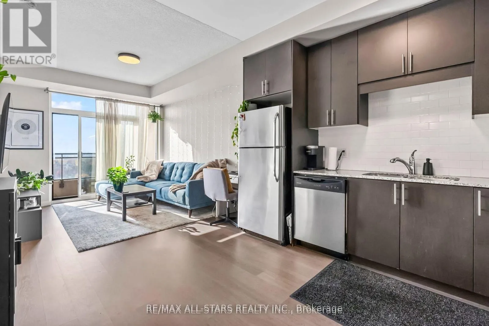 Cross Streets: Markham Road/Edward Jeffreys. ** Directions: Markham Road North of 16th Avenue. Amazing South Exposure floods this unit in Greenpark Upper Village with unobstructed views. Walk into the open concept unit with 9' ceilings and laminate floors. The Primary bedroom is bright with oversized window that has comes with closet organizers. The kitchen has 41" upper cabinets with granite counters, undermount sink and backsplash. The walkout to the balcony from the living room has beautiful unobstructed views of trees and a pond. Excellent location for Mount Joy GO Train Station, shopping, and easy highway access. 24 hr Concierge service, gym, recreation/meeting room and guest suites. (id:27476)