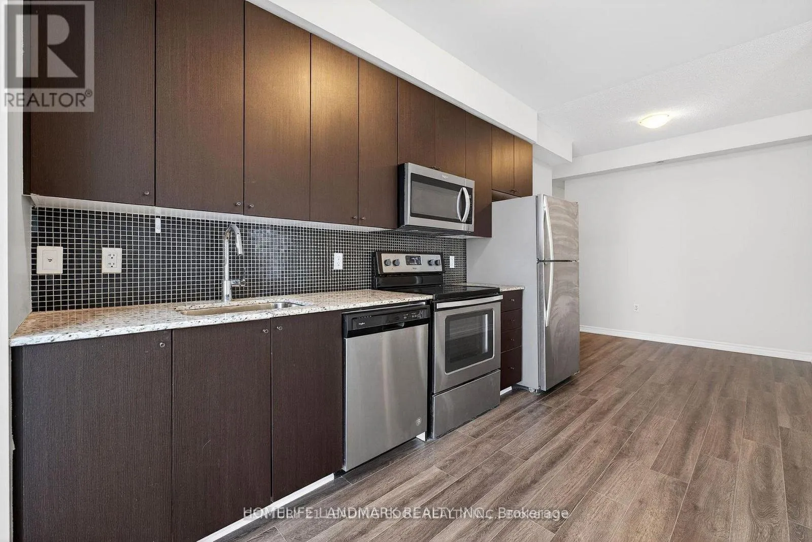 Markham Rd And Bur Oak Welcome to this beautifully updated 1+1 bedroom condo in the heart of Wismer, Markham! Ideally located just steps from Markham Rd & Bur Oak Ave, across Mount Joy Go, shopping, parks, and top-rated schools. Situated in a well-maintained building, this modern suite features a bright, open-concept layout with brand new flooring, fresh paint, and new baseboards throughout, offering a truly move-in-ready experience. The spacious living and dining area showcases laminate flooring and a walk-out to a east-facing open balcony with lovely sunrise views. The contemporary kitchen features granite countertops and stainless steel appliances. The primary bedroom enjoys west-facing views with direct balcony access, while the versatile den is perfect for a home office or guest space. Owned parking and locker included.Parking and Locker included (id:27476)