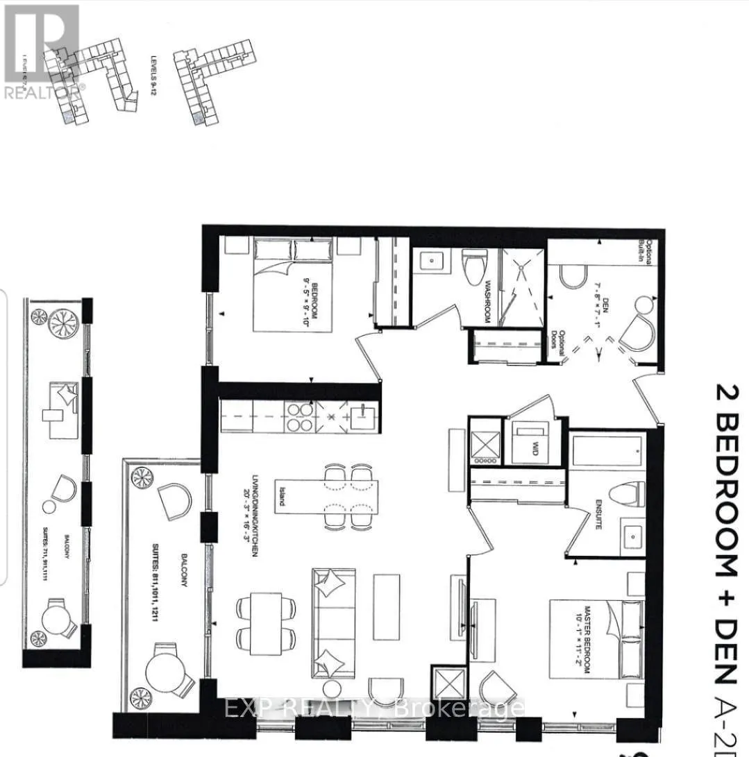 Cross Streets: Birchmount Rd And Hwy 7. ** Directions: E of Birchmount & S of Hwy 7. Discover upscale urban living in this beautiful residence at Gallery Square Condos, ideally positioned in the vibrant core of Downtown Markham. This sophisticated two-bedroom plus den suite features a versatile open-concept floor plan, highlighted by a gourmet kitchen with integrated appliances, quartz surfaces, and a generous breakfast bar. The interior is move-in ready, complete with installed window treatments and modern lighting, while the spacious den serves as a dedicated home office. Exceptional perks include a primary ensuite, a second bathroom with an upgraded shower, a private locker, and a rare parking space equipped for EV charging. Located within the prestigious Unionville school catchment and just steps from Whole Foods, fine dining, and the Cineplex, this home offers seamless commuting via nearby GO Transit and Highways 404 and 407. (id:27476)