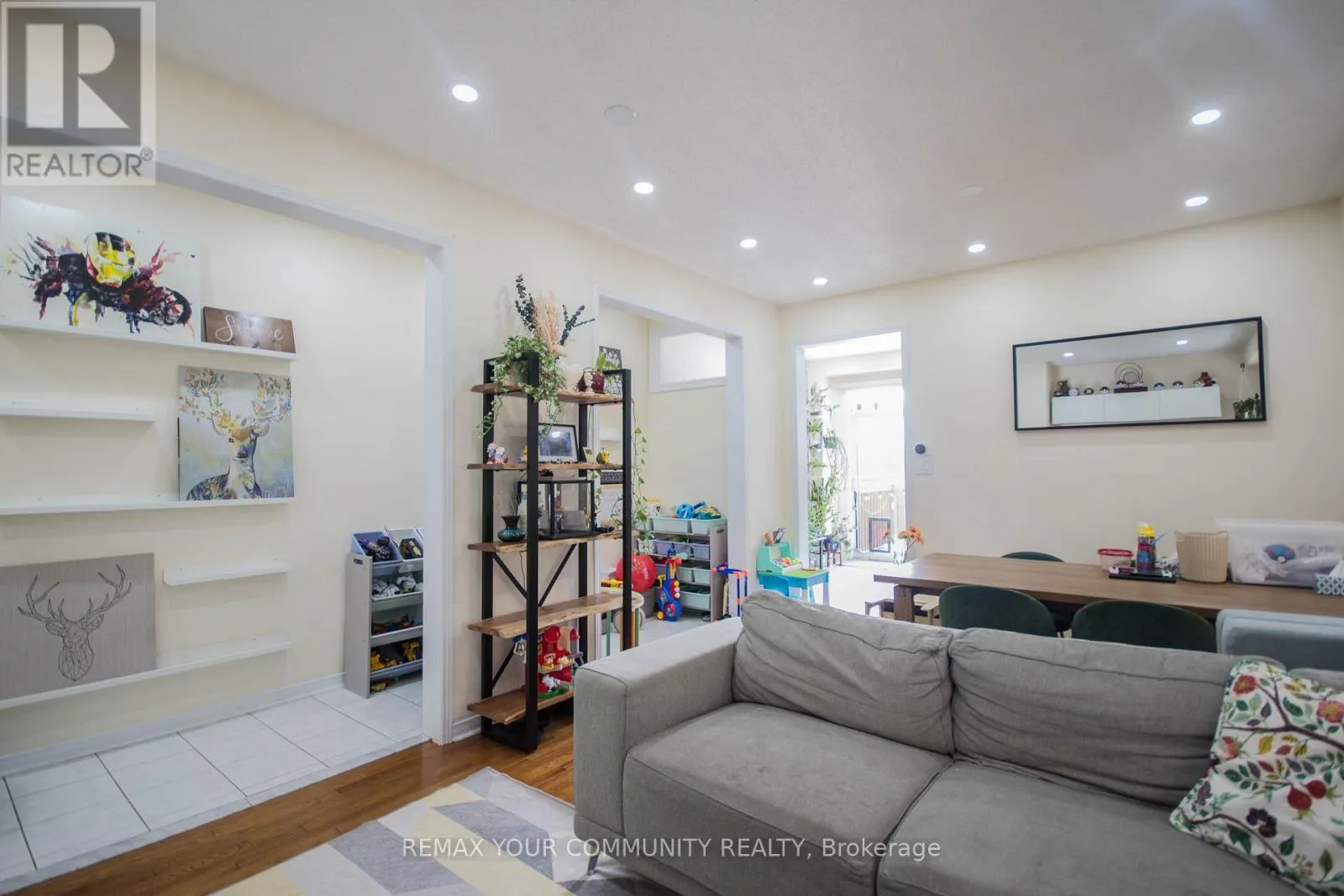 Elson St/Markham Rd A stunning semi-detached home featuring beautiful ravine views! This spacious residence offers 4 bedrooms, 3 washrooms, and 2 parking spaces, perfect for families seeking comfort and style. Thoughtfully upgraded throughout, the home showcases pot lights on the main floor, upper hallway, and primary bedroom, along with elegant hardwood flooring throughout. The modern eat-in kitchen features quartz countertops, a stylish backsplash, and stainless steel appliances, seamlessly flowing into a bright breakfast area with walk-out to a private deck ideal for enjoying the serene setting. The main floor boasts 9-foot ceiling and an open concept layout, perfect for entertaining! Washroom with quartz countertops, and the home includes a convenient washer & dryer. Ideally located near local transit, and close to top-rated schools, parks, shopping, and highway 407. (id:27476)