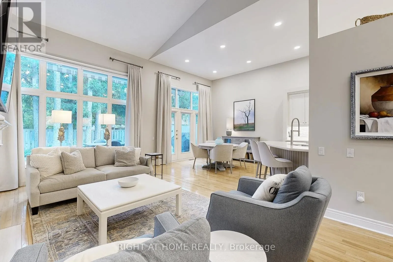 Cross Streets: Bayview and Steeles. ** Directions: located on north side of Steeles. The Space of a Home, the Ease of a Condo - Welcome to The Cotswolds. An exceptional bungaloft townhome that blends timeless design with everyday ease of living. Enjoy the space and feel of a house with the convenience of condo living.The main floor has everything you need for daily living: a bright kitchen, open living and dining area with soaring cathedral ceilings, a primary suite with walk-in closets and spa-like ensuite, a second bedroom/office, laundry, direct garage access, and a walkout to a new back deck. At the heart of the home, the cathedral-ceiling living room and gourmet kitchen create an airy, open space filled with natural light.Upstairs, the loft offers an additional bedroom and sitting area, while the finished lower level adds a fourth bedroom, bathroom and huge rec space. Parking is effortless with two indoor garage spots plus two driveway spaces. All this, just a short drive/walk to the Bayview Golf & Country Club, offering golf, tennis, and a vibrant social scene. (id:27476)