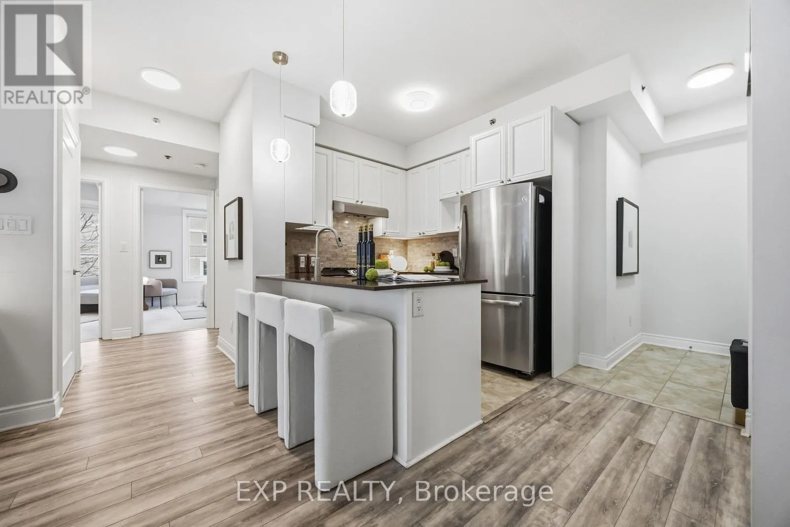 W. Woodbine Ave. & N. Major Mackenzie Rd. Welcome to Suite 211 at 28 Prince Regent Street, tucked into Markham's highly sought-after Cathedraltown where charm meets convenience and your parking situation finally gets the respect it deserves. This spacious suite offers over 1,100 sqft of bright, functional living, perfect for growing families or savvy down-sizers who refuse to downsize their lifestyle. Set in a quiet and peaceful low-rise building, you'll enjoy 9' ceilings and a sun-soaked, south-facing living and dining area that feels like it's been personally curated by the sunlight itself.Featuring 3 well-sized bedrooms with windows (yes, actual windows in every bedroom), the primary retreat delivers a bright south-west exposure, its own walkout balcony, walk-in closet, and a 3-piece ensuite that checks all the boxes. With two balconies offering panoramic views, you get double the fresh air and double the excuses to step outside with your morning coffee. The open concept kitchen comes equipped with a breakfast bar that's perfect for quick meals or long chats, while updated light fixtures and laminate flooring throughout the living areas keep things sleek and modern.Now let's talk about the real unicorn: a private side-by-side double car parking space with its own garage door underground. No more car Tetris. Add in a conveniently located locker on the same level for easy access, and everyday living just got a whole lot smoother.Enjoy 24-hour concierge service, plenty of visitor parking, a carwash, and a party room for when hosting duties call. Located just steps to Highway 404, Costco, and everything you need, this home blends comfort, practicality, and a touch of "why didn't I move here sooner?" energy. (id:27476)