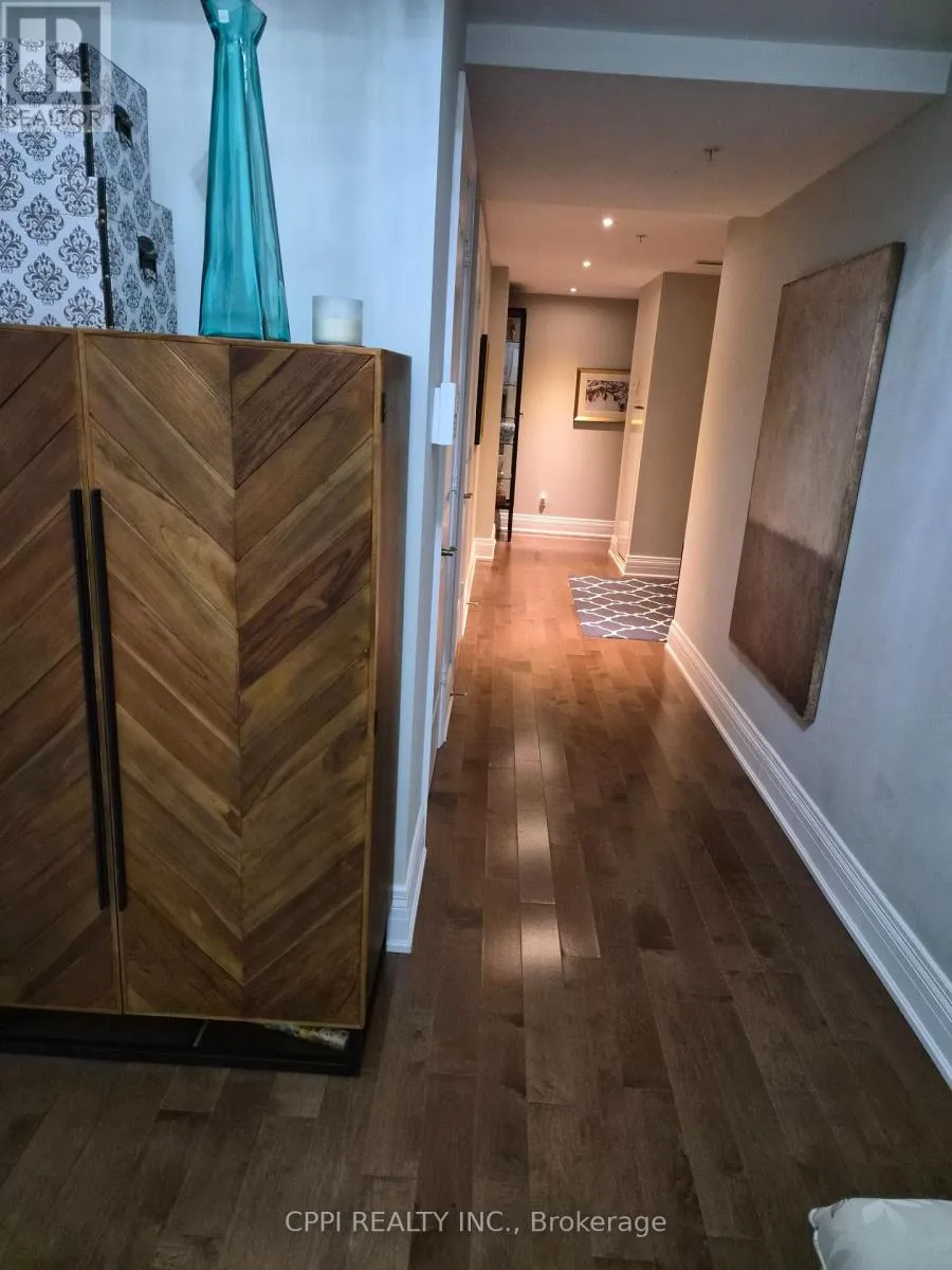 Cross Streets: Highway 7/Main Street North. ** Directions: https://maps.app.goo.gl/zysDCV8x5H5sFW7u6. Nestled in the heart of the Main Street Heritage District, this expansive 1,345 sq. ft. corner unit offers a rare combination of upscale privacy and urban accessibility. The interior exudes sophistication with 9-foot ceilings, elegant 7.5-inch baseboards, and premium engineered hardwood flooring throughout, all complemented by a unique three-way walk-out balcony that invites natural light from every angle. Perfectly positioned for a seamless lifestyle, the residence is just a 10-minute walk from the Markham GO station and a short 5-minute drive to Highway 407, placing local boutiques, restaurants, banks, and the community library right at your doorstep. (id:27476)