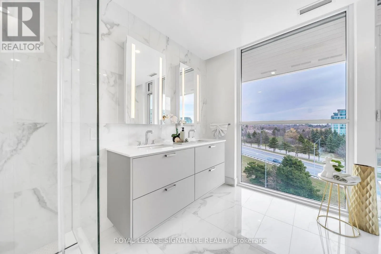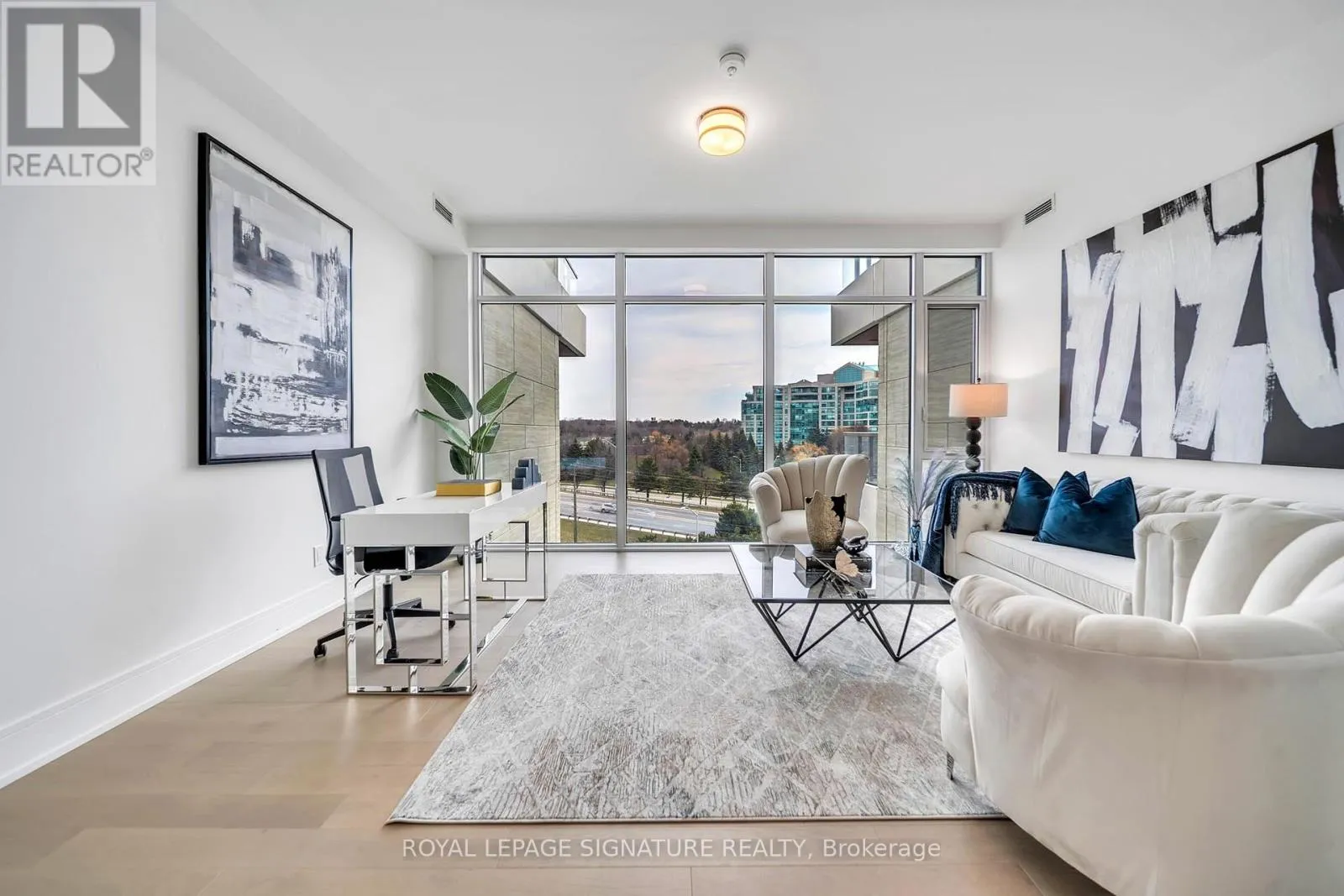 Bayview & Royal Orchard Brand New Luxury High-Floor Corner Residence At Tridel's Signature Royal Bayview, Offering Appx 2277 SF Of Elegant Living Space With Southwest Exposure And Breathtaking Unobstructed Views Overlooking The Prestigious Ladies' Golf Club of Toronto ( Thornhill ). This Exceptional 2+1 Br, 3 Bath Suite Features An Expansive Private Terrace, Perfect For Enjoying Outdoor Living Beautiful Golf Course Scenery.10-Ft Ceilings, Floor-To-Ceiling Windows, Luzury Floor, And An Abundance Of Natural Light Enhance The Sophisticated Interior. The Open-Concept Living, Dining, And Kitchen Areas Seamlessly Extend To The Terrace, Creating An Ideal Space For Both Everyday Living And Entertaining While Taking In The Stunning Golf Course Views.The Chef-Inspired Upgraded Kitchen Features Custom Cabinetry, Quartz Countertops, Premium Built-In Miele Appliances, And A Wine Fridge, Combining Style And Functionality. The Prim Br Retreat Enjoys S Exposure, Walk-Out Access To The Terrace, And Beautiful Golf Course Views, Along With A Luxurious 5-Pc Ensuite Bath And His & Hers Walk-In Closets. A Separate Den Enhanced $$$ In Quality Builder Upgrades Thru-out, Located In The Heart Of Thornhill, Offers An Upscale Lifestyle Surrounded By Fine Dining, Shopping, Parks, Trails, And Everyday Conveniences. Beautifully Landscaped Grounds Create A Private Oasis Between The Residence And The Golf Course, Within Walking Distance To The Private Ladies' Golf Club. Exceptional Luxury Amenities Include Concierge, Grand Two-Storey Lobby, Indoor Pool, Whirlpool, Saunas, Mahjong Rm, Fitness Centre, Yoga Rm, Fireplace & Library Lounge, Party Rm, Dining Rm, Outdoor Lounge With Fireplace, Outdoor Dining Area, Guest Parking And Indoor Golf Simulator.2 Parking Spaces & 1 Large Locker Included. (id:27476)