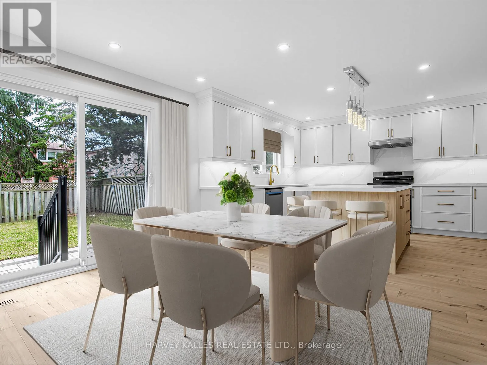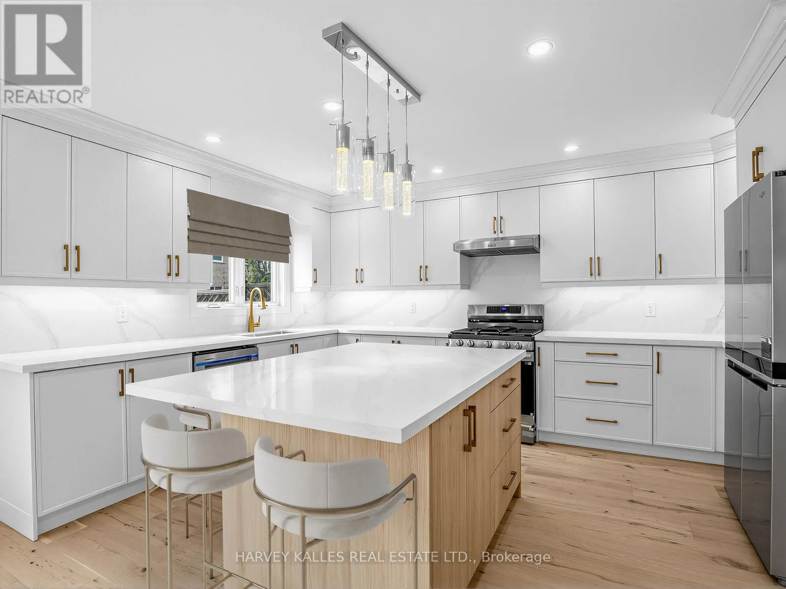 Bayview & Willowbrook Impeccably renovated from top to bottom with no detail overlooked, this exquisite 3 + 1 bedroom family home is ideally positioned in one of Markham's most desirable neighborhoods, renowned for its top-rated schools. Sunlit and spacious, the home features brand-new hardwood floors with tall baseboards throughout the upper two levels, creating an elegant and cohesive flow. The modern kitchen is a true centerpiece, offering granite countertops and backsplash, undermount lighting, pot drawers, pendant fixtures, and a breakfast bar, seamlessly connecting to a bright breakfast area with walk-out access to a fully fenced backyard patio-perfect for summer entertaining or quiet relaxation. Upstairs, three generously proportioned bedrooms include a primary retreat with a sleek 3-piece ensuite and walk-in closet. The versatile lower level, with its separate entrance, bedroom, office, kitchen, and recreation room, easily functions as an in-law suite or guest retreat. Additional highlights include fresh designer paint, abundant storage, and thoughtfully curated finishes throughout. Outside, enjoy a brand-new driveway and elegant interlocking around the home including an oversized rear yard patio. With close proximity to parks, top schools, Loblaws, Starbucks, a variety of restaurants, Highway 407, and public transit, this home offers the ideal combination of style, comfort, and convenience for the modern family. (id:27476)