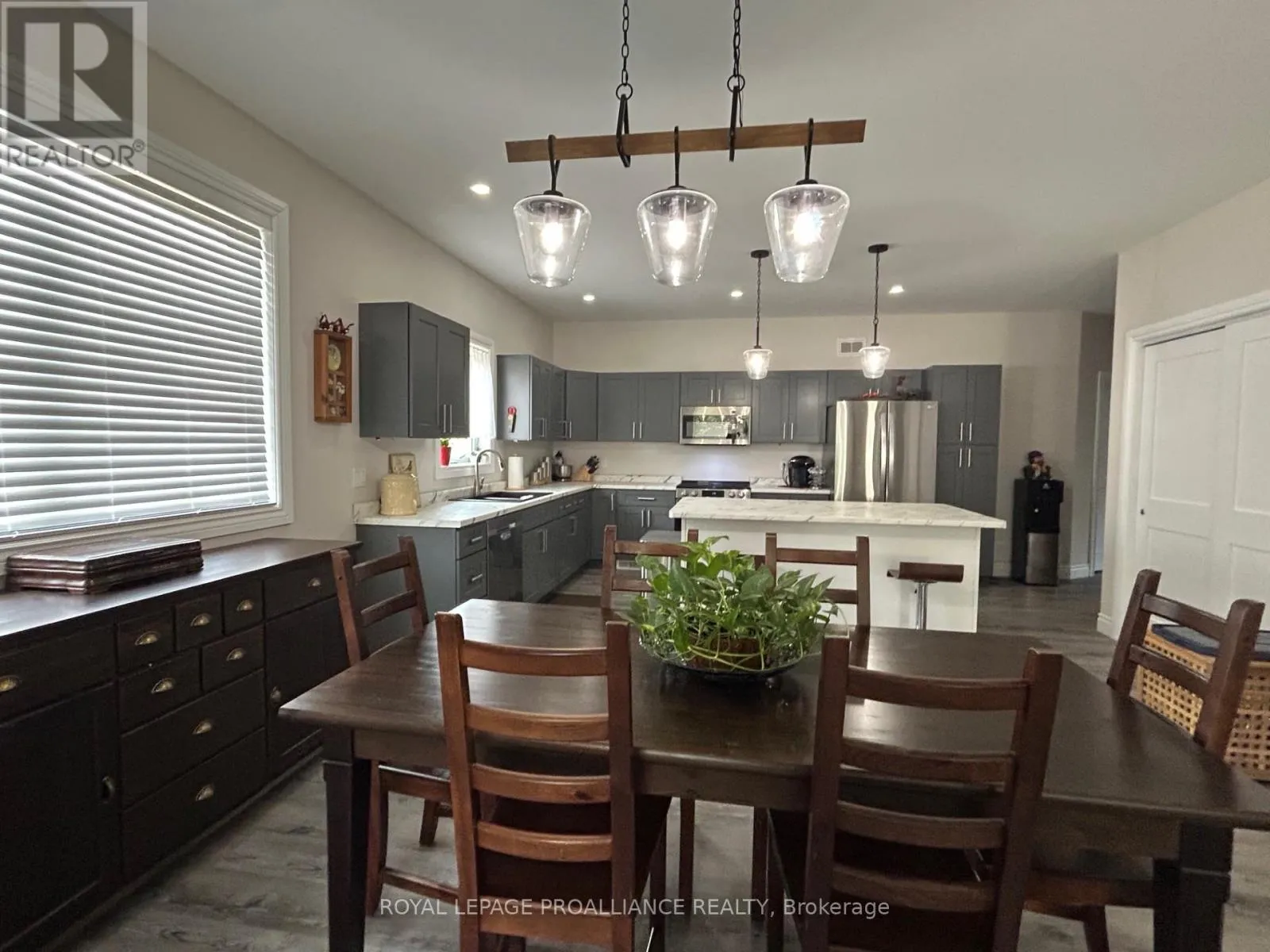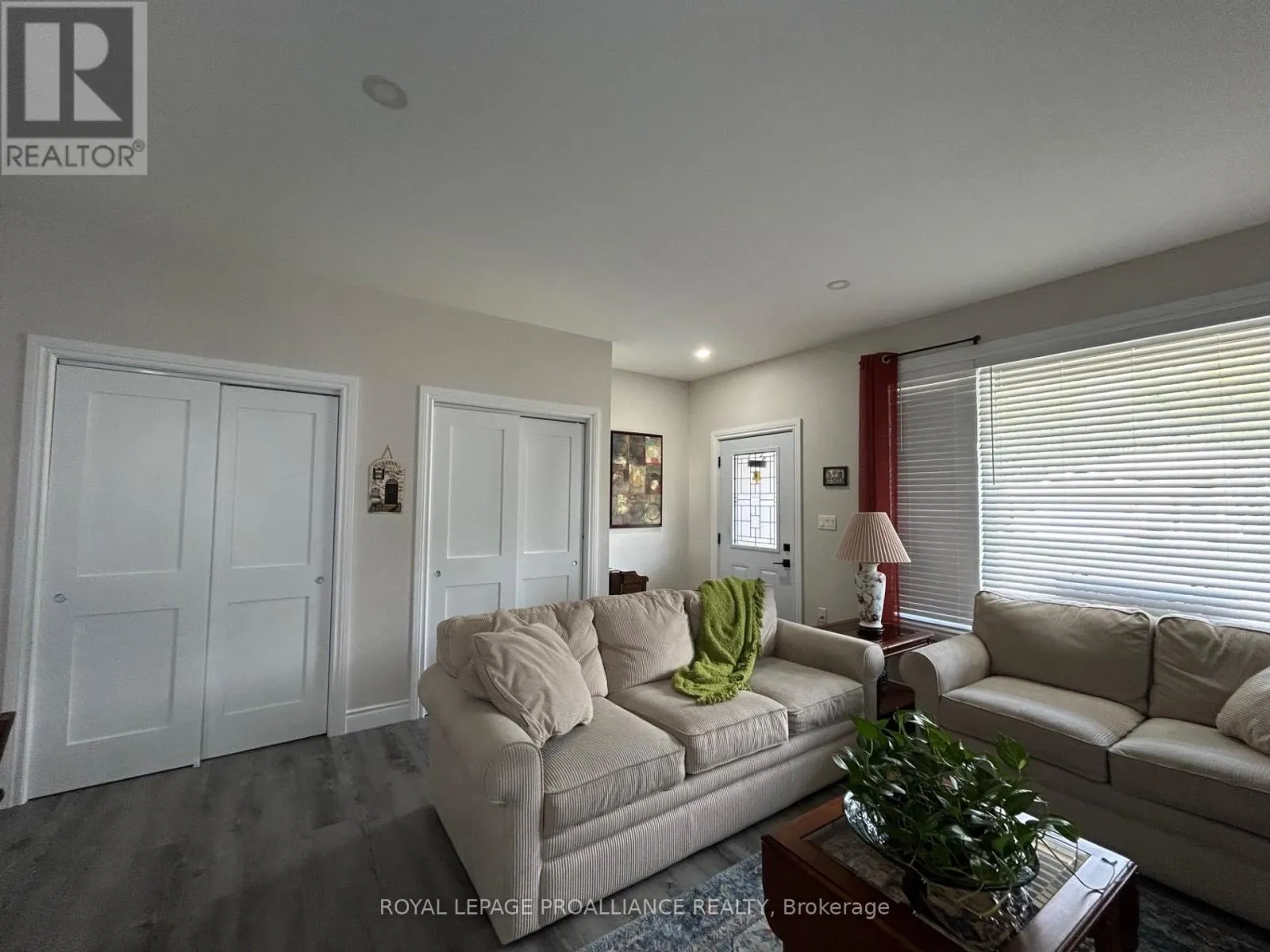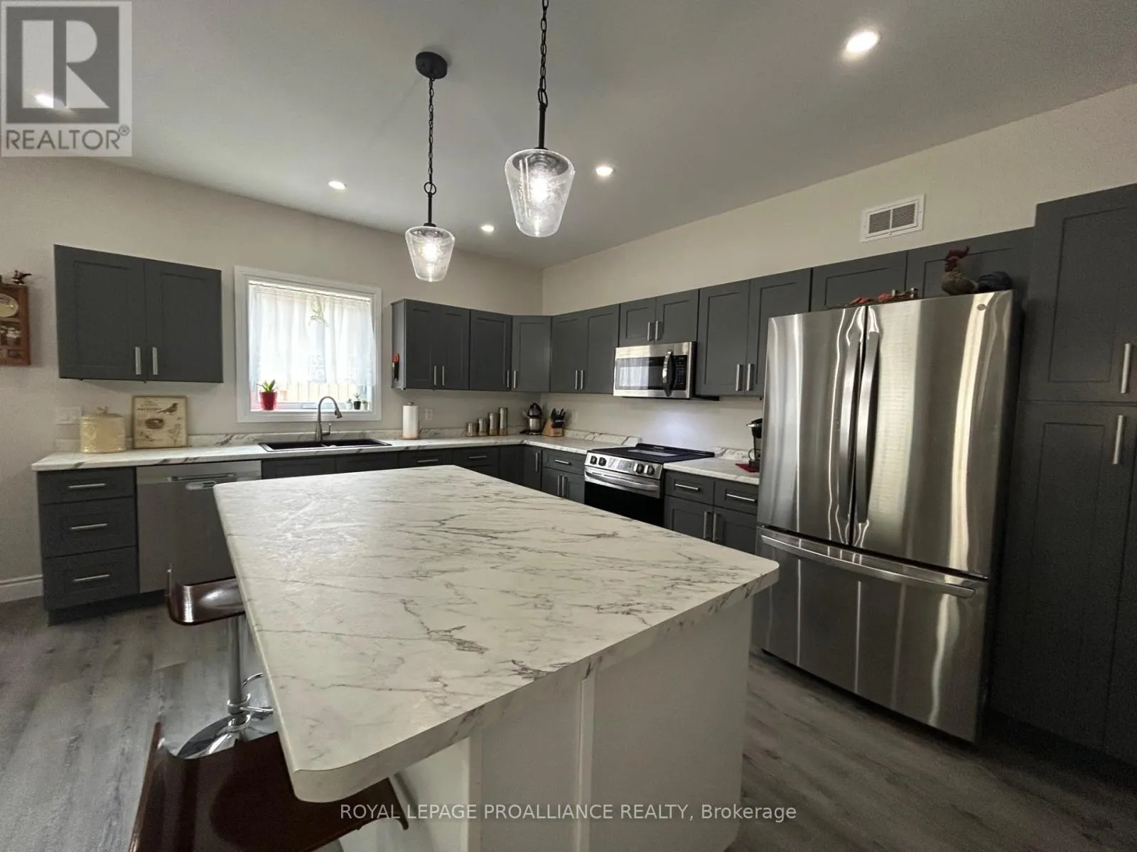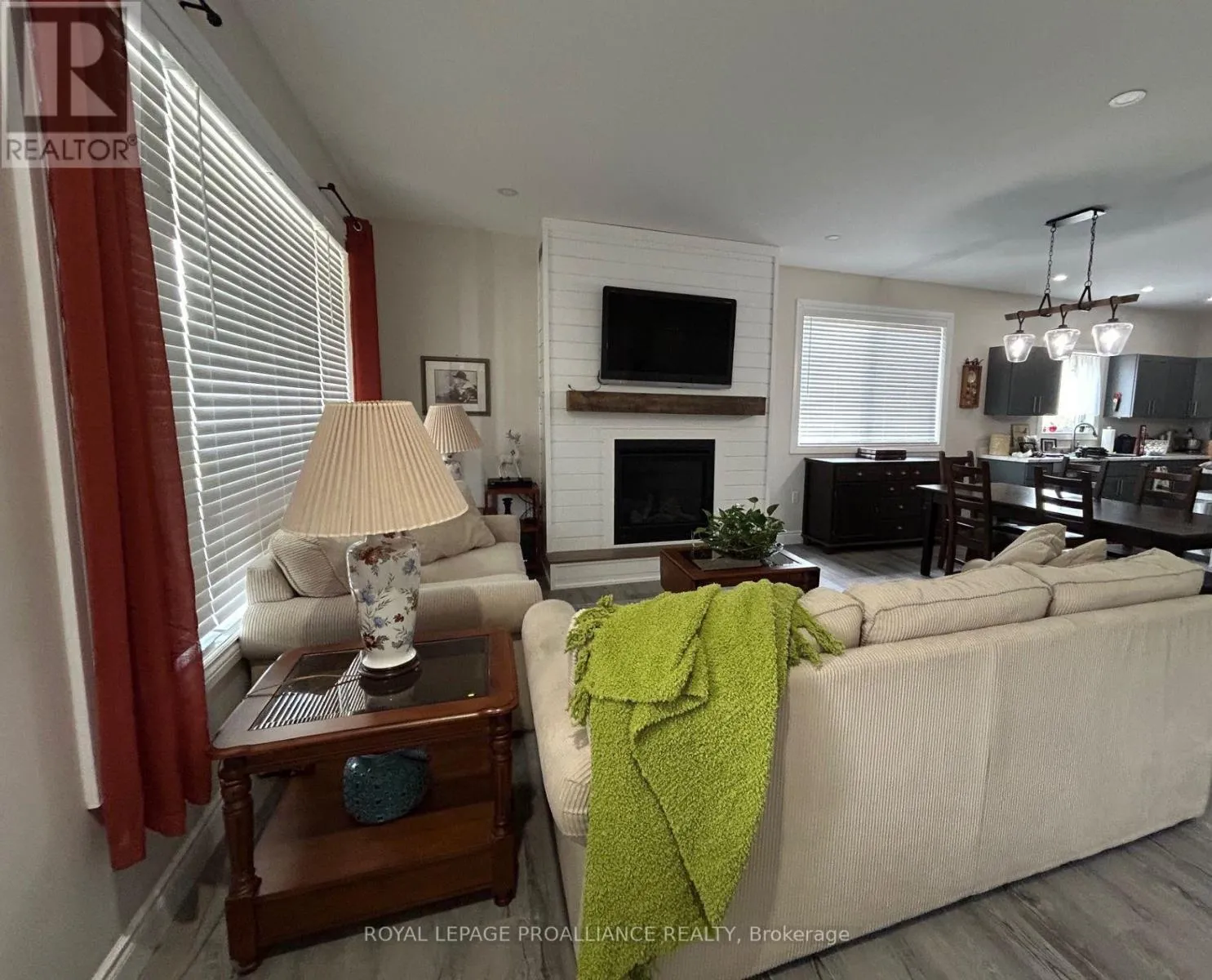 Cross Streets: Hwy 7. ** Directions: Hwy 7, turn south at BMR -see sign on lft -#47. Ideal for multi-generational living- Move in ready home in quiet village subdivision. If you're looking for the perfect home to accommodate your extended family -whether it's senior parents or young adults starting out-this beautifully maintained, three-year-old home is a must-see. Located in a quiet subdivision in the village, it features a tasteful, low-maintenance exterior accented with stone and a charming front porch facing east to enjoy the morning sun. A spacious double-car garage adds practicality and curb appeal. Built just three years ago, this home offers modern construction, low maintenance, and efficient, affordable gas heating, perfect for comfortable year-round living. Inside, you'll find a warm and welcoming open-concept layout featuring a cozy living room with a gas fireplace, a generous dining area, and a well-appointed kitchen with stainless steel appliances, an oversized island, and more than ample cabinetry, a separate pantry. The main floor also includes a tiled four-piece bathroom, a spacious primary bedroom with a private three-piece en-suite and laundry area, two additional guest bedrooms, and interior access to the garage and lower level. The fully finished lower level is ideal for multi-generational living, offering a separate living space complete with it's own kitchen, a comfortable living room with fireplace, two bedrooms, a storage area, and a private walk-out to the garage and side yard. See virtually altered photo to show potential of yard. (id:27476)