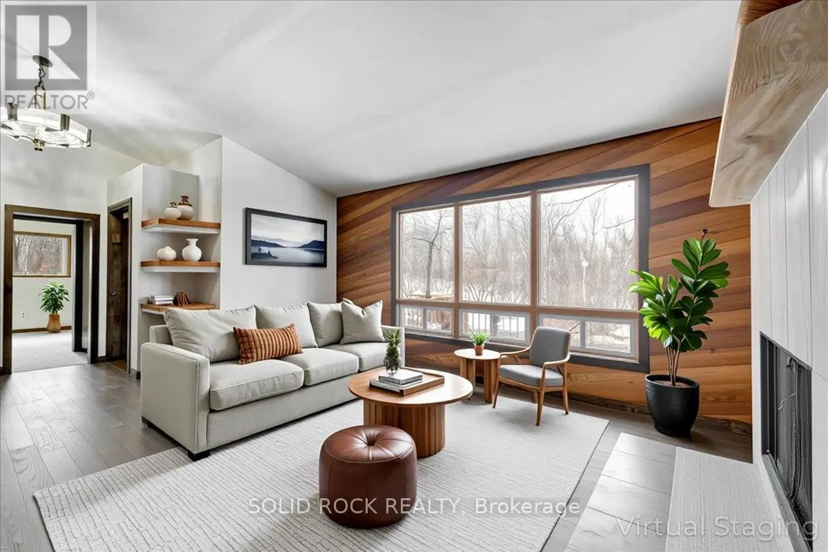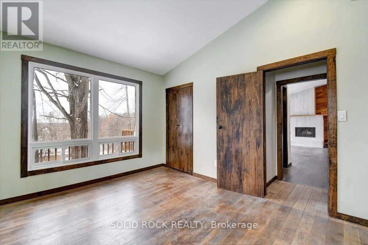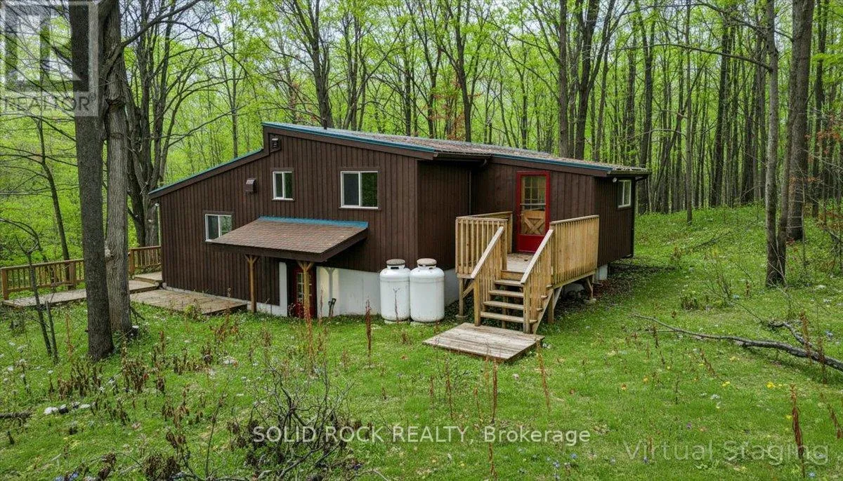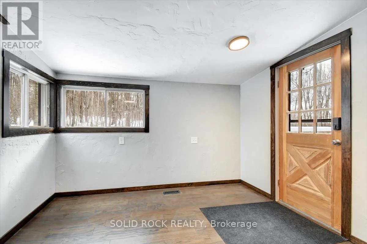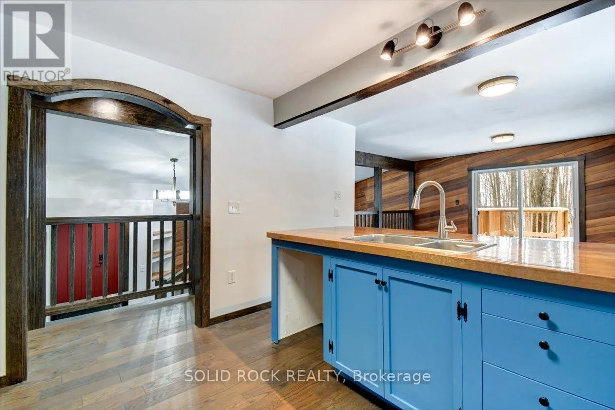 Cross Streets: Cordova Rd & Beaver Creek Road. ** Directions: North on Forsyth, left on Madoc St, Right on Main St turns into Cordova Rd, right onto Beaver Creek Rd. Discover this one-of-a-kind 3-level backsplit that blends craftsmanship, warmth, and character throughout. Featuring 2 bedrooms, 2 bathrooms, and a finished basement with in-law potential and its own private entrance, this home offers flexibility for extended family or guests. Step through the double-door entry into a welcoming foyer complete with a large closet and custom bench. The home showcases handcrafted woodwork, engineered floors, and oiled cedar wood walls, creating a cozy, timeless atmosphere. The main-level primary bedroom provides convenience, while the floor-to-ceiling fireplace and unique wood staircase add to the home's rustic charm. The mezzanine-level kitchen and dining area feature epoxied oak countertops, new custom cabinetry, and thoughtful design touches that flow seamlessly into the bathroom. Set on just under 2 acres, the property offers a peaceful natural setting with limestone and basalt outcroppings, walking paths, and mixed deciduous trees. Located in Marmora, you'll enjoy proximity to Crowe Lake, the boat launch, and a vibrant, growing downtown. A truly special property where craftsmanship meets nature - ideal for those seeking privacy, character, and small-town charm. (id:27476)
