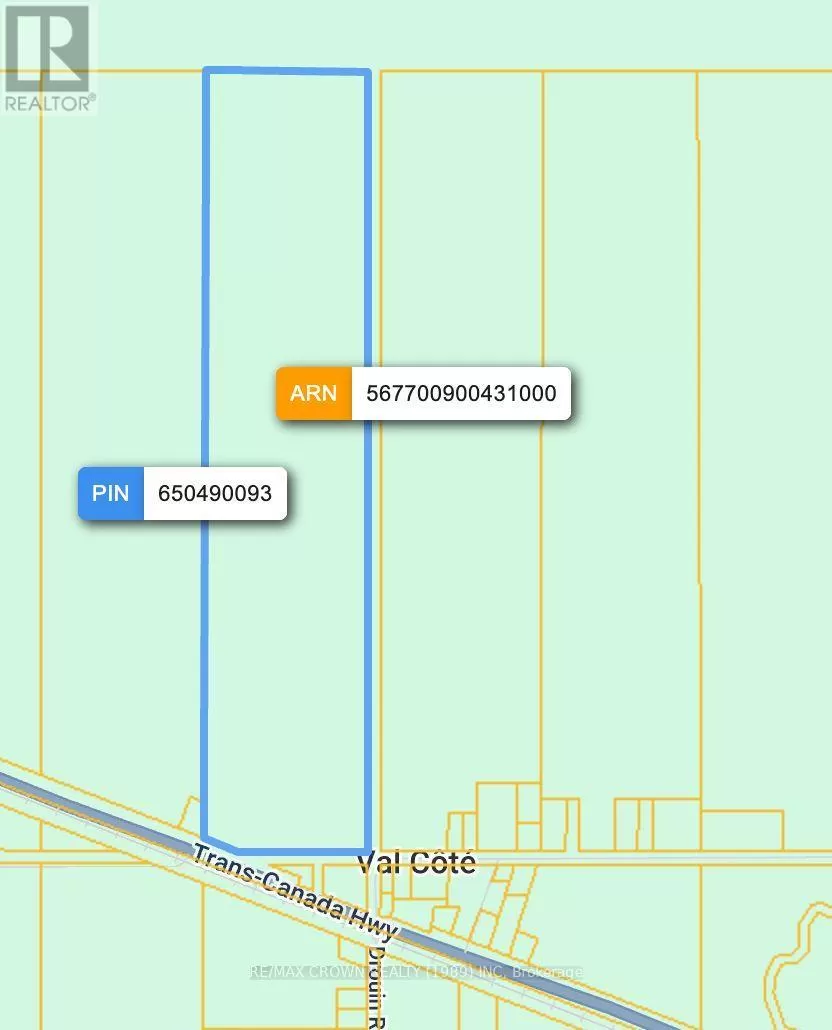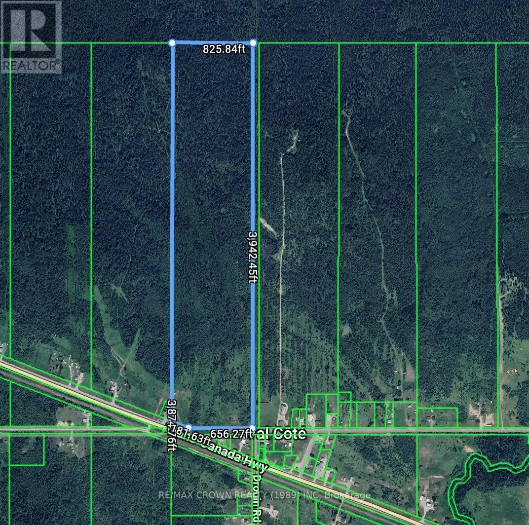 Cross Streets: HWY 11. ** Directions: 1 Access Point is off of HWY 11. The other is of Maxime Brisson Rd which is accessed from HWY 11. Discover 75 acres of opportunity in the quiet municipality of Val-Côté, featuring year-round road access from both Highway 11 and Max Brisson Road. This mostly treed property offers a perfect blend of natural forest and open space, ideal for recreational activities like hunting, ATVing, and snowmobiling, with the OFSC snowmobile trail running right along the property. Just a 15-minute drive to Hearst for all amenities, this land provides the perfect balance of peaceful rural living with convenient access to town. Whether you're looking to invest, build, or simply enjoy the beauty and space of Northern Ontario, this property offers the freedom to create your vision in a serene and scenic setting. (id:27476)
