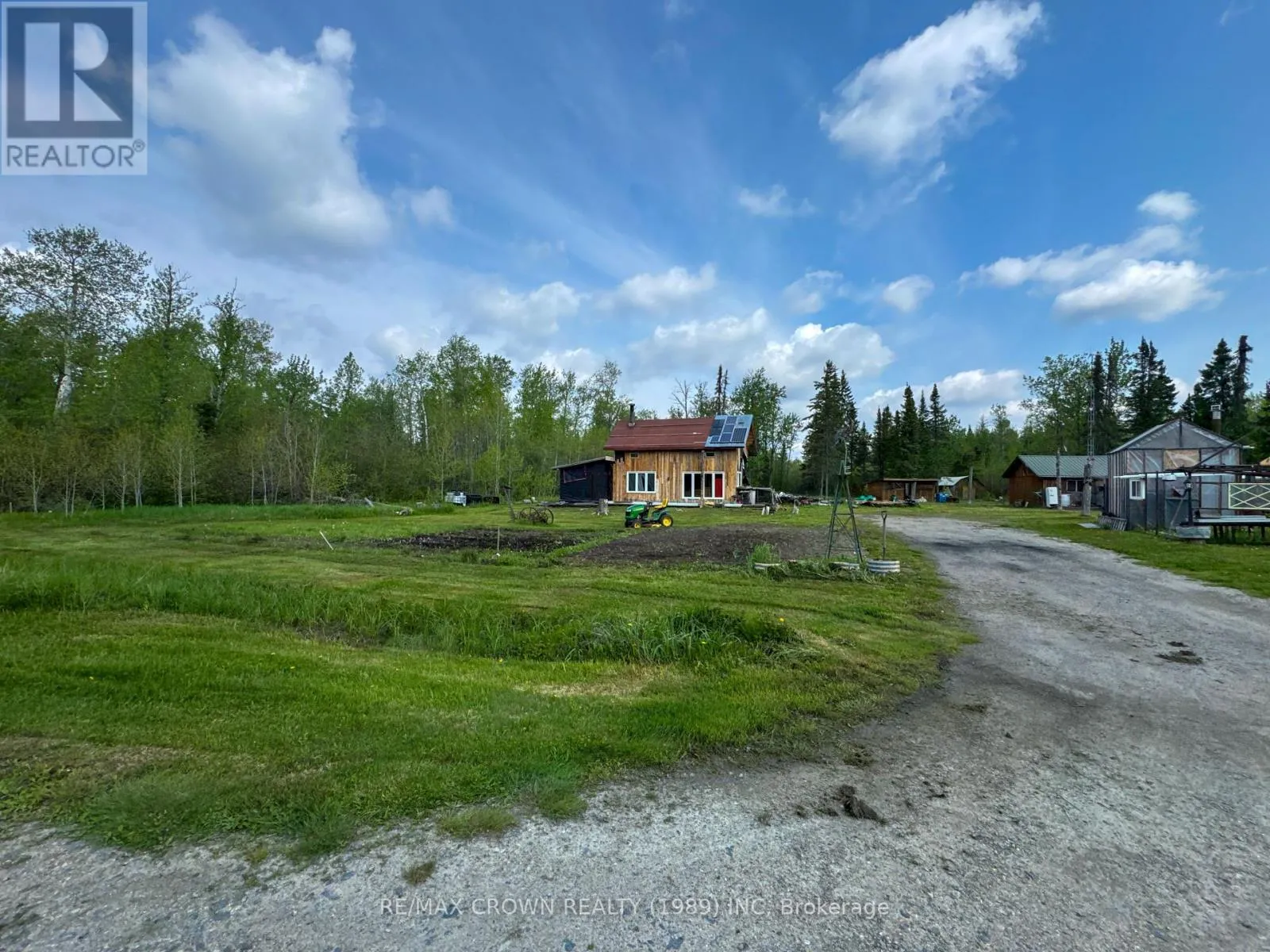 Cross Streets: Hwy 11. ** Directions: From Hwy 11 turn on Reesor Rd then take the first right. Outdoor enthusiasts, hunters, and off-grid lovers this is the property you've been waiting for. Located in WMU 24 and surrounded by Crown land, this 10-acre parcel offers prime moose and black bear hunting, direct access to the OFSC snowmobile trail, and trail access to remote fishing spots known for excellent walleye and northern pike fishing. The land includes multiple greenhouses, tilled garden areas, abundant foraging opportunities, and is being sold with a large assortment of tools, building materials, and equipment offering added convenience and saving you the hassle of extra buying or moving. Two separate camps provide flexible living space: a 20x24 open-concept camp built in 2020 with a loft and two sleeping areas (sleeps 24), and a well-maintained 18x32 older camp with three bedrooms (sleeps 36). Power is provided by solar and backup generators, and there's a drilled well on-site (not certified), with included equipment to connect to both camps. Access is easy year-round via a municipal road, though the long private driveway will require winter maintenance. Whether you're looking for a seasonal base or an off-grid retreat, this property offers unbeatable privacy, abundant natural resources, and immediate availability. No seller financing. Dont miss your chance to own this incredible piece of Northern Ontario wilderness. (id:27476)