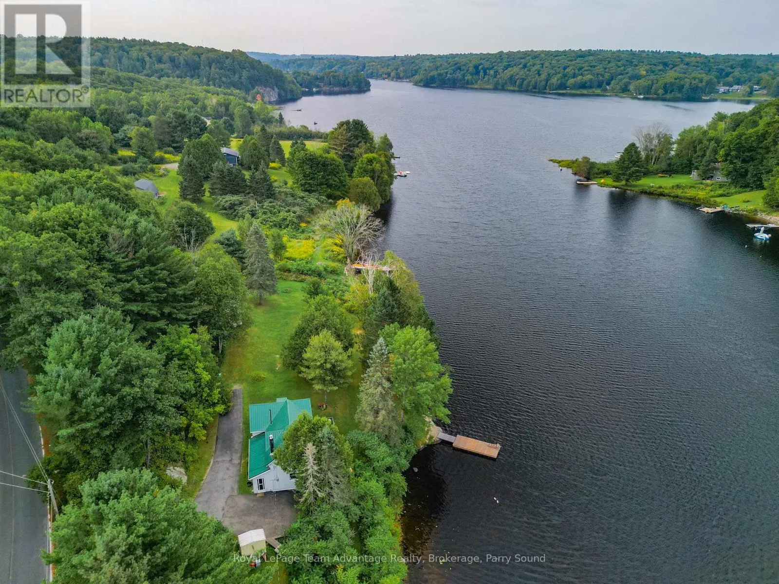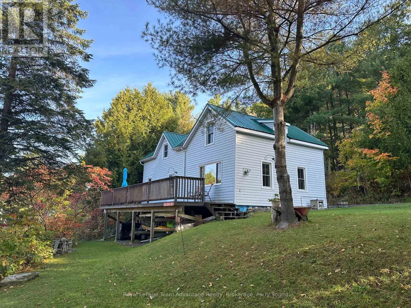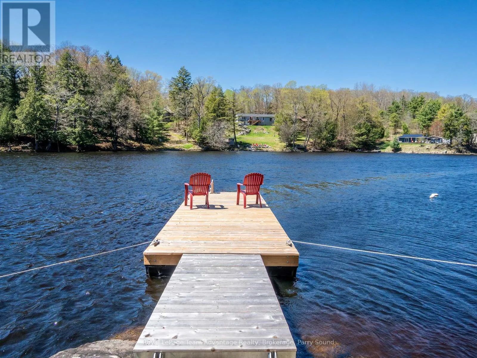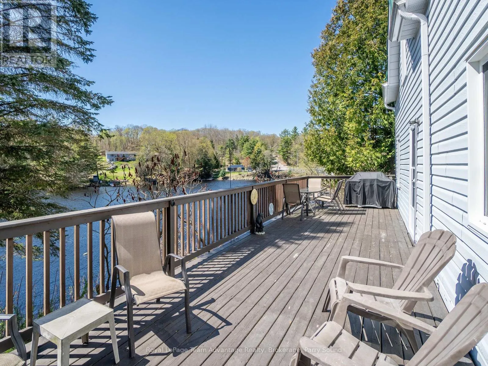 Highway 400 N to exit 231 for Highway 124, follow Highway 124 for 1.7 km then turn onto Burnside Bridge Road to #27 SOP Mill Lake Hideaway 420 ft of Sunset Shoreline. Welcome to this charming year-round home on beautiful Mill Lake, just minutes from Parry Sound. Perfectly balancing historic character with modern comfort, this property offers 420 feet of waterfront on a private 1.06-acre lot. A paved driveway leads to an inviting foyer and an open-concept kitchen and dining area that opens onto a spacious deck ideal for taking in the sweeping lake views. The bright living room, warmed by a propane fireplace, is surrounded by windows that fill the space with natural light. Upstairs, you'll find three comfortable bedrooms and a four-piece bathroom. The level lot enjoys western exposure, a sandy beach area, and a dock. Everything you need for easy, relaxed lakeside living. Additional features include a 32-foot Layton trailer with two queen beds, a kitchen, and a three-piece bathroom, perfect for visiting guest sand a 10' x 20' utility shed for extra storage. Mill Lake, part of a scenic three-lake chain, offers endless opportunities for kayaking, canoeing, and boating. With Parry Sounds shops, dining, theatre, and the soon-to-be-completed West Parry Sound Recreation Centre just minutes away, this property offers both tranquility and convenience. Take a walk around, you'll quickly see why this is a place you'll want to call home. (id:27476)