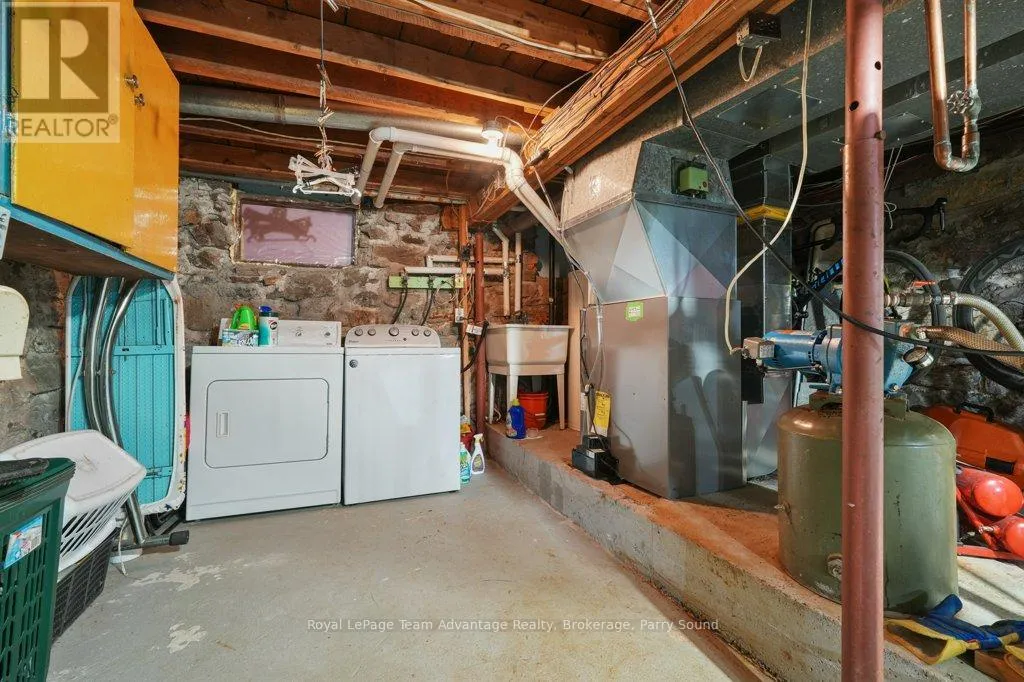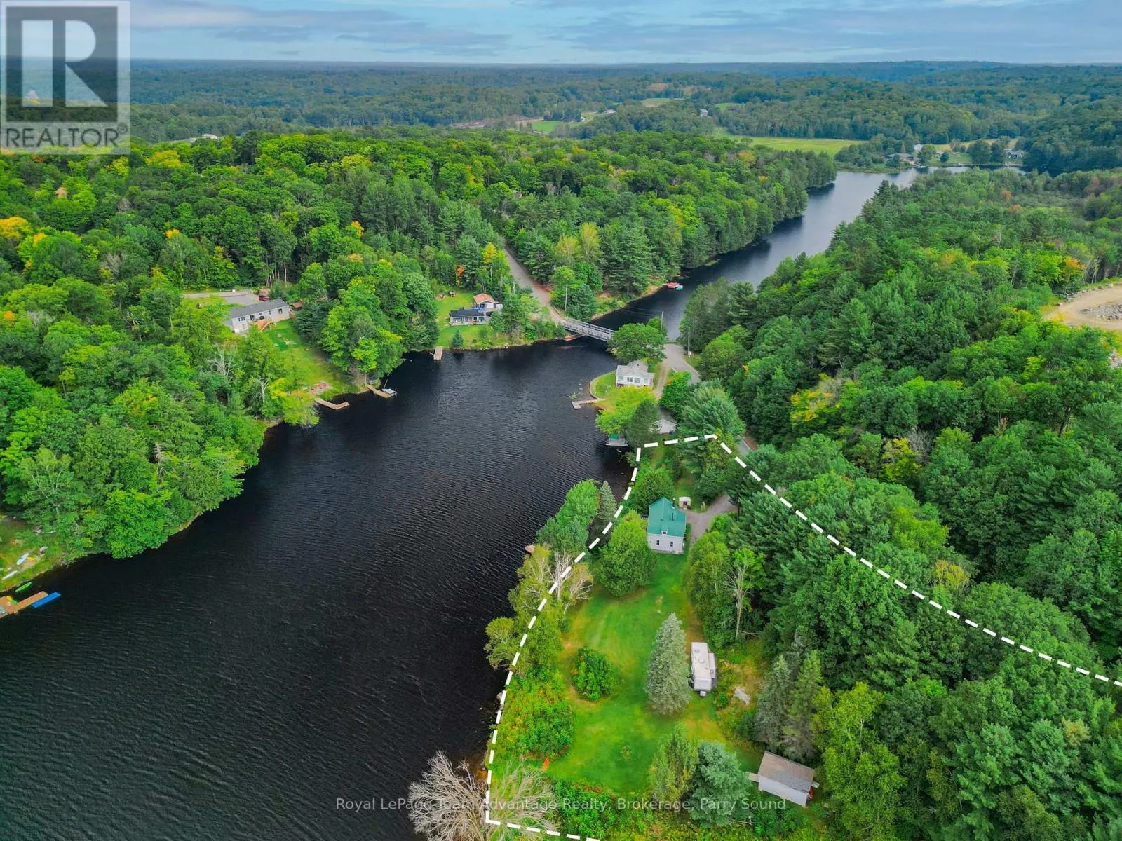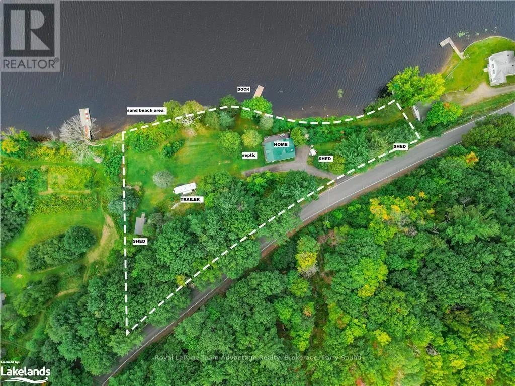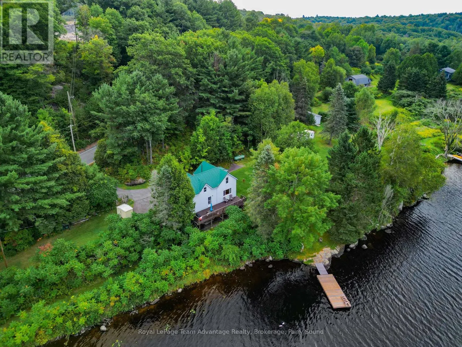 Highway 400 N to exit 231 for Highway 124, follow Highway 124 for 1.7 km then turn onto Burnside Bridge Road to #27 SOP Mill Lake Hideaway 420 ft of Sunset Shoreline. Welcome to this charming year-round home on beautiful Mill Lake, just minutes from Parry Sound. Perfectly balancing historic character with modern comfort, this property offers 420 feet of waterfront on a private 1.06-acre lot. A paved driveway leads to an inviting foyer and an open-concept kitchen and dining area that opens onto a spacious deck ideal for taking in the sweeping lake views. The bright living room, warmed by a propane fireplace, is surrounded by windows that fill the space with natural light. Upstairs, you'll find three comfortable bedrooms and a four-piece bathroom. The level lot enjoys western exposure, a sandy beach area, and a dock. Everything you need for easy, relaxed lakeside living. Additional features include a 32-foot Layton trailer with two queen beds, a kitchen, and a three-piece bathroom, perfect for visiting guest sand a 10' x 20' utility shed for extra storage. Mill Lake, part of a scenic three-lake chain, offers endless opportunities for kayaking, canoeing, and boating. With Parry Sounds shops, dining, theatre, and the soon-to-be-completed West Parry Sound Recreation Centre just minutes away, this property offers both tranquility and convenience. Take a walk around, you'll quickly see why this is a place you'll want to call home. (id:27476)