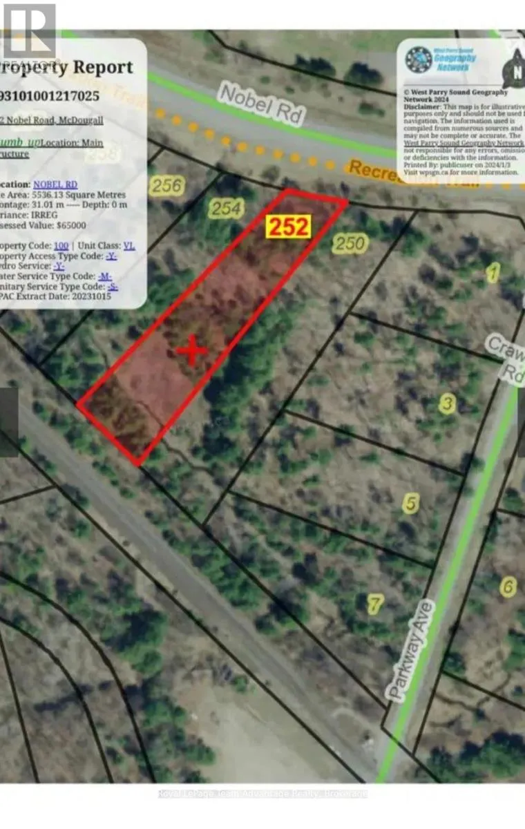 Cross Streets: NOBEL AND PARKWAY. ** Directions: NOBEL ROAD TO #252 SOP. PERFECT ESTATE LOT IN NEIGHBOURHOOD OF BEAUTIFUL HOMES. DRIVEWAY AND SEPTIC ALREADY INSTALLED. LOT IS CLEARED & LARGE AREA HAS ALREADY BEEN EXCAVATED AND READY FOR FOUNDATION. SELLER HAS HOUSE PLANS IF BUYER IS INTERESTED. HYDRO, INTERNET & MUNICIPAL WATER IS AT LOT LINE FOR A FEE. LOCATED CLOSE TO BEACHES AND LAUNCHING RAMP. ONLY MINUTES FROM PARRY SOUND. SELLER CAN ASSIST IN FINANCING. (id:27476)