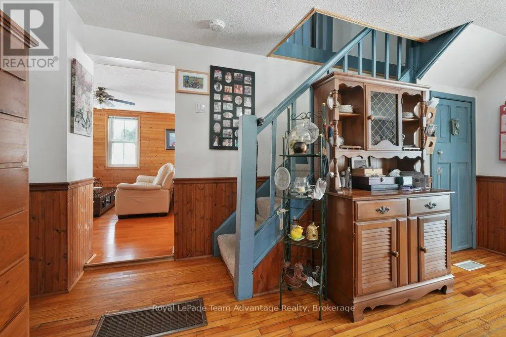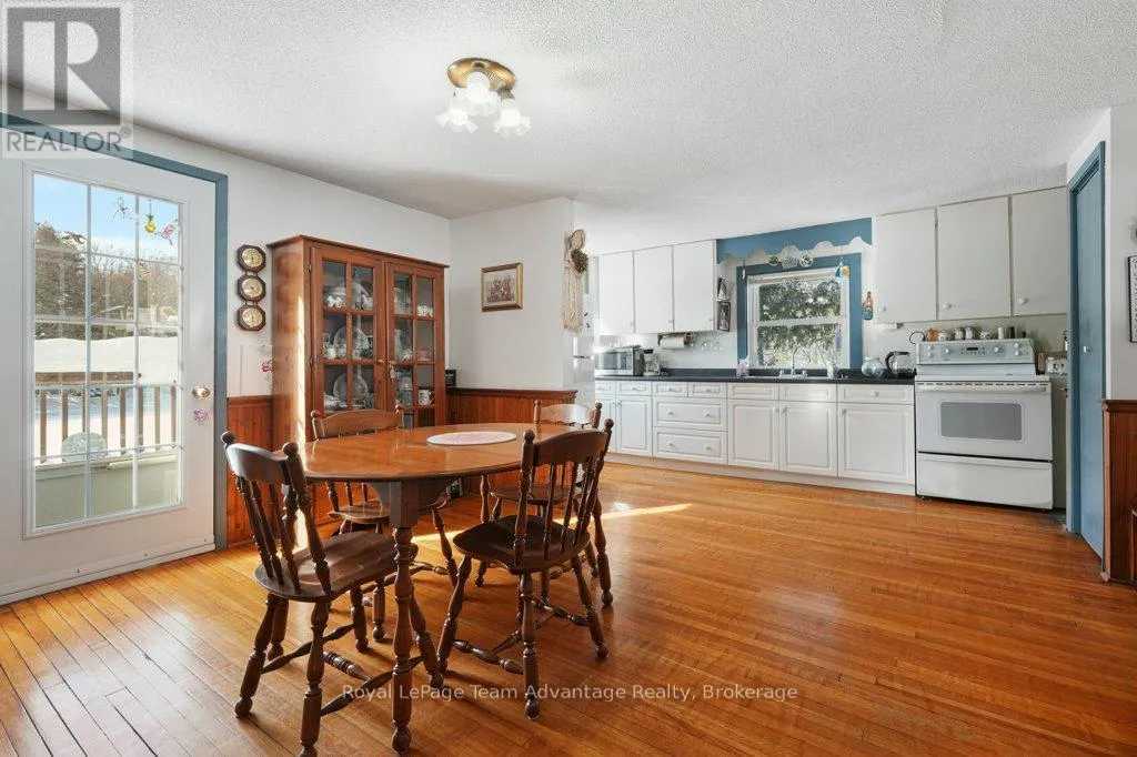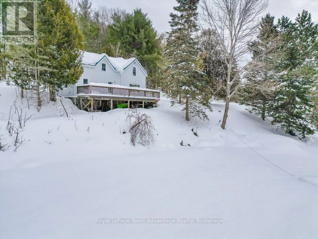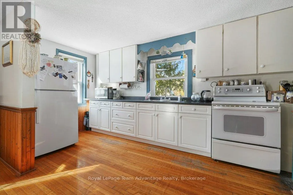 Cross Streets: Highway 124. ** Directions: Highway 400 N, exit 231 for Highway 124. Follow for 1.7km, right onto Burnside Bridge Road to #27 SOP. Mill Lake Hideaway - 420 Feet of Sunset Shoreline. Welcome to this charming year-round waterfront home on beautiful Mill Lake just minutes from Parry Sound. Set on a private 1.06-acre lot with an impressive 420 feet of western-facing shoreline this property blends historic character with modern comfort. A paved driveway leads to an inviting foyer and open-concept kitchen and dining area flowing onto a spacious deck with sweeping lake views. The bright living room, warmed by a propane fireplace, is surrounded by windows that flood the space with natural light. Upstairs offers three comfortable bedrooms and a four-piece bathroom. The level waterfront features sandy beach access and a dock-perfect for relaxed lakeside living. Additional highlights include a 32-foot Layton trailer with two queen beds, kitchen and three-piece bath for guests plus a 10' x 20' utility shed for storage. Mill Lake is part of a scenic three-lake chain ideal for kayaking, canoeing and boating. Enjoy the peace of waterfront living with shops, dining, theatre and the soon-to-be-completed West Parry Sound Recreation Centre just minutes away. Take a walk around-you'll quickly see why this is a place to call home. (SRA not owned) (id:27476)