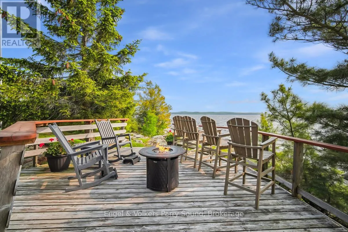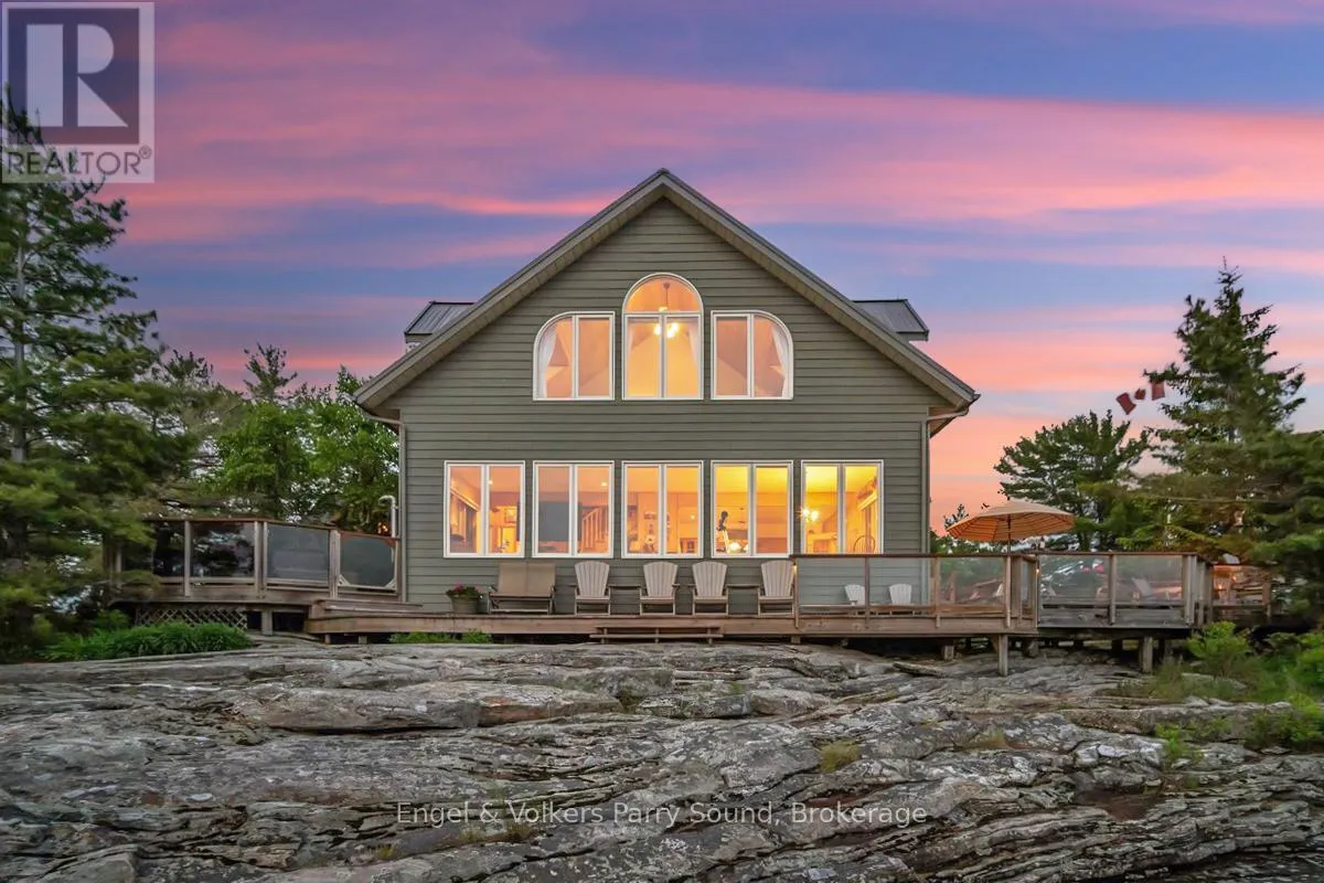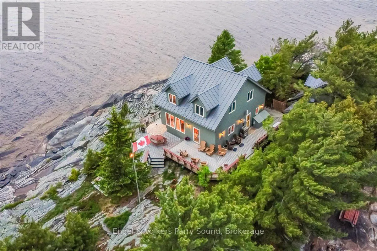 Cross Streets: Nobel Rd & George Hunt Memorial. ** Directions: George Hunt Launch, south to Three Tree Island. Welcome to Three Tree Island - An iconic & idyllic island retreat, Three Tree Island offers the rare opportunity to own a piece of Georgian Bays storied landscape. Featured in Cottage Life magazine, this majestic property combines timeless natural beauty with refined craftsmanship & total seclusion, an unmatched private oasis in the heart of Ontario's cottage country. Built by renowned local craftsman Ron Bowman, the islands main residence blends rustic charm with modern comfort, offering 3 bedrooms, 2 bathrooms & panoramic water views from every room. The primary suite is a true sanctuary, where oversized windows create the illusion of floating on the Bay itself. A separate bunkie with an additional bathroom provides extra accommodation for guests, along with an outdoor shower, sauna & hot tub that complete the spa-like experience. Strategically located just 3 minutes from municipal docks & 5 minutes from Parry Sound Harbour, access to town is effortless yet the island feels worlds away. Enjoy an afternoon at the nearby Parry Sound Golf Club, then return to wave at the Island Queen, passing cruise ships & Coast Guard vessels gliding by in the surrounding waters. Soak in dramatic western-facing views down the length of Georgian Bay and bask in unforgettable sunsets from the expansive decks, perfect for entertaining friends and family. With no neighbours in sight, extreme privacy & a granite shoreline hugging the island's perimeter, this is the perfect place to enjoy the sun, stars & Northern Lights.The property is offered fully furnished & features a commercial-grade steel docking system on the leeward side of the island, capable of accommodating larger vessels. Stay connected with full electricity & reliable internet, making it ideal for remote work or year-round escape. Whether you're swimming off the rocks, unwinding in the sauna or gazing at the endless water views, Three Tree Island is an exceptional, once-in-a-lifetime offering. Sunset lovers take note. (id:27476)