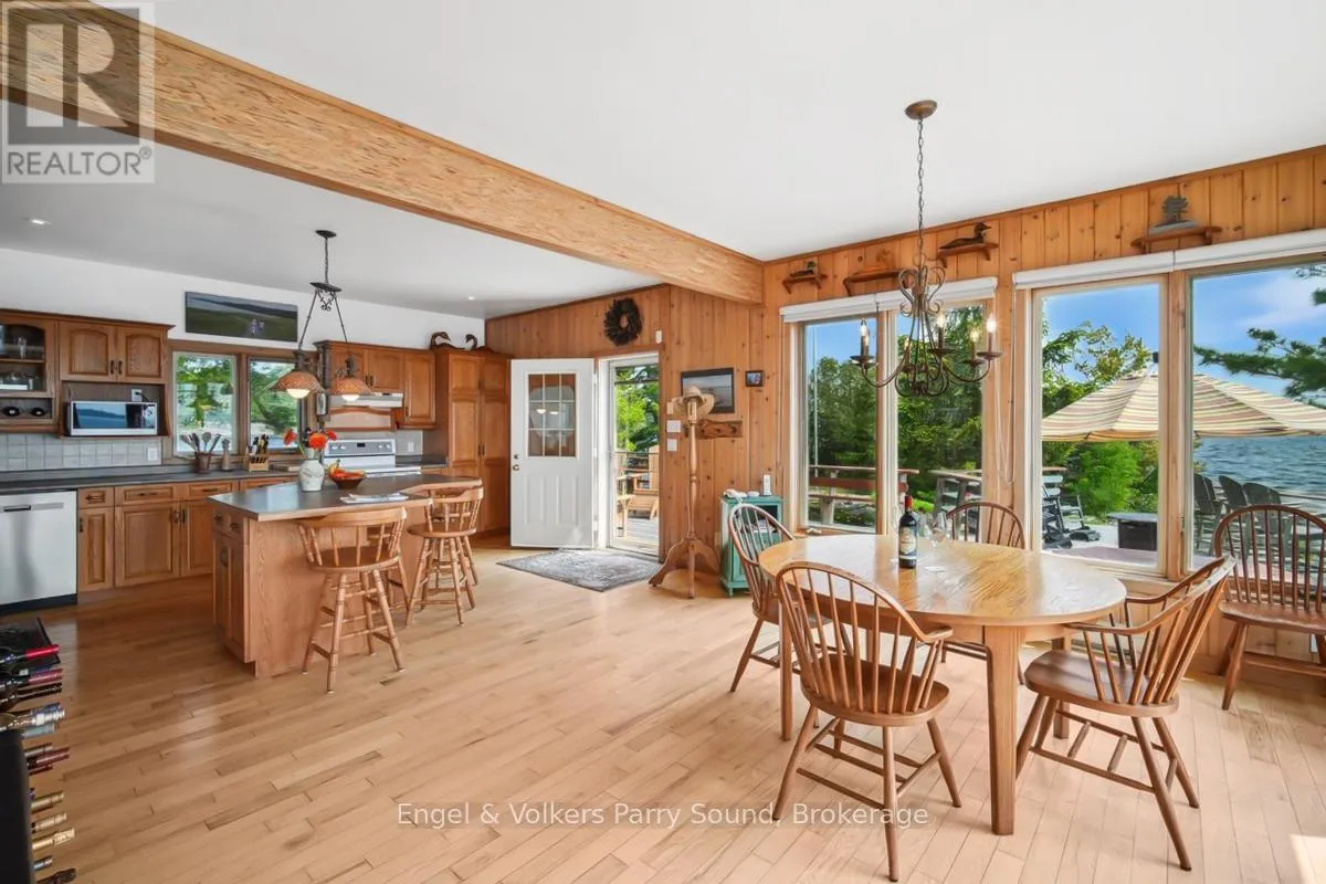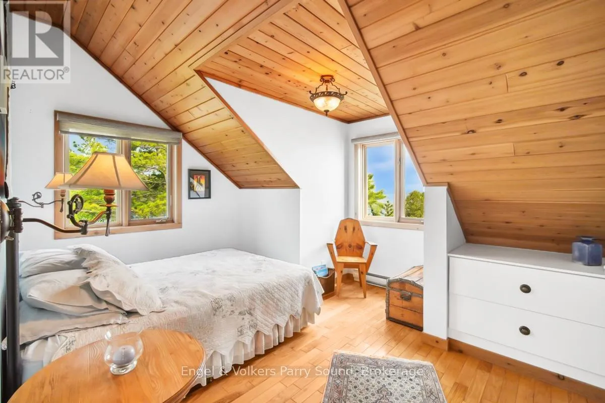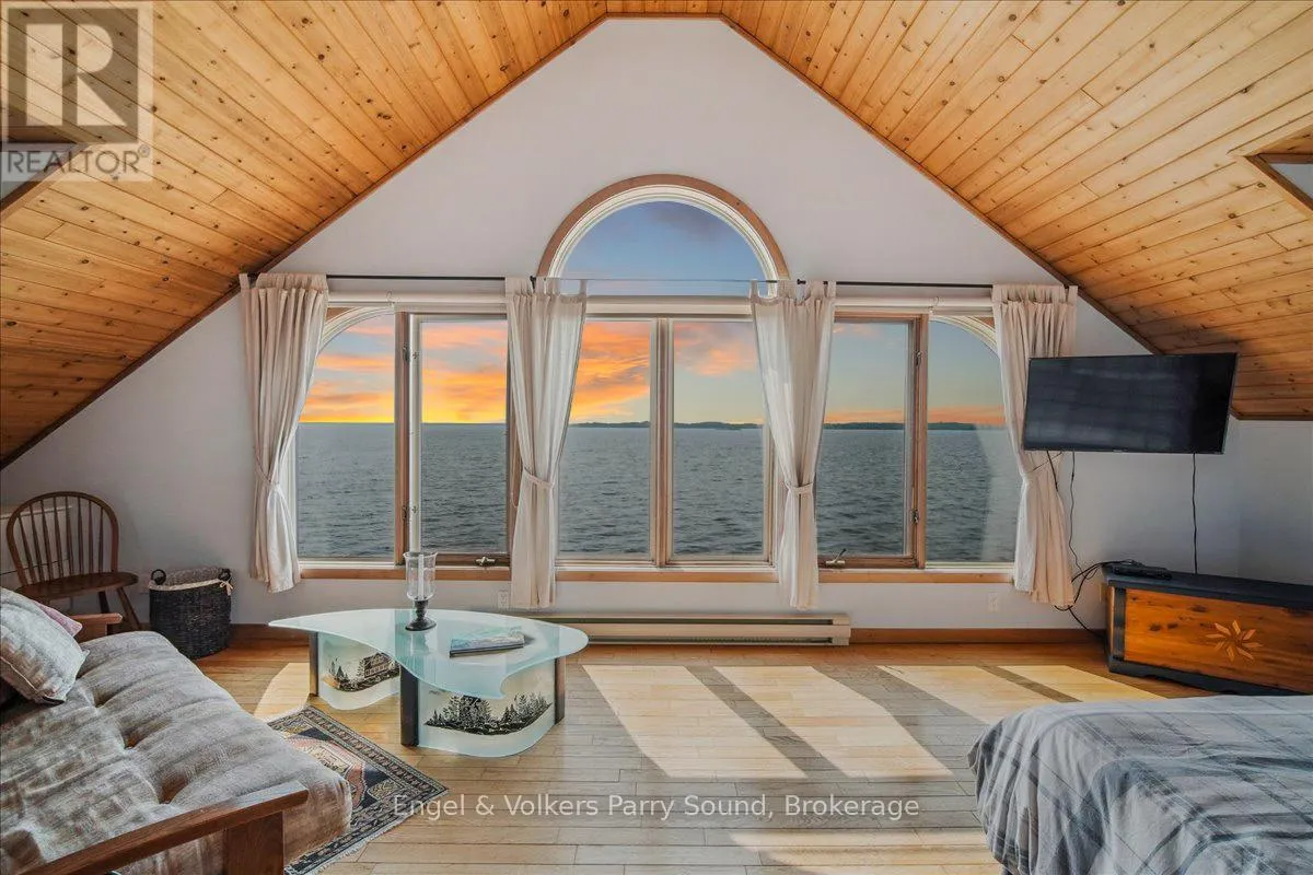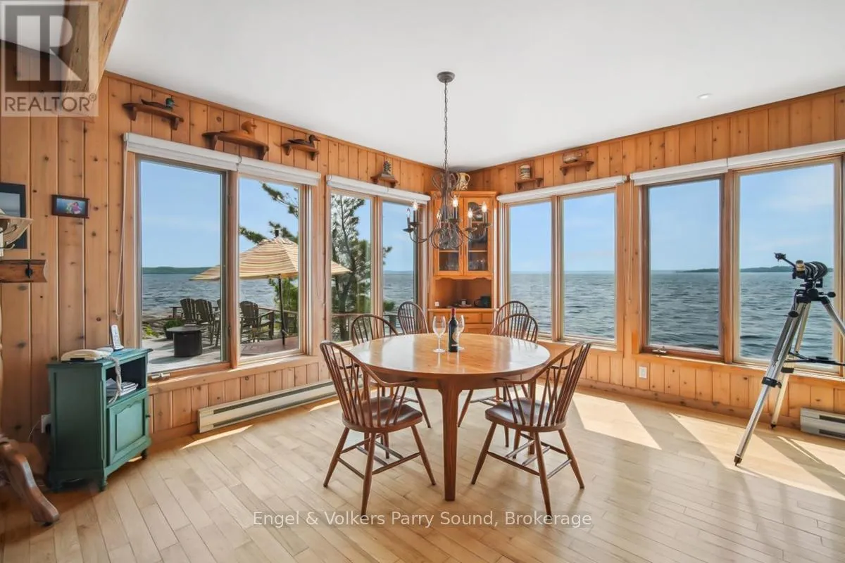 Cross Streets: Nobel Rd & George Hunt Memorial. ** Directions: George Hunt Launch, south to Three Tree Island. Welcome to Three Tree Island - An iconic & idyllic island retreat, Three Tree Island offers the rare opportunity to own a piece of Georgian Bays storied landscape. Featured in Cottage Life magazine, this majestic property combines timeless natural beauty with refined craftsmanship & total seclusion, an unmatched private oasis in the heart of Ontario's cottage country. Built by renowned local craftsman Ron Bowman, the islands main residence blends rustic charm with modern comfort, offering 3 bedrooms, 2 bathrooms & panoramic water views from every room. The primary suite is a true sanctuary, where oversized windows create the illusion of floating on the Bay itself. A separate bunkie with an additional bathroom provides extra accommodation for guests, along with an outdoor shower, sauna & hot tub that complete the spa-like experience. Strategically located just 3 minutes from municipal docks & 5 minutes from Parry Sound Harbour, access to town is effortless yet the island feels worlds away. Enjoy an afternoon at the nearby Parry Sound Golf Club, then return to wave at the Island Queen, passing cruise ships & Coast Guard vessels gliding by in the surrounding waters. Soak in dramatic western-facing views down the length of Georgian Bay and bask in unforgettable sunsets from the expansive decks, perfect for entertaining friends and family. With no neighbours in sight, extreme privacy & a granite shoreline hugging the island's perimeter, this is the perfect place to enjoy the sun, stars & Northern Lights.The property is offered fully furnished & features a commercial-grade steel docking system on the leeward side of the island, capable of accommodating larger vessels. Stay connected with full electricity & reliable internet, making it ideal for remote work or year-round escape. Whether you're swimming off the rocks, unwinding in the sauna or gazing at the endless water views, Three Tree Island is an exceptional, once-in-a-lifetime offering. Sunset lovers take note. (id:27476)