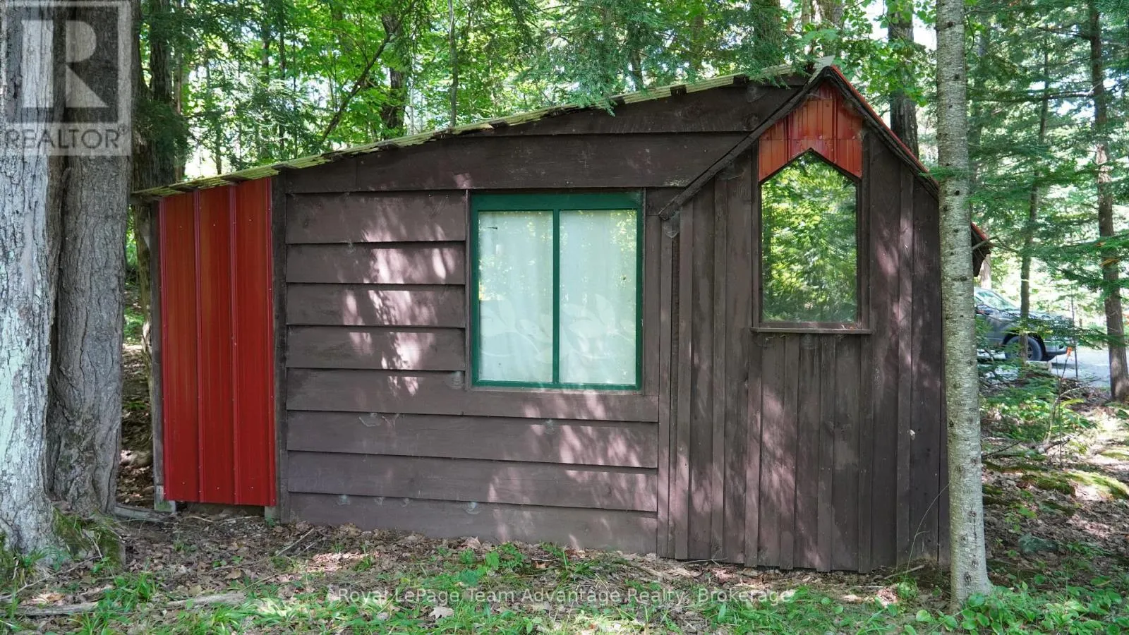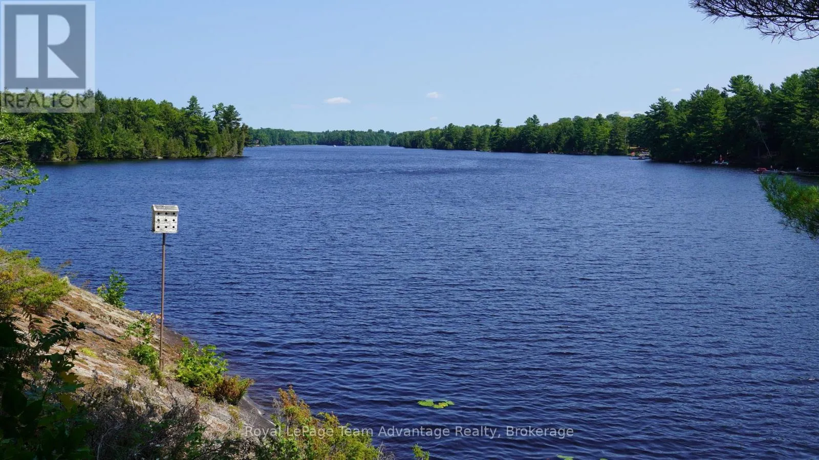 Cross Streets: Hwy 124 and Peninsula Shores Rd. ** Directions: Hwy 124 east from Parry Sound to Peninsula Rd. Turn left and right at Y to end of road. Vacant waterfront lot on the desirable shores of southern Harris Lake offering a level, well treed setting with about 120' (36m) of natural rocky shoreline with deep water for easy docking. Panoramic easterly views over the lake. A driveway is already installed and a garden shed provides convenient storage. Located on a year round maintained municipal road. Hydro is available at the roadside for easy connection. This property is just 15 minutes east of the town of Parry Sound, making it an ideal spot for your future getaway or dream cottage or home. (id:27476)