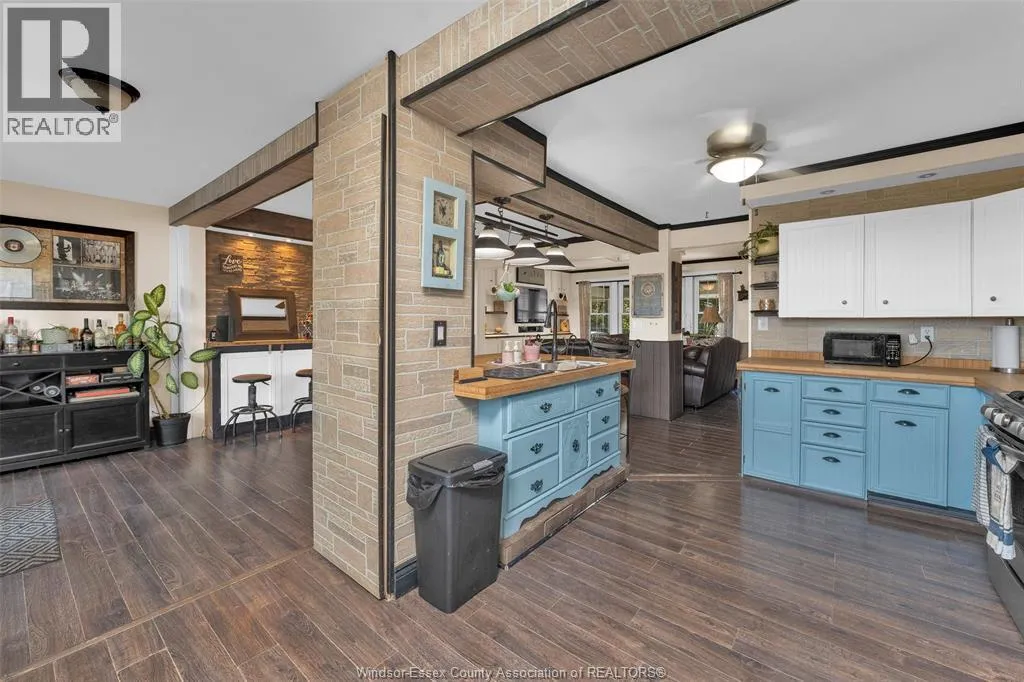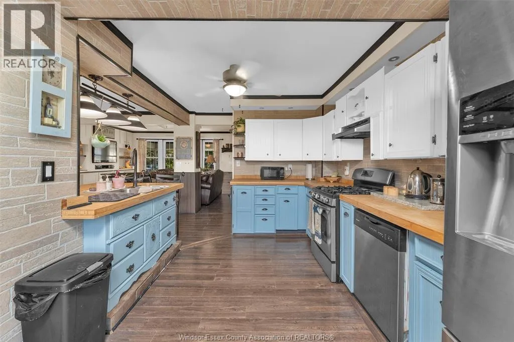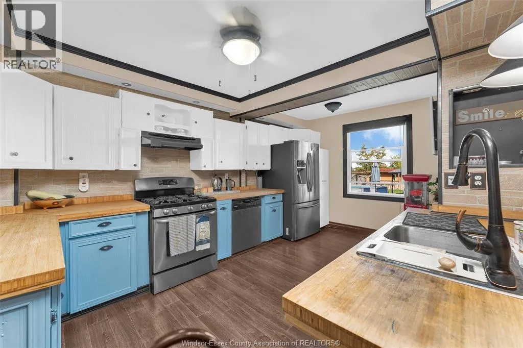 Welcome to this charming 2-storey Country home in the heart of McGregor, offering the perfect blend of comfort, versatility, and small-town living. Situated on a spacious 71 x 187 ft lot (approximately 1/3 of an acre), this 3-bedroom, 2-bathroom home offers a warm and inviting layout! The main floor is spacious with high ceilings, offering a cozy living room with gas fireplace and built in cabinetry. Massive eat-in kitchen with gas stove and lots of natural light and views of your gorgeous property. Upstairs youâll find original hardwood floors throughout, three bedrooms and 4-piece bath; primary has a walk-in closet. BONUS: Convenient second-floor laundry (2nd laundry)! Step outside and enjoy the private, fully fenced backyard with no rear neighbours; perfect for kids, pets and entertaining! Offering a sprawling 2-tier deck with gazebo and above-ground pool with working pump. Fully landscaped with mature trees and shed included. Built-in doggy door (can be closed before occupancy). Lower level is set up as a huge, fully furnished bachelor unit complete with living room/bedroom combo, grade entrance, kitchenette, separate laundry, gas fireplace, cold cellar and 3-piece bath with huge shower and plenty of storage. Currently tenanted with an A+ tenant paying $1,200/month who is only home on weekends. Vacant possession possible. Spend fall evenings on your relaxing covered front porch. Expansive double-width driveway with lots of room to park many vehicles and toys. Low annual property taxes and built-in rental income makes this property the smart economic choice! Central location, 10-20 mins to surrounding towns and City of Windsor; prime spot near parks, playgrounds, and local amenities. This property checks all the boxes for extended families and investors alike. 24 hrs irrevocable on all offers requested. (id:27476)