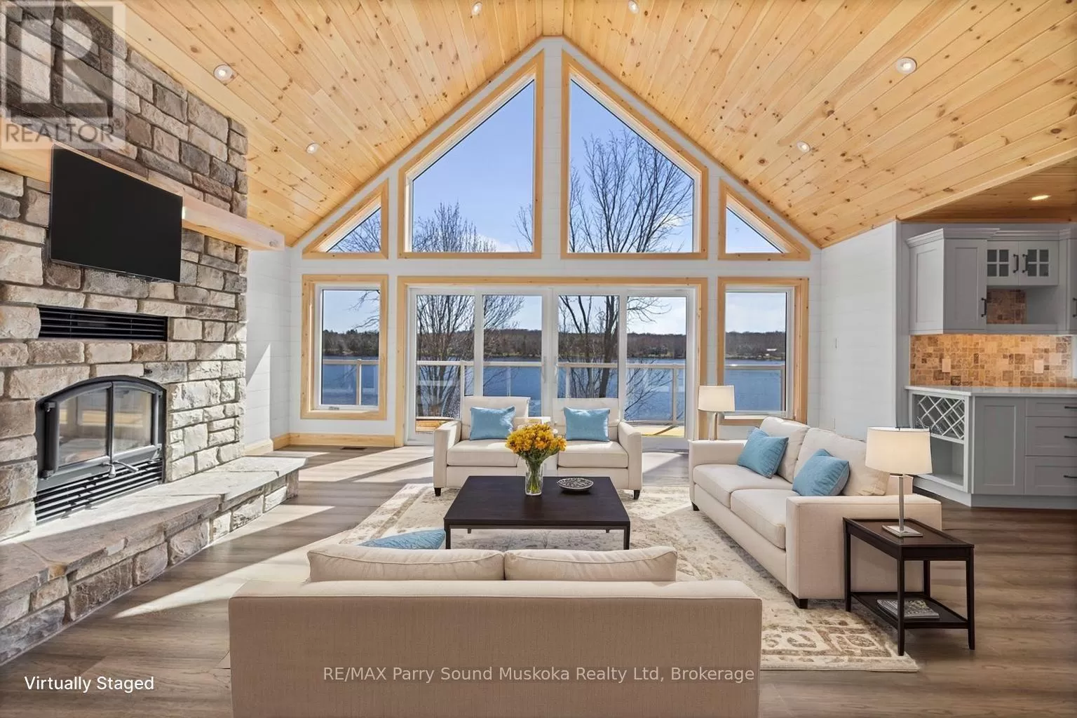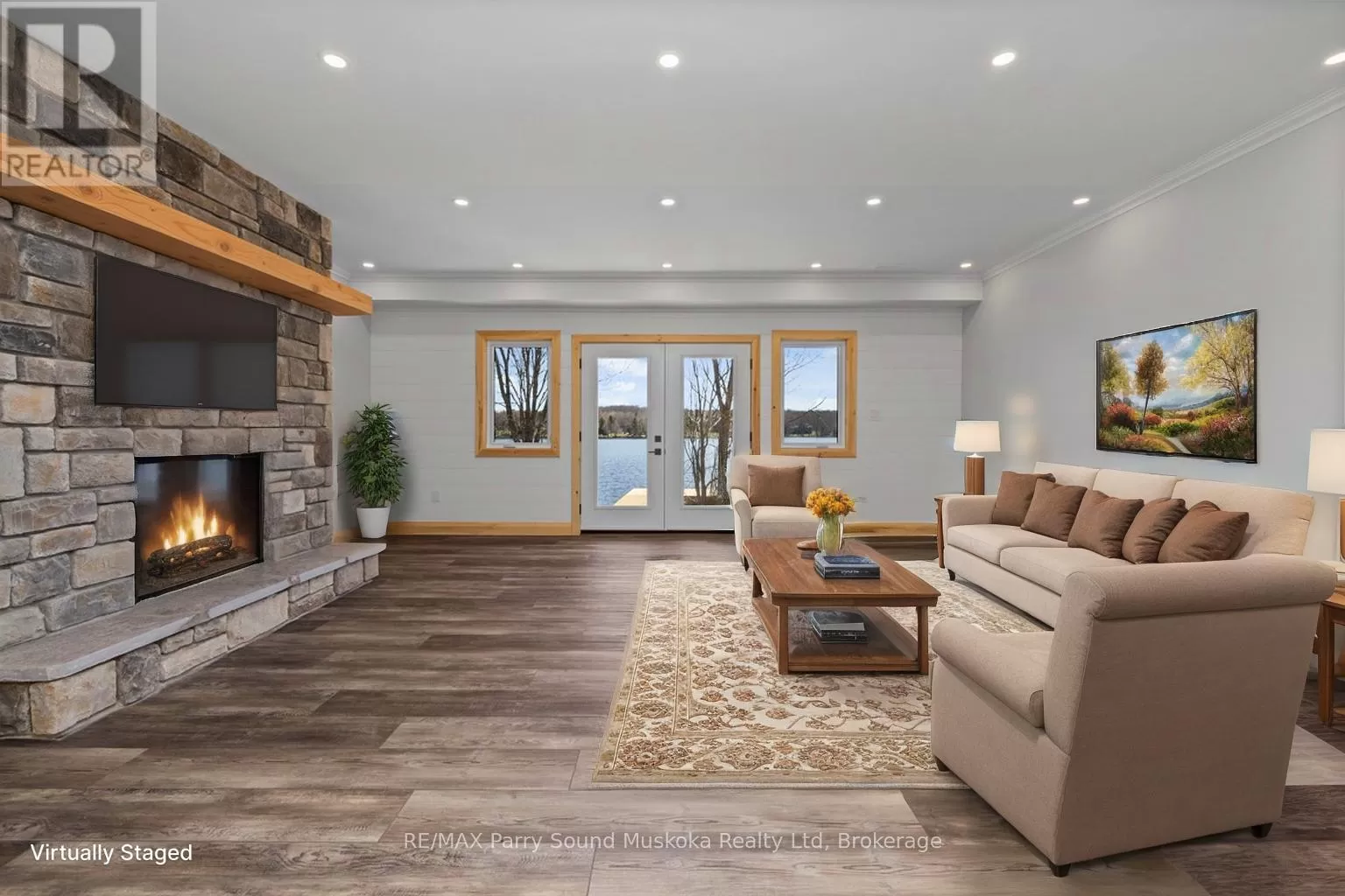 Cross Streets: Hardies Road x Hurdville Road. ** Directions: Hwy 400 to Hwy 124 to Hurdville to Hardies. CUSTOM BUILT 4 SEASON COTTAGE on LAKE MANITOUWABING! 293 ft of easy access shoreline, Natural sand beach area, 2.47 ACRES of PRIVACY! Designed for the Discriminating Buyer! Approx 3800 sq ft of luxury boasts full finished Walkout Lower Level! 4 + 2 bedrooms, 3 baths, Bright Open Concept Design, Wall of windows wrapped in nature, Commanding Great room boasts pine ceilings, LED pot lighting throughout, Stunning floor to ceiling Custom Stone Fireplace (wood burning), Engineered hardwood throughout main level, Dream Chef's kitchen with huge island, Quartz counters, Abundance of custom cabinetry, New stainless steel appliances, Extend your days to enjoy the 3 season Pine Muskoka Room with walk out to expansive deck, Designed for entertaining & lake gazing, Primary bedroom enhanced with luxurious 5 pc ensuite bath, heated floors & walk out to deck, Finished walkout lower level boasts LED pot lighting, Large Media/Rec room, Wet bar with custom cabinetry, Large additional Guest rooms each w walk in closets, 3rd bath, Family room features Custom Stone Fireplace (Propane) w Walkout to lakeside, Upgraded with tiled in-floor heating in main floor foyer, laundry and main floor baths, Hand crafted custom pine trim throughout, Pine doors, Appointed with hi-efficiency propane furnace, Drilled well, Protected waters for your boat, Fabulous canoe & kayak excursions, Miles of Boating & Fishing Enjoyment on one of the areas largest in land lakes, Near by Village of McKellar offers amenities, General store w liquor, Middle River Farm Store, Boat launch, Year round road access, Excellent highway access to Parry Sound & Hwy 400, Make this ONE of a KIND PROPERTY YOURS! ONLY 2.5 HOURS to GTA, PRIVACY ABOUNDS! (id:27476)