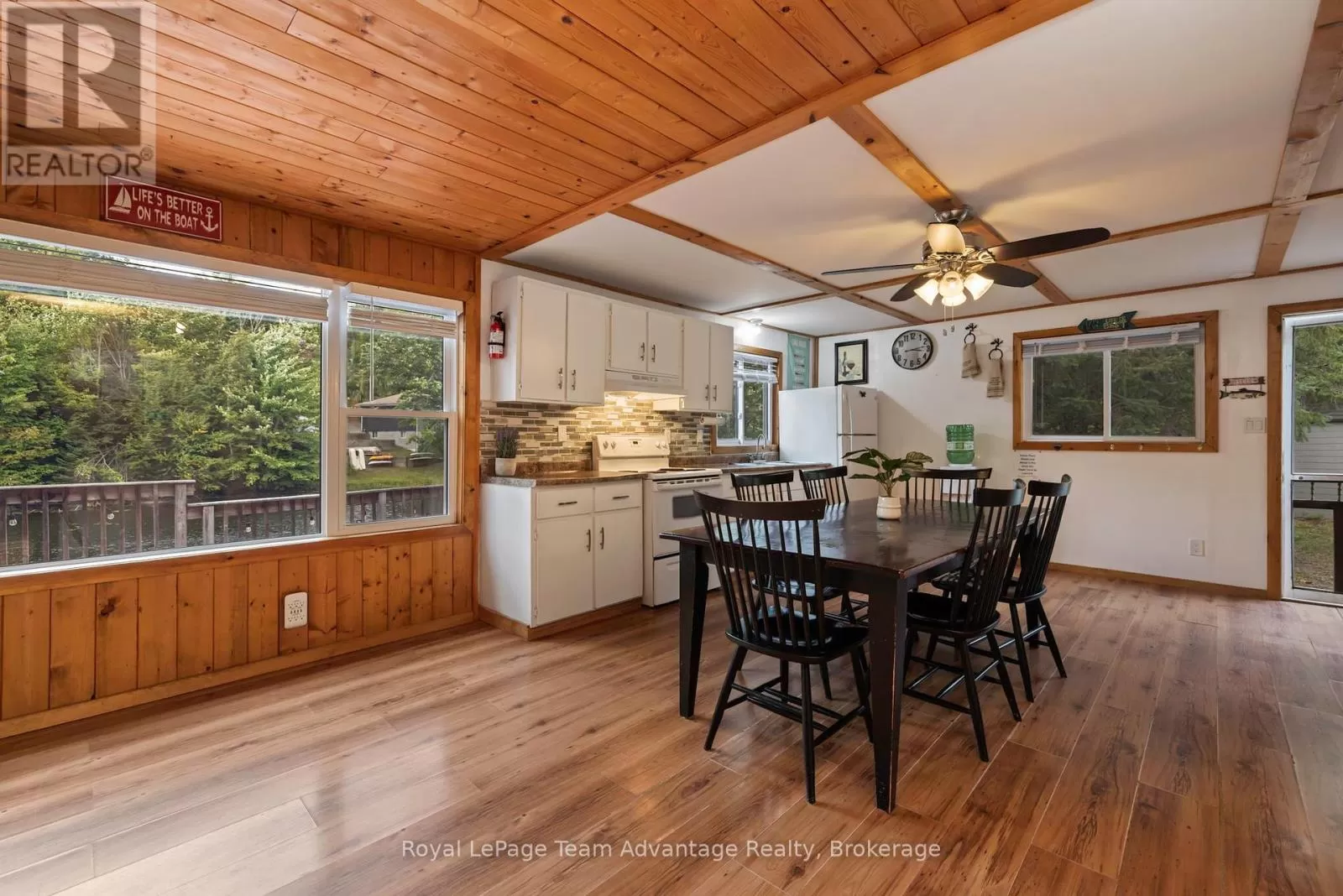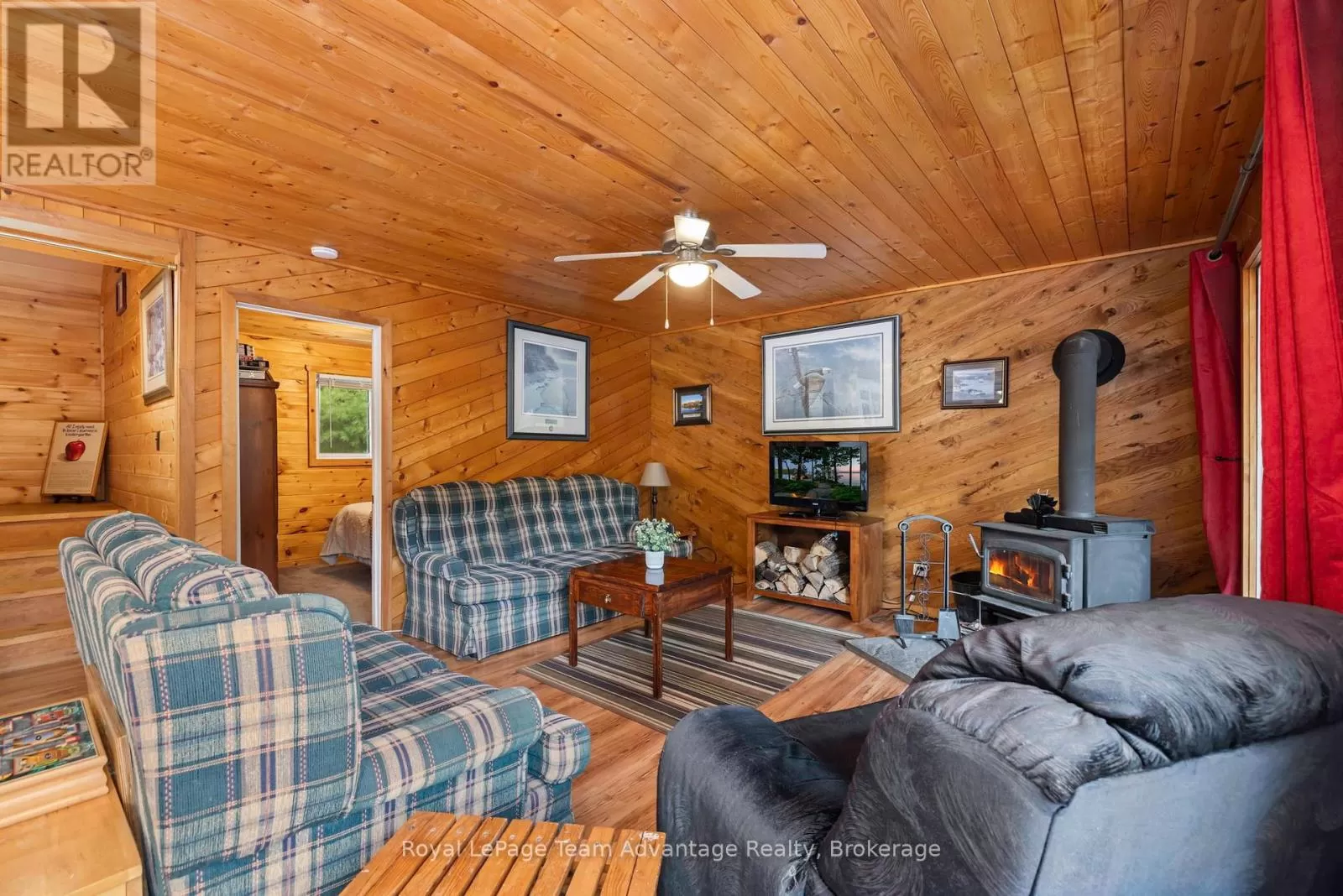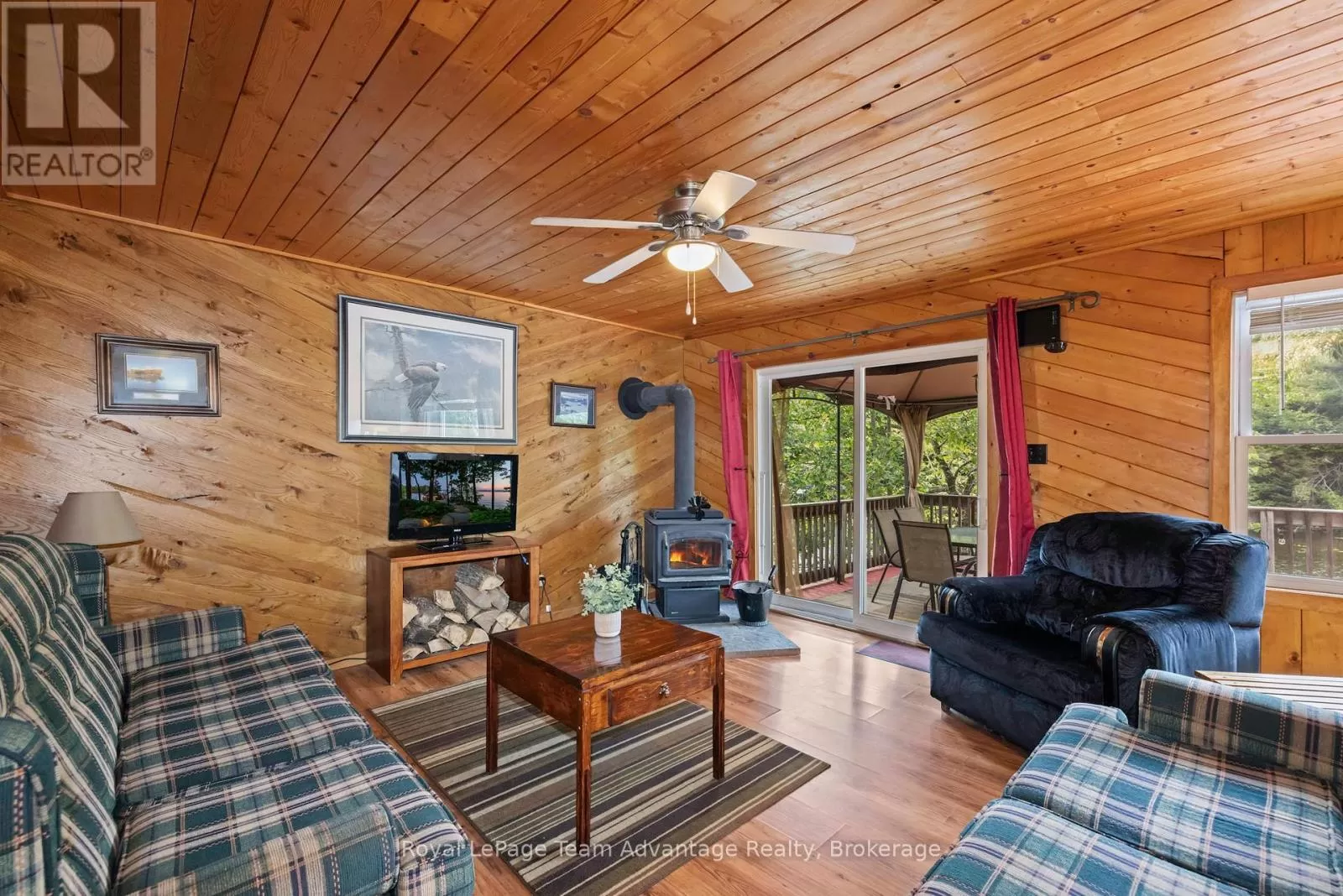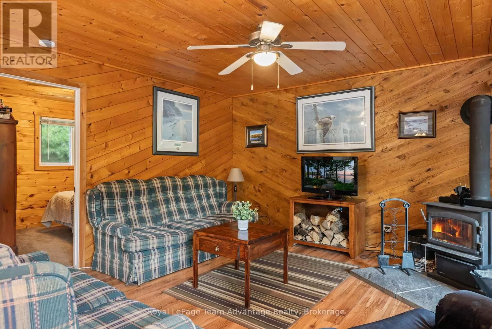 Cross Streets: McKellar Lake Rd and Hwy 124. ** Directions: Hwy 124E to McKellar Lake Rd to #79 SOP. Fantastic opportunity to own a 4-bedroom, 1-bathroom cottage in the charming Village of McKellar on beautiful Grey Owl Lake. Located on a municipal year-round road this property offers convenience and peace of mind. Step inside to a spacious open-concept living, dining and kitchen area ideal for family gatherings and entertaining. The bedrooms and bathroom are well-sized offering plenty of room for everyone. Low-maintenance features include vinyl siding and a durable steel roof while a cozy wood-burning stove provides warmth on cool evenings. The level lot leads you gently to the waterfront where a nice dock awaits with plenty of space to relax and take in the stunning sunsets. Grey Owl Lake is not only known for its scenic beauty, boating and fishing opportunities but it also provides boat access to Lorimer Lake for even more exploring. A generous yard and ample parking add to the convenience. Plus just down the road on McKellar Lake, you'll find fun and adventurous cliff jumping for those looking to add a little thrill to their cottage days. With nearby McKellar Lake, Manitouwabing Lake and all the amenities of the Village of McKellar just minutes away this property truly has it all. (id:27476)
