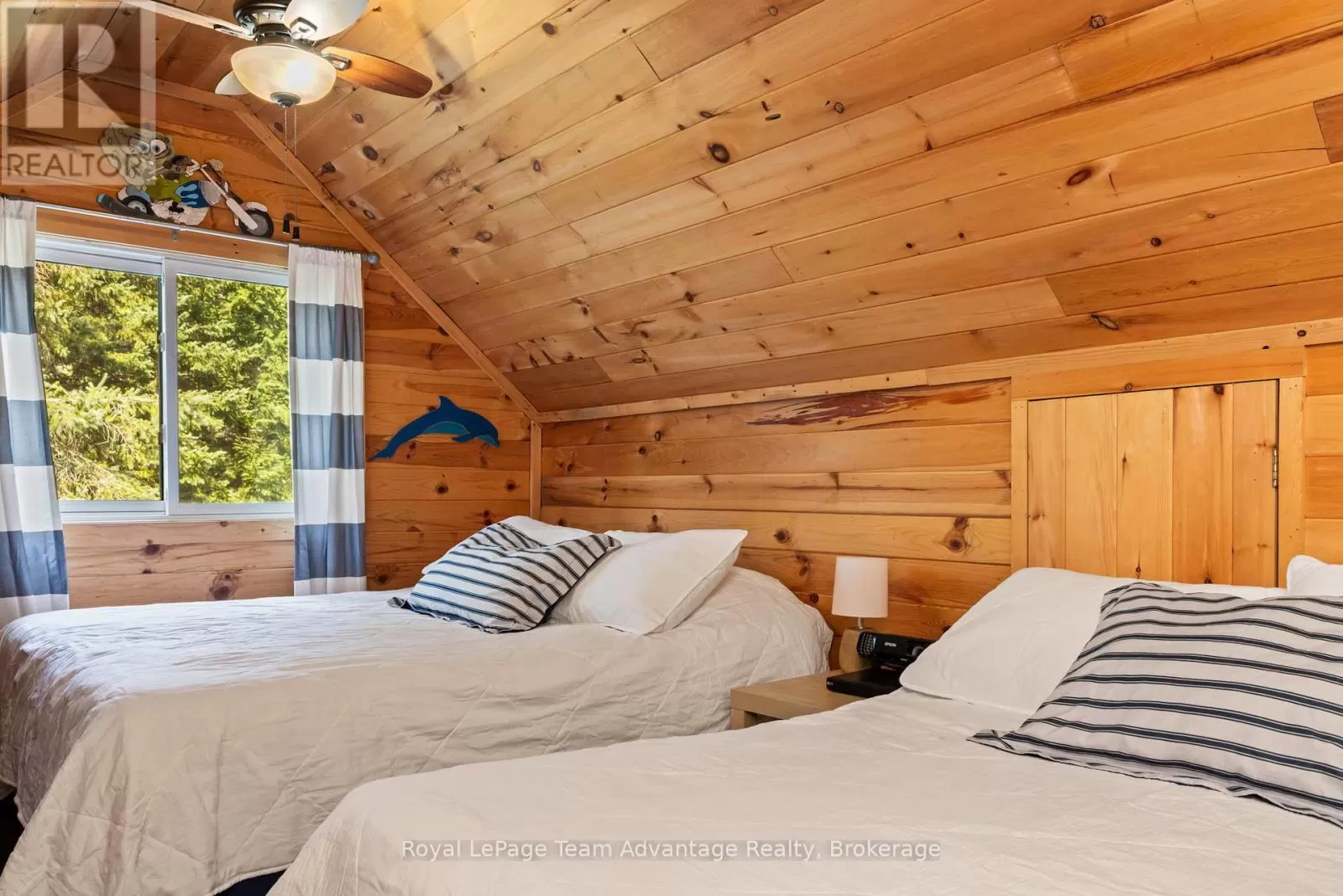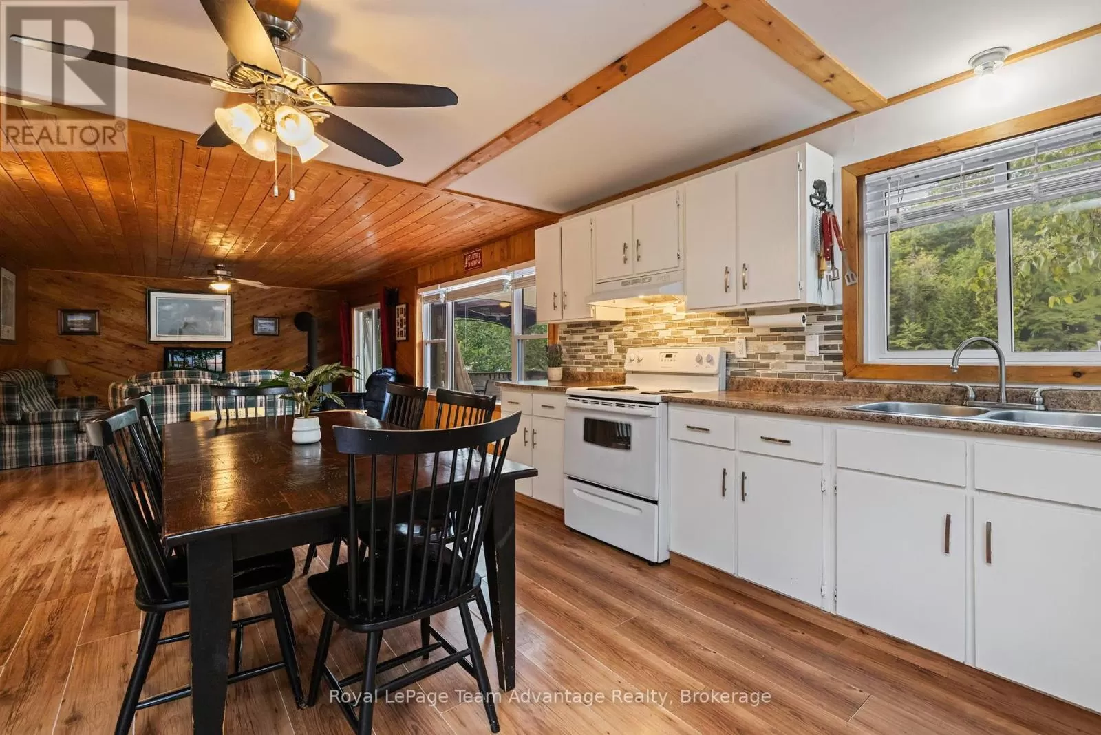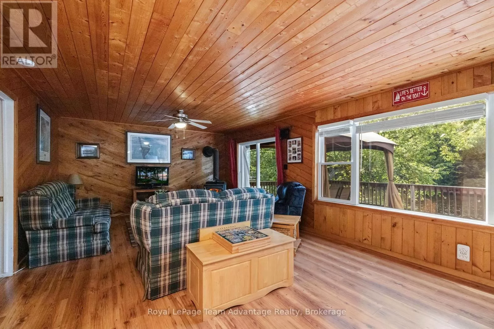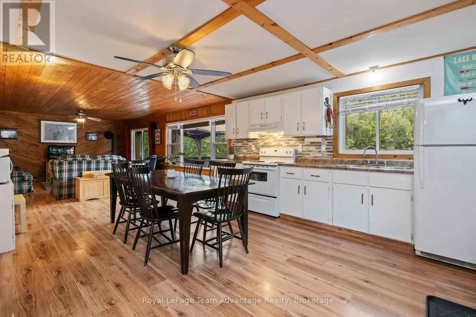Cross Streets: McKellar Lake Rd and Hwy 124. ** Directions: Hwy 124E to McKellar Lake Rd to #79 SOP. Fantastic opportunity to own a 4-bedroom, 1-bathroom cottage in the charming Village of McKellar on beautiful Grey Owl Lake. Located on a municipal year-round road this property offers convenience and peace of mind. Step inside to a spacious open-concept living, dining and kitchen area ideal for family gatherings and entertaining. The bedrooms and bathroom are well-sized offering plenty of room for everyone. Low-maintenance features include vinyl siding and a durable steel roof while a cozy wood-burning stove provides warmth on cool evenings. The level lot leads you gently to the waterfront where a nice dock awaits with plenty of space to relax and take in the stunning sunsets. Grey Owl Lake is not only known for its scenic beauty, boating and fishing opportunities but it also provides boat access to Lorimer Lake for even more exploring. A generous yard and ample parking add to the convenience. Plus just down the road on McKellar Lake, you'll find fun and adventurous cliff jumping for those looking to add a little thrill to their cottage days. With nearby McKellar Lake, Manitouwabing Lake and all the amenities of the Village of McKellar just minutes away this property truly has it all. (id:27476)
