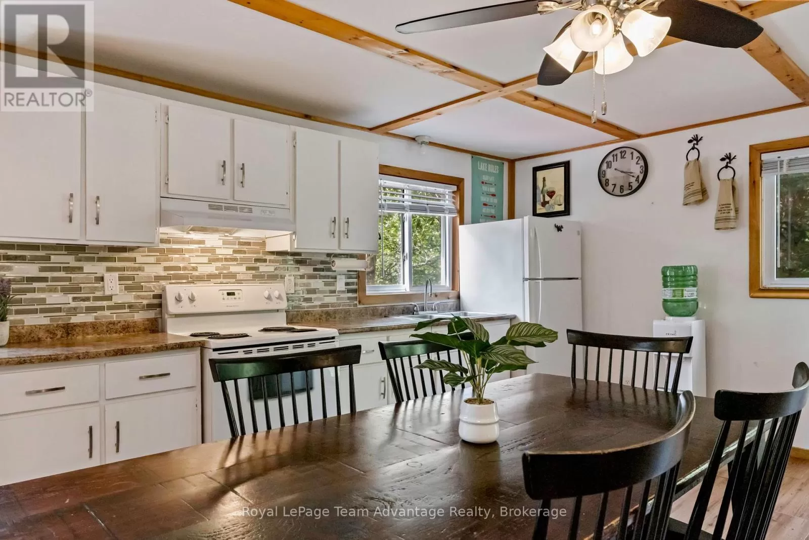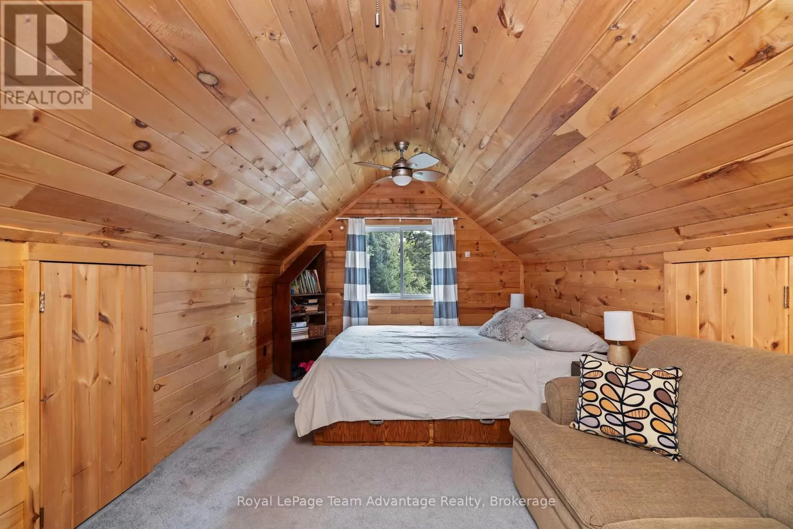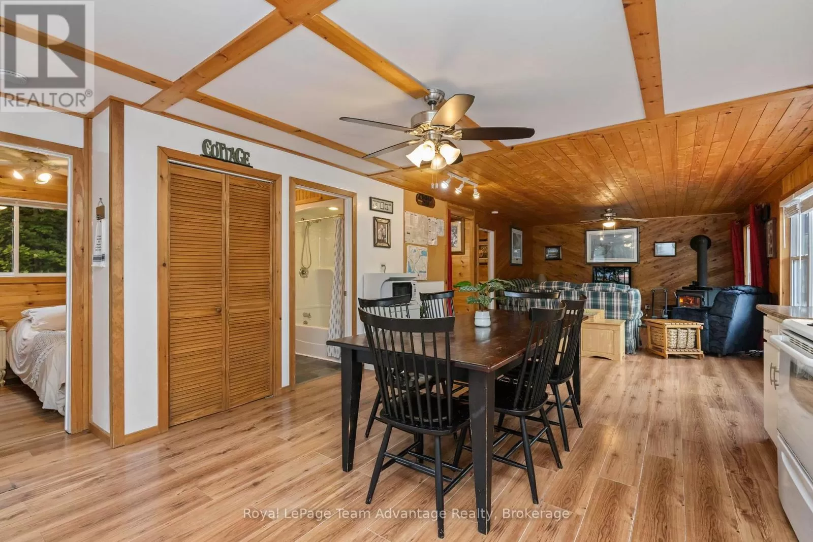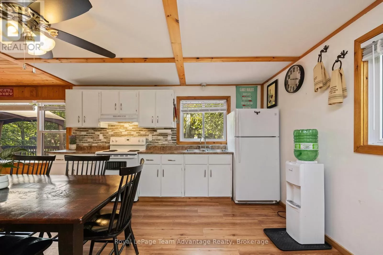 Cross Streets: McKellar Lake Rd and Hwy 124. ** Directions: Hwy 124E to McKellar Lake Rd to #79 SOP. Fantastic opportunity to own a 4-bedroom, 1-bathroom cottage in the charming Village of McKellar on beautiful Grey Owl Lake. Located on a municipal year-round road this property offers convenience and peace of mind. Step inside to a spacious open-concept living, dining and kitchen area ideal for family gatherings and entertaining. The bedrooms and bathroom are well-sized offering plenty of room for everyone. Low-maintenance features include vinyl siding and a durable steel roof while a cozy wood-burning stove provides warmth on cool evenings. The level lot leads you gently to the waterfront where a nice dock awaits with plenty of space to relax and take in the stunning sunsets. Grey Owl Lake is not only known for its scenic beauty, boating and fishing opportunities but it also provides boat access to Lorimer Lake for even more exploring. A generous yard and ample parking add to the convenience. Plus just down the road on McKellar Lake, you'll find fun and adventurous cliff jumping for those looking to add a little thrill to their cottage days. With nearby McKellar Lake, Manitouwabing Lake and all the amenities of the Village of McKellar just minutes away this property truly has it all. (id:27476)