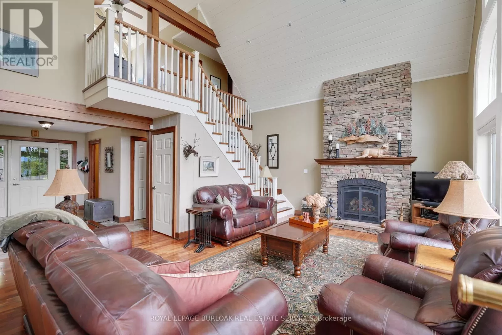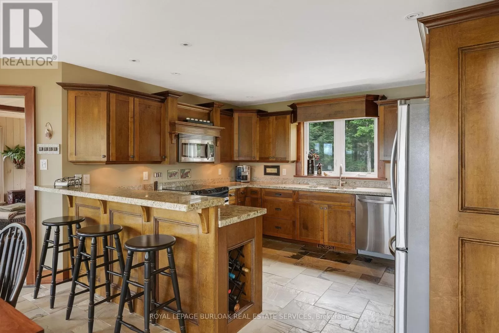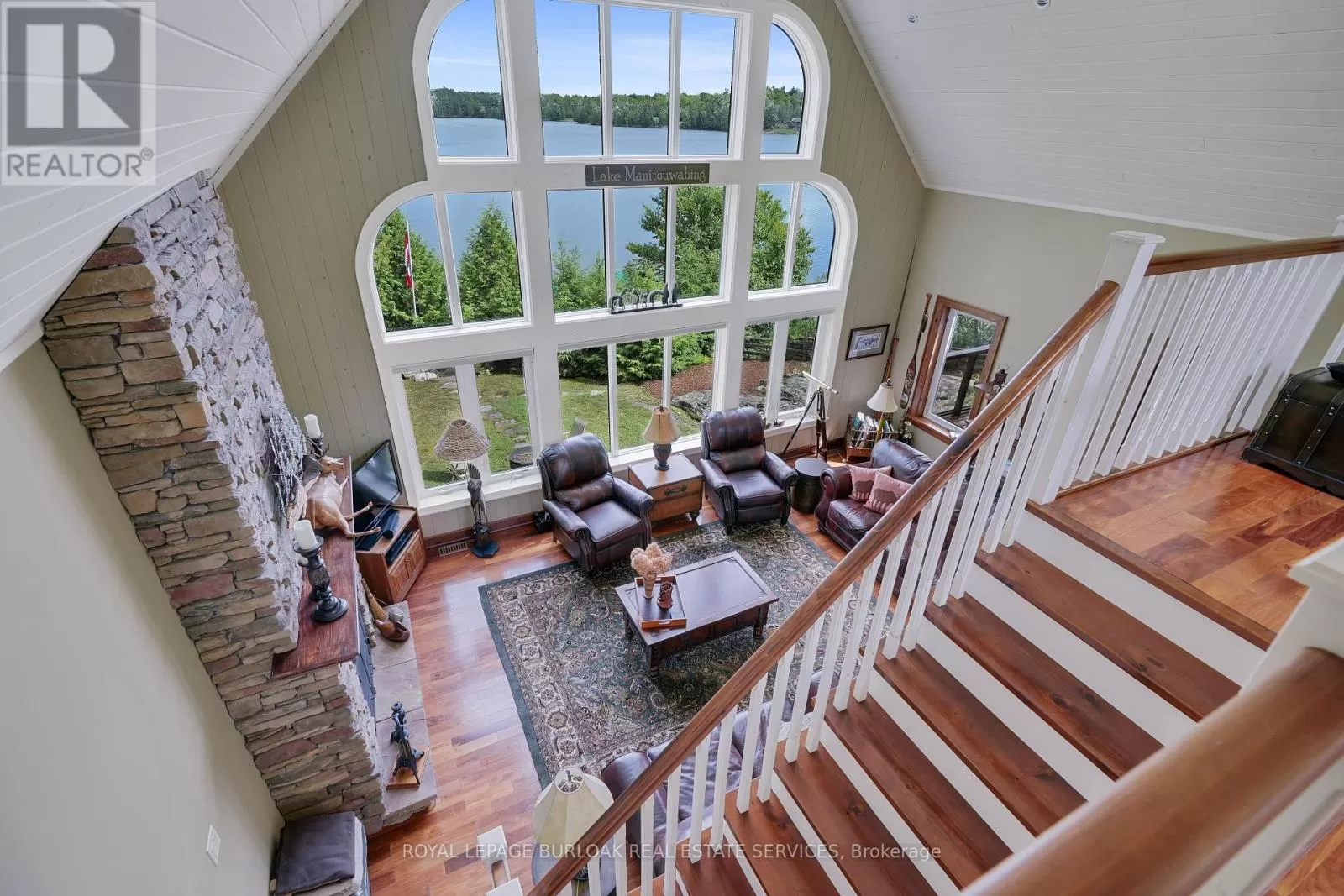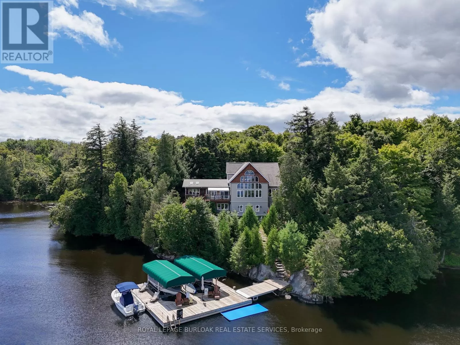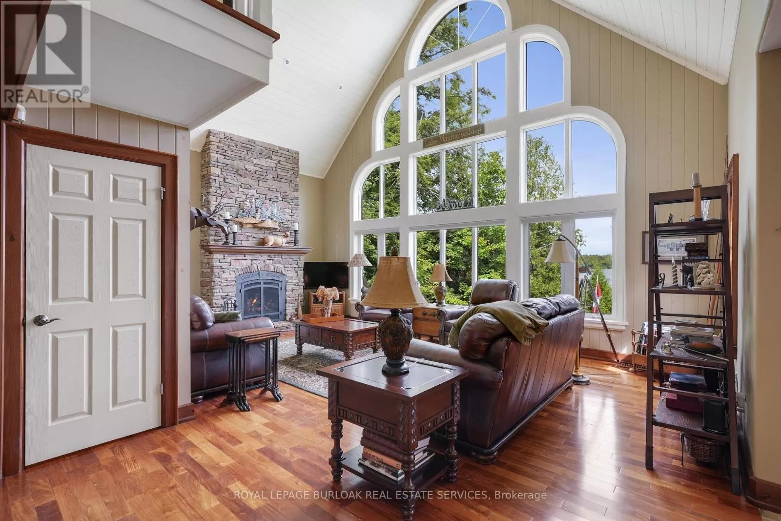 Cross Streets: Burnetts Rd. & Manitouwabing Estates Rd. ** Directions: Hurdville Rd to Burnetts Rd, right on Manitouwabing Estates Rd. Panoramic views of Lake Manitouwabing take center stage in this beautifully crafted lake house, visible from nearly every room in the house. Whether you're enjoying a morning coffee or hosting family and friends, the ever-changing lake vista is your daily backdrop. Lovingly maintained by the same family for almost 20 years, this stunning property offers 3,533 sqft of finished living space on a private lot at the end of a quiet, municipally maintained cul-de-sac. The lot itself is a rare gem, blending lush forest, bedrock, open green space & a gradual slope to the waterfront, perfect for lakeside enjoyment for all ages. Inside, thoughtful design meets superior craftsmanship, with slate tile, hardwood floors, pine ceilings, wall treatments and mouldings. The great room features soaring ceilings & stone fireplace, making it the perfect gathering place with a breathtaking view. The kitchen is both timeless and functional, boasting solid maple cabinetry, granite countertops & stainless-steel appliances. With 3+2 bedrooms and 3.5 bathrooms, there's space and comfort for the whole family. The fully finished basement features 9-foot ceilings, in-floor heating, wet bar & direct access to the waterfront. Enjoy 151 ft of clean, deep, shoreline and a premium docking system with 2 covered boat slips, lift systems, and approx 18ft of water depth off the dock's end -ideal for swimming and boating. The insulated 1,357 sqft garage & workshop is a hobbyists dream, with a 2-post car lift, roughed-in radiant in-floor heating and upper loft, plus many inclusions. Take a scenic 15 min boat ride to championship golf course, Manitou Ridge, for a round of golf or bite to eat at their beautiful clubhouse & patio. Both McKellar & Parry Sound are a short drive for groceries, local eateries and all other amenities. This truly turnkey offering blends natural beauty, modern convenience + many premium extras into an exceptional year-round waterfront home that is ready for immediate enjoyment! (id:27476)