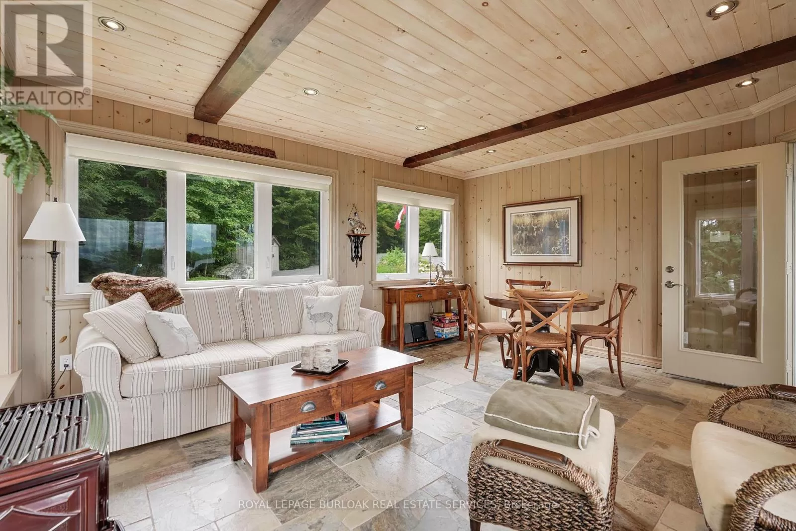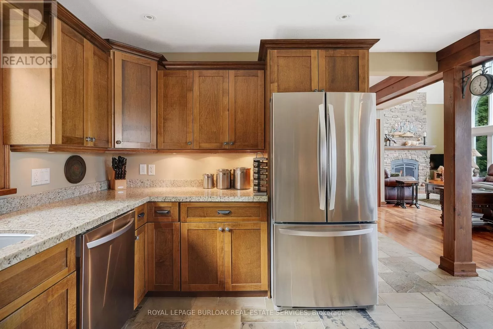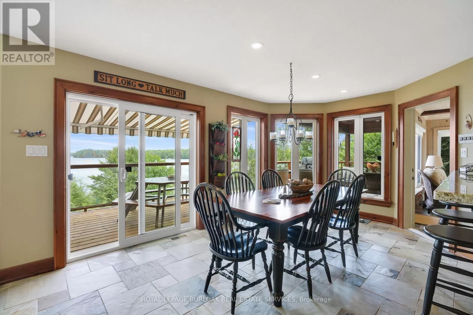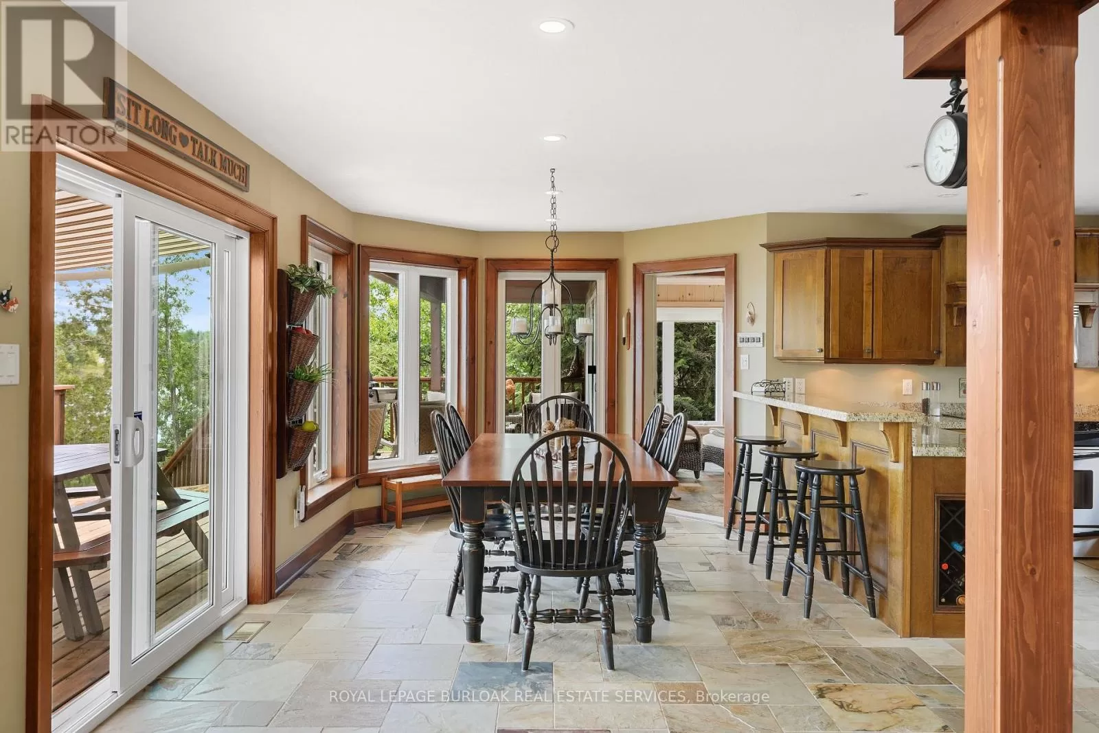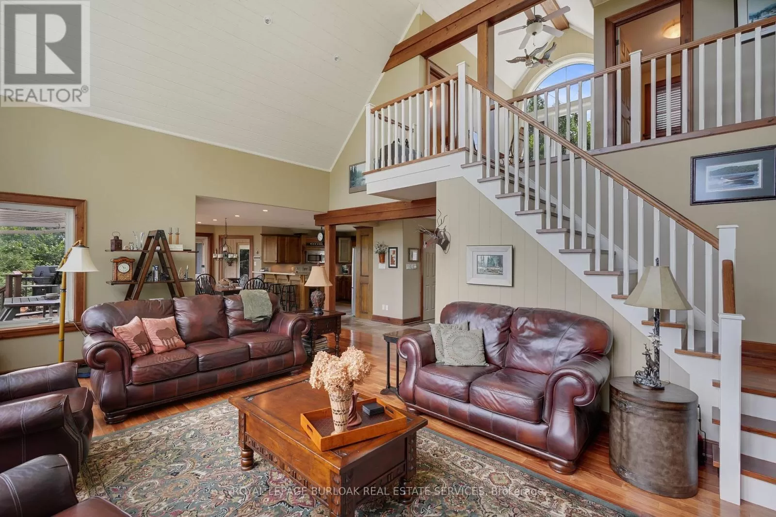 Cross Streets: Burnetts Rd. & Manitouwabing Estates Rd. ** Directions: Hurdville Rd to Burnetts Rd, right on Manitouwabing Estates Rd. Panoramic views of Lake Manitouwabing take center stage in this beautifully crafted lake house, visible from nearly every room in the house. Whether you're enjoying a morning coffee or hosting family and friends, the ever-changing lake vista is your daily backdrop. Lovingly maintained by the same family for almost 20 years, this stunning property offers 3,533 sqft of finished living space on a private lot at the end of a quiet, municipally maintained cul-de-sac. The lot itself is a rare gem, blending lush forest, bedrock, open green space & a gradual slope to the waterfront, perfect for lakeside enjoyment for all ages. Inside, thoughtful design meets superior craftsmanship, with slate tile, hardwood floors, pine ceilings, wall treatments and mouldings. The great room features soaring ceilings & stone fireplace, making it the perfect gathering place with a breathtaking view. The kitchen is both timeless and functional, boasting solid maple cabinetry, granite countertops & stainless-steel appliances. With 3+2 bedrooms and 3.5 bathrooms, there's space and comfort for the whole family. The fully finished basement features 9-foot ceilings, in-floor heating, wet bar & direct access to the waterfront. Enjoy 151 ft of clean, deep, shoreline and a premium docking system with 2 covered boat slips, lift systems, and approx 18ft of water depth off the dock's end -ideal for swimming and boating. The insulated 1,357 sqft garage & workshop is a hobbyists dream, with a 2-post car lift, roughed-in radiant in-floor heating and upper loft, plus many inclusions. Take a scenic 15 min boat ride to championship golf course, Manitou Ridge, for a round of golf or bite to eat at their beautiful clubhouse & patio. Both McKellar & Parry Sound are a short drive for groceries, local eateries and all other amenities. This truly turnkey offering blends natural beauty, modern convenience + many premium extras into an exceptional year-round waterfront home that is ready for immediate enjoyment! (id:27476)
