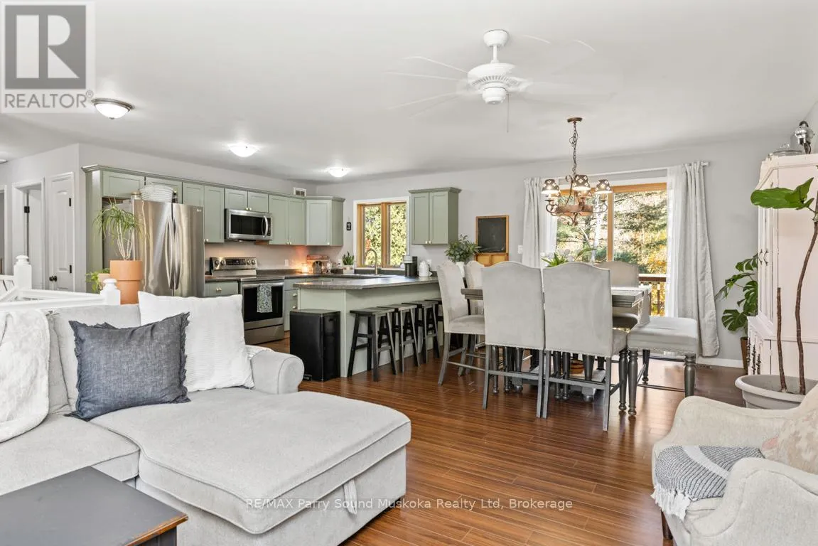 Cross Streets: 400, 124, Centre Rd. ** Directions: Hwy 400 to Hwy 124, right to Centre Rd to #312 on right. FANTASTIC RURAL 3+2 BEDROOM, 3 BATH HOME NESTLED ON 1.68 ACRES OF PRIVACY! 288' FRONTAGE, MINS to 'THE RIDGE AT MANITOU GOLF CLUB', LAKE MANITOUWABING BEACH & BOAT LAUNCH! DESIRABLE BUNGALOW, 16 YEARS NEW! Boasts full finished walkout lower level! Over 2000 sq ft Professionally Finished above grade, Bright Open Concept Plan, This home is warm, welcoming & tastefully decorated, Laminate hardwood floors, Walkout to sundeck wrapped in nature for BBQ's, Kitchen boasts large peninsula, Abundance of cupboards, New stainless appliances 2025, Bright Family room with walkout/sep entry to lower level, 9 ft Ceilings, High efficiency forced air propane furnace, New heat pump 2023, (economical heating costs just $800/year for propane), Nestled on a year round municipal road, discreetly tucked back into an oasis of privacy and beauty! Only 20 minutes from Parry Sound. Parking for boats, RVs, Maintenance free exterior, Drilled well, THIS IS YOUR IDEAL FAMILY OASIS! (id:27476)