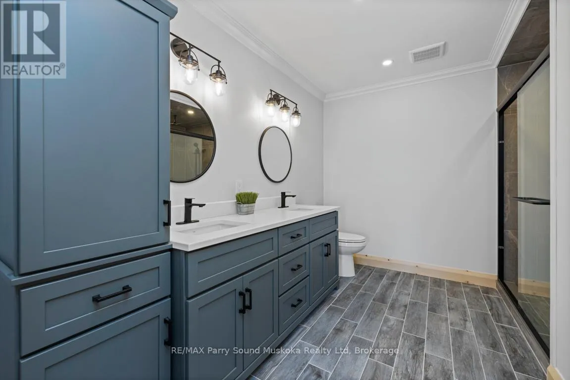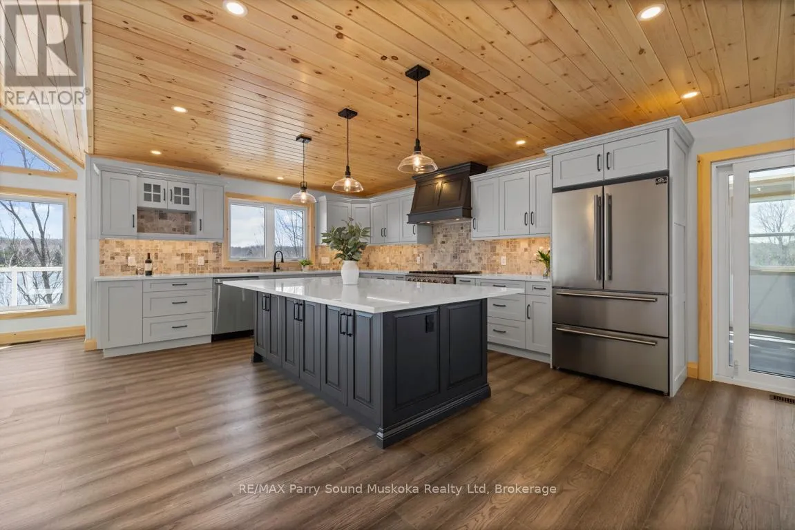 Cross Streets: Hardies Road x Hurdville Road. ** Directions: Hwy 400 to Hwy 124 to Hurdville to Hardies. CUSTOM BUILT 4 SEASON COTTAGE on LAKE MANITOUWABING! 293 ft of easy access shoreline, Natural sand beach area, 2.47 ACRES of Privacy! Approx 3800 sq ft, Full finished Walkout Lower Level, 4 + 2 bedrooms, 3 baths, Bright Open Concept Design, Wall of windows wrapped in nature, Commanding Great room features vaulted pine ceilings, LED pot lighting throughout, Stunning floor to ceiling Custom Stone Fireplace (wood burning), Engineered hardwood throughout main level, Dream Chef's kitchen with huge island, Quartz counters, Abundance of custom cabinetry, New stainless steel appliances, Extend your days to enjoy the 3 season Pine Muskoka Room with walk out to expansive deck, Designed for entertaining & lake gazing, Primary bedroom enhanced with luxurious ensuite bath, heated floors, walk in closet & walk out to deck, Lower level boasts LED pot lighting, Large Media/Rec room, Wet bar with custom cabinetry, Large additional Guest rooms each w walk in closets, 3rd 4 pc bath, Family room features Custom Stone Fireplace (Propane) w Walkout to lakeside, Upgraded with tiled in-floor heating in main floor foyer, laundry and main floor baths, Hand crafted custom pine trim throughout, Pine doors, Appointed with hi-efficiency propane furnace, Drilled well, Protected waters for your boat, Great swimming, Fabulous canoe & kayak excursions, Miles of Boating & Fishing Enjoyment on Desirable Lake Manitouwabing, One of the areas largest in land lakes, Near by Village of McKellar offers amenities; General store w liquor, Middle River Farm Store, Boat launch, Saturday morning summer market, Year round road access, Excellent highway access to Parry Sound & Hwy 400, Make this ONE of a KIND PROPERTY YOURS! ONLY 2.5 HOURS to GTA, PRIVACY ABOUNDS! (id:27476)