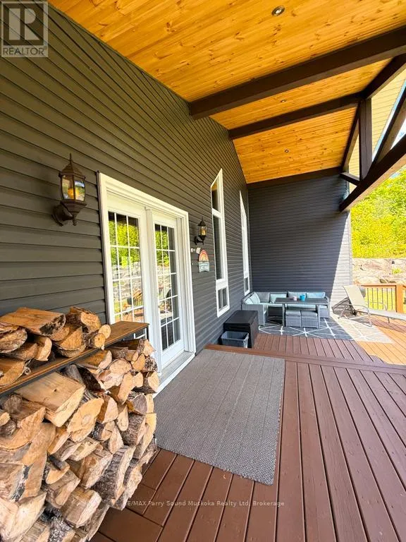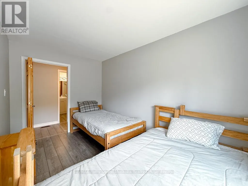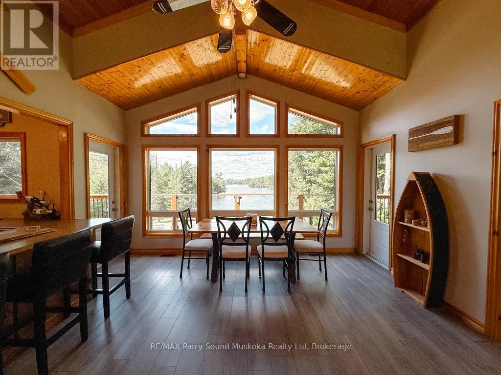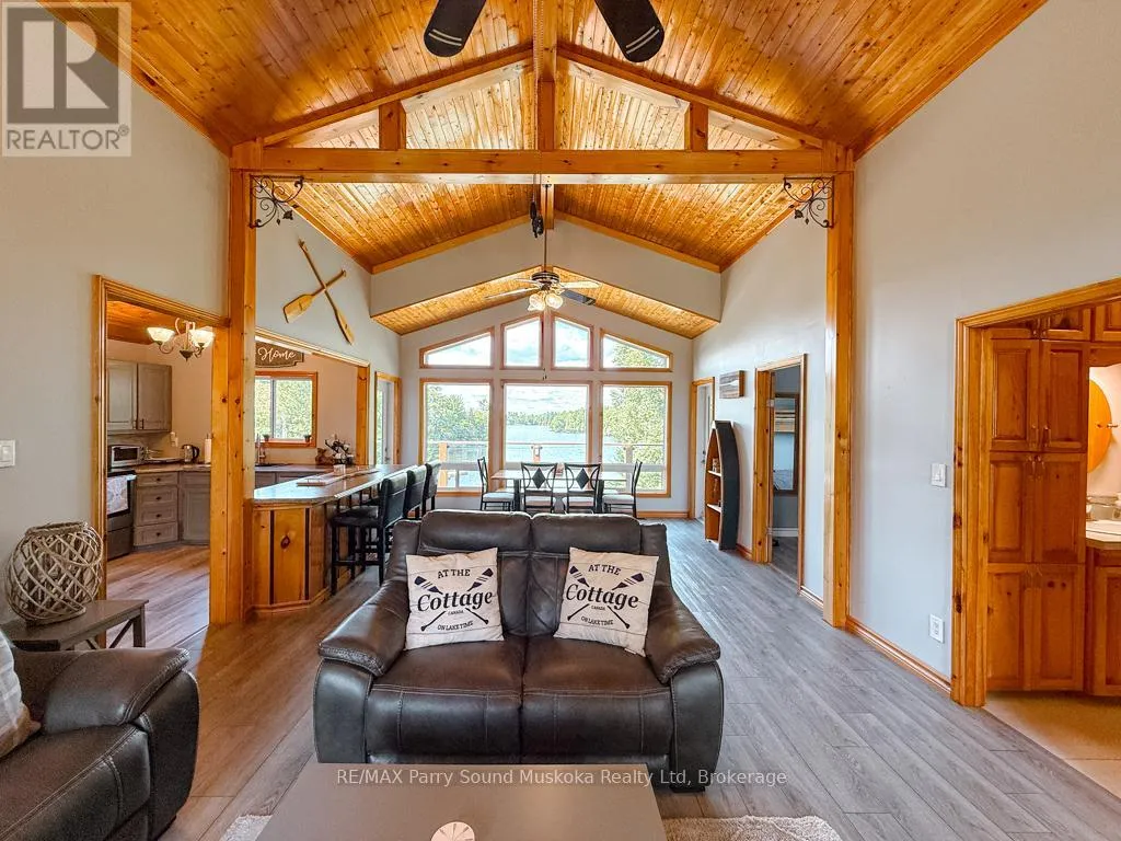 Cross Streets: Hurdville Road to Burnetts Road, first driveway on right hand side after Craigmore Drive.SOP at driveway . ** Directions: Hwy 400 to Mcdougall Rd to Hurdville Rd. Right on Hurdville then 1.5km left on Burnetts Rd. 127 Burnetts about 1.8 Km up on Burnetts Rd. SOP. or Hwy 124 to Hurdville Rd 7.8 km left on Burnetts Rd. SOP. Turnkey Lake Manitouwabing Four-Season Bungalow. Discover this recently renovated bungalow situated on 1.1 acres with 238 feet of waterfront along a quiet bay on Lake Manitouwabing. Enjoy the beauty of nature right in your backyard or at the sandy beach, where the Canadian Shield has been thoughtfully incorporated into the landscaping and gardens. This spacious home offers three bedrooms plus a den and two 3-piece bathrooms. The open-concept great room/ dining room, and kitchen create a welcoming atmosphere, enhanced by beautiful views from the wraparound deck. Walkouts to both the front and back decks allow for easy indoor-outdoor living. The covered porch provides an ideal space for barbecuing or entertaining, even on rainy days. Inside, the house boasts vaulted ceilings, a galley kitchen with a breakfast bar, a wood-burning stove, and a forced-air propane furnace to keep you comfortable on cool or wintery nights. Outside, there is a large garage and workshop, as well as ample parking to accommodate family and guests. The sandy beach waterfront features a Bunkie for additional guest accommodation, a firepit, and storage space for recreational equipment. There is also a dock for boating and swimming. The quiet bay, located just off Burnett's Bay, connects to kilometers of water for boating, exploring, tubing, waterskiing, or fishing on this scenic finger lake. Take a short boat ride or drive to Tait's Landing Marina for family treats like ice cream. Golf enthusiasts can visit the Ridge of Manitou Golf Course during the spring, summer, and fall. In the winter, the area transforms into a playground for ATV riding, snowmobiling, ice fishing, snowshoeing, and cross-country skiing. The property is conveniently located just twenty minutes from the McKellar Market and Parry Sound, making shopping and amenities easily accessible. (id:27476)