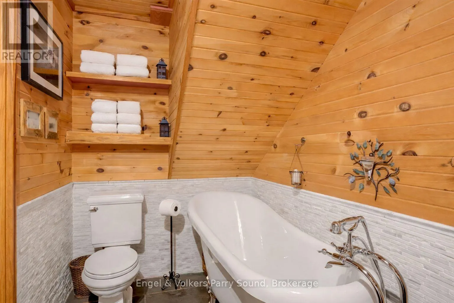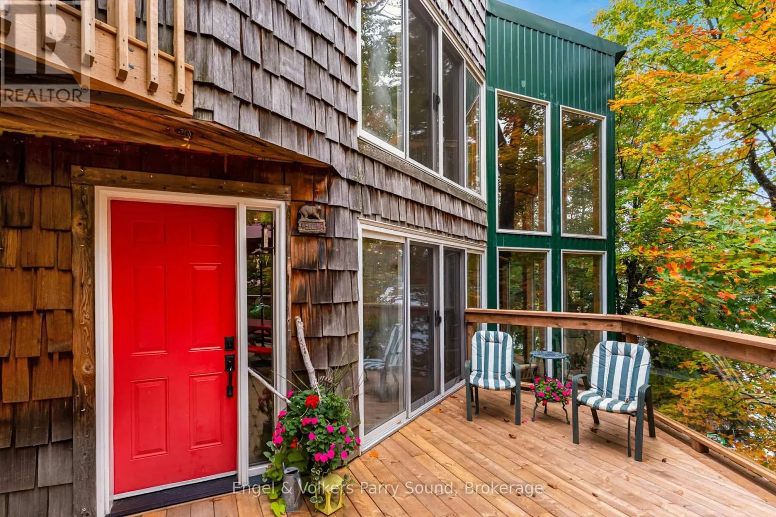 Cross Streets: Hwy 124 & Tait's Island. ** Directions: 124 East to Tait's Island, turn right. Continue to Manitou Drive, turn left. Property on Left. Welcome to your four-season lake house on prestigious Tait's Island, located just 15 minutes from Parry Sound. This inviting 3-bedroom split-plan home or cottage sits on a beautifully treed Lake Manitouwabing property with the convenience of year-round access via a municipal paved road. Designed to capture the beauty of cottage country, the home features an open-concept layout with vaulted ceilings, a skylight and large windows that fill the space with natural light and frame peaceful lake views. The warm and comfortable living area is centred around a cozy wood-burning fireplace, while heated Brazilian slate floors throughout the principal rooms provide warmth and comfort in every season. Thoughtfully designed for relaxed living and entertaining, the home offers a convenient second bathroom, generous storage and seamless indoor-outdoor flow to the expansive deck overlooking the lake. The shoreline is exceptional, offering gentle entry with sand underfoot in your private cove, ideal for swimming and perfect for families. Spend your days enjoying boating, fishing, water sports and long summer evenings at the dock. Lake Manitouwabing offers endless exploration by boat with easy access to The Ridge at Manitou Golf Club, Tait's Landing Marina and the Manitouwabing Outpost for gas and treats. Nearby amenities include the McKellar General Store, Middle River Farm Store and the popular Saturday summer market, with wine, beer, restaurant and pizza takeout options available by boat or car. An exceptional opportunity to enjoy the very best of Lake Manitouwabing cottage life. Welcome to Tait's Island, welcome home. (id:27476)