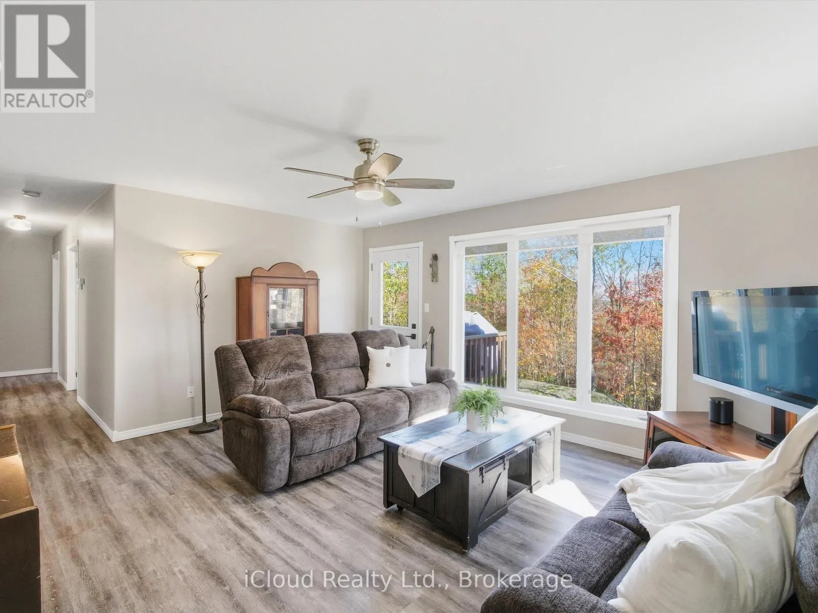 Hwy 124 & Springhill Road Discover your own piece of paradise on this beautifully maintained, nearly one-acre property offering peace, privacy, and a connection to nature. This charming 3-bedroom raised bungalow reflects pride of ownership throughout and is ideally situated near the quaint village of McKellar. Surrounded by mature trees, the home is privately set back from the road with a gently winding driveway that enhances its inviting curb appeal. The location is a nature lover's dream, with numerous lakes, beaches, parks, and public boat launches just minutes away. Conveniently located close to Highway 124, the property provides easy access to Parry Sound, approximately a 15-minute drive, making it an ideal blend of rural tranquility and accessibility. The home is serviced by a drilled well, with a secondary dug well currently in use for garden irrigation. The lower level features a partial basement with walk-out access to the wood shed, utility area, and additional storage. A highly efficient woodstove in addition to a forced air furnace with smart thermostat provides a warm, cozy atmosphere during the colder months. This property offers a rare opportunity to enjoy a serene, well-cared-for home in a desirable area perfect as a year-round residence or peaceful retreat. Note: Low taxes, low maintenance! (id:27476)