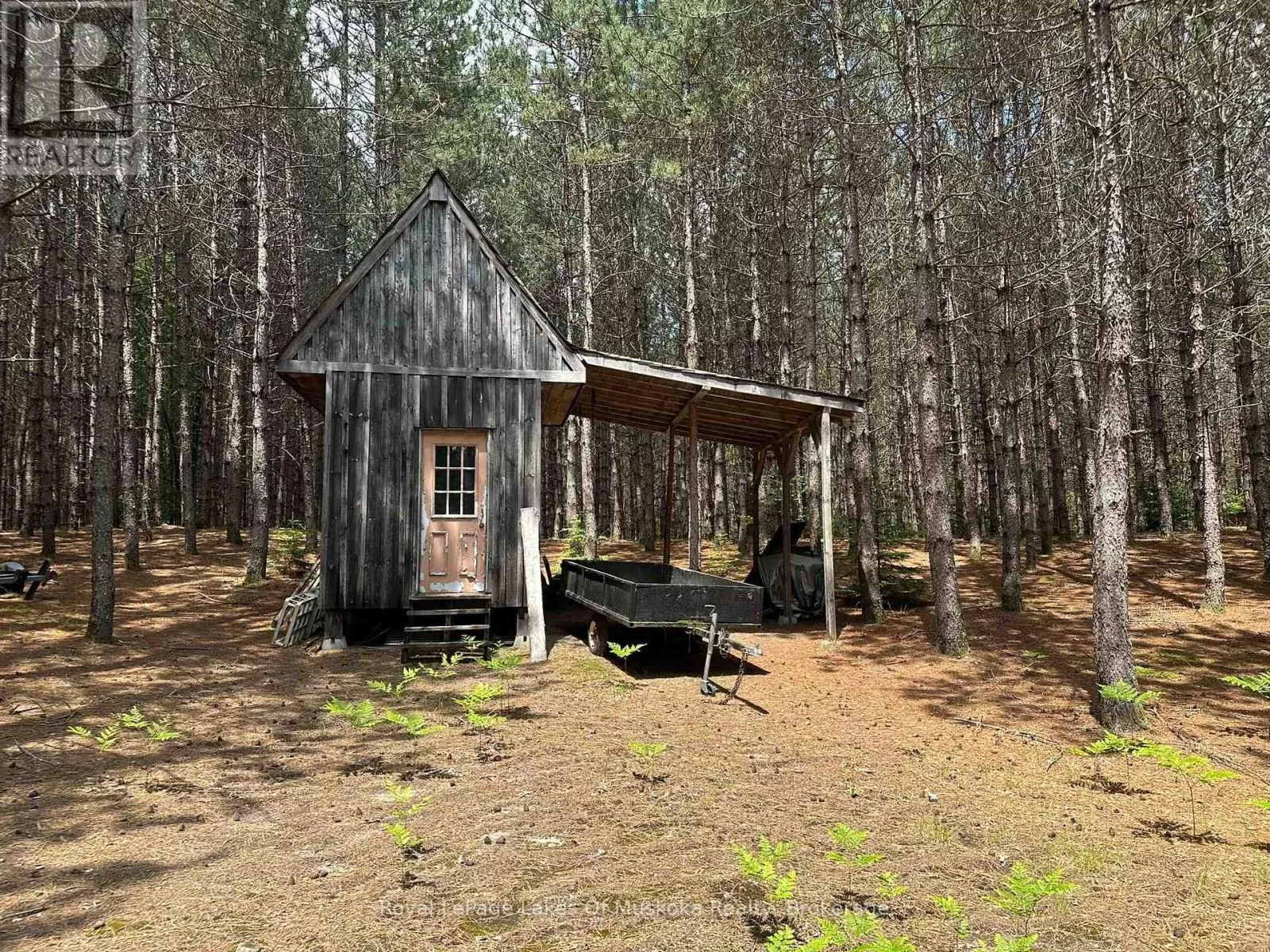 Cross Streets: HWY 518/Almaguin Drive. ** Directions: Highway 11 to Highway 518 W to SOP. Welcome to your very own private getaway in the beautiful Almaguin Highlands. This amazing 200 acre parcel comes complete with two bedroom cabin equipped with a propane stovetop and off grid wash facility as well as multiple out buildings including a 28 foot travel trailer for overflow guests. A gated entrance located at the year round road ensures your privacy when you're at the property taking in everything nature has to offer or away from the property at that pesky career. Also included with the property is a tractor with blower and grader attachments to ensure the long driveway into your private oasis remains in great shape and you are able to use the property for the maximum amount of time throughout the year. Doe Lake access is a short drive away and perfect for hooking up the boat and spending the day on this lake or any other of the multiple lakes in the area. There a multiple trails throughout the property to ensure fun times for everyone whether you're ATVing, dirt biking or snowmobiling. Mature pine trees on the property are beautiful and solar panels give a small amount of power for necessities during your stay. This camp is truly a getaway for someone looking for some alone time. (id:27476)