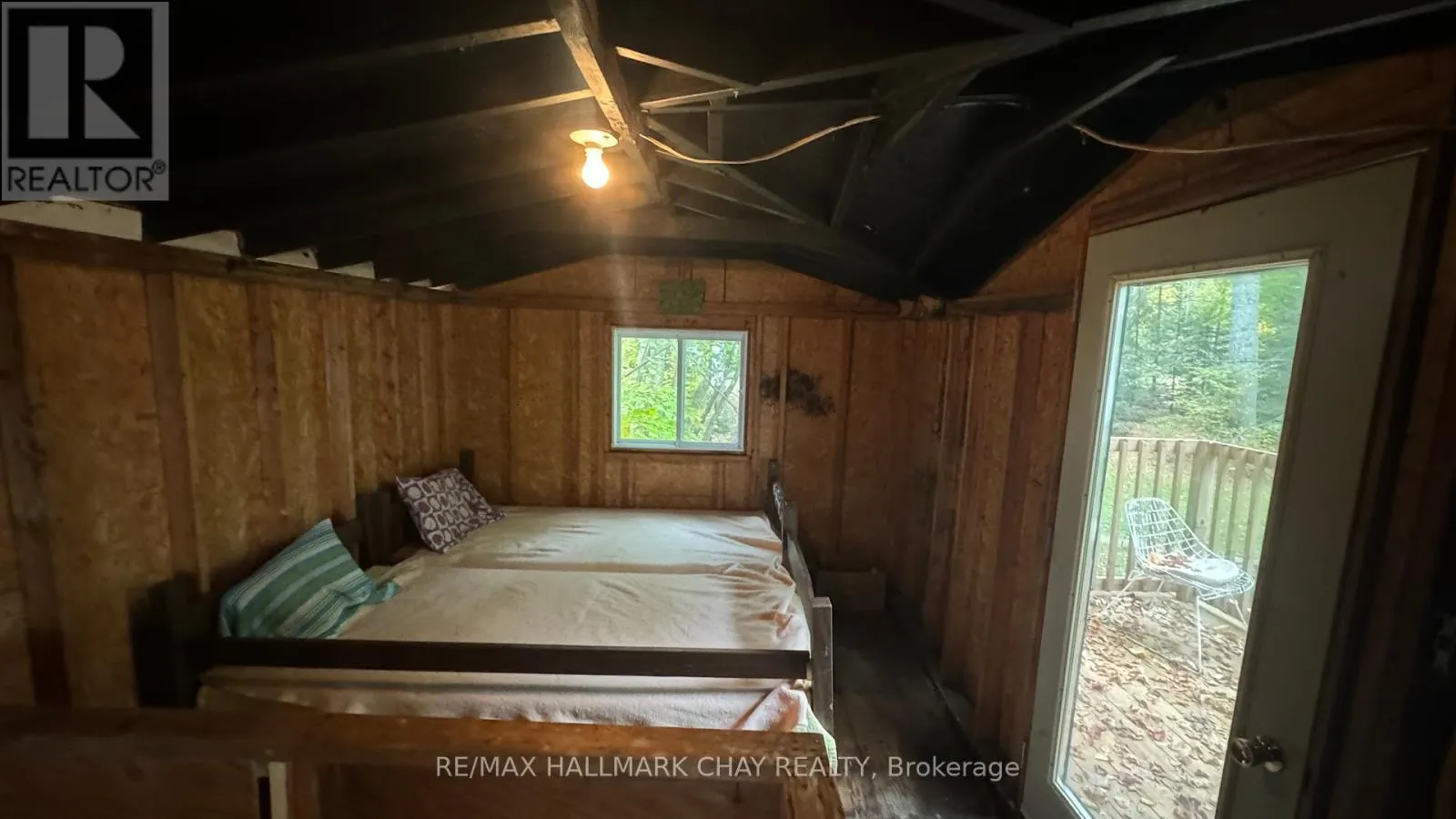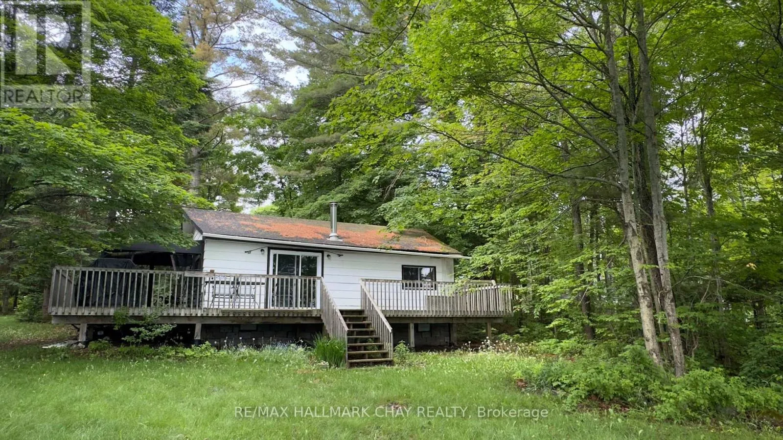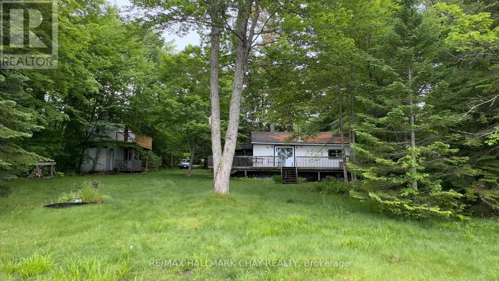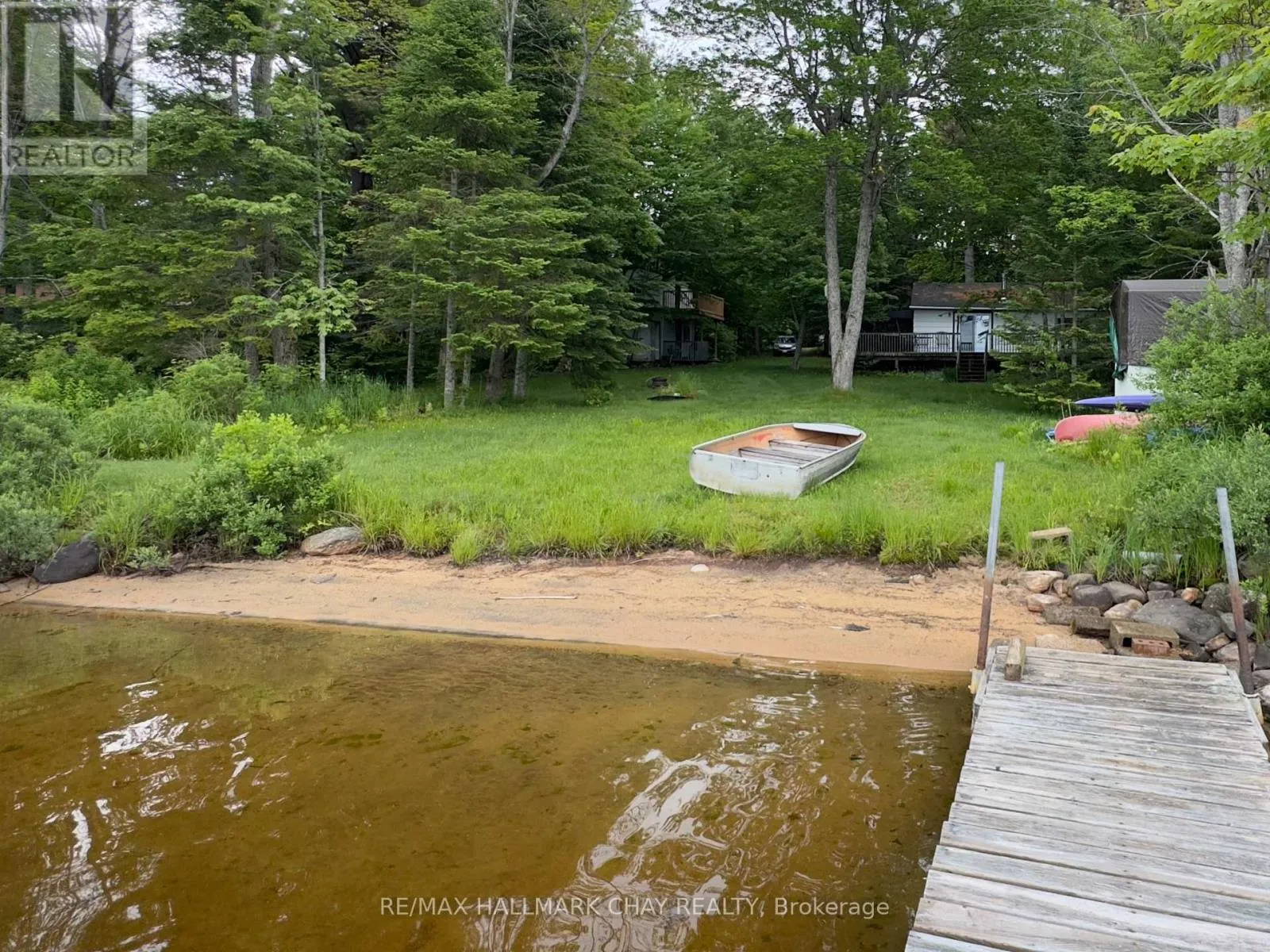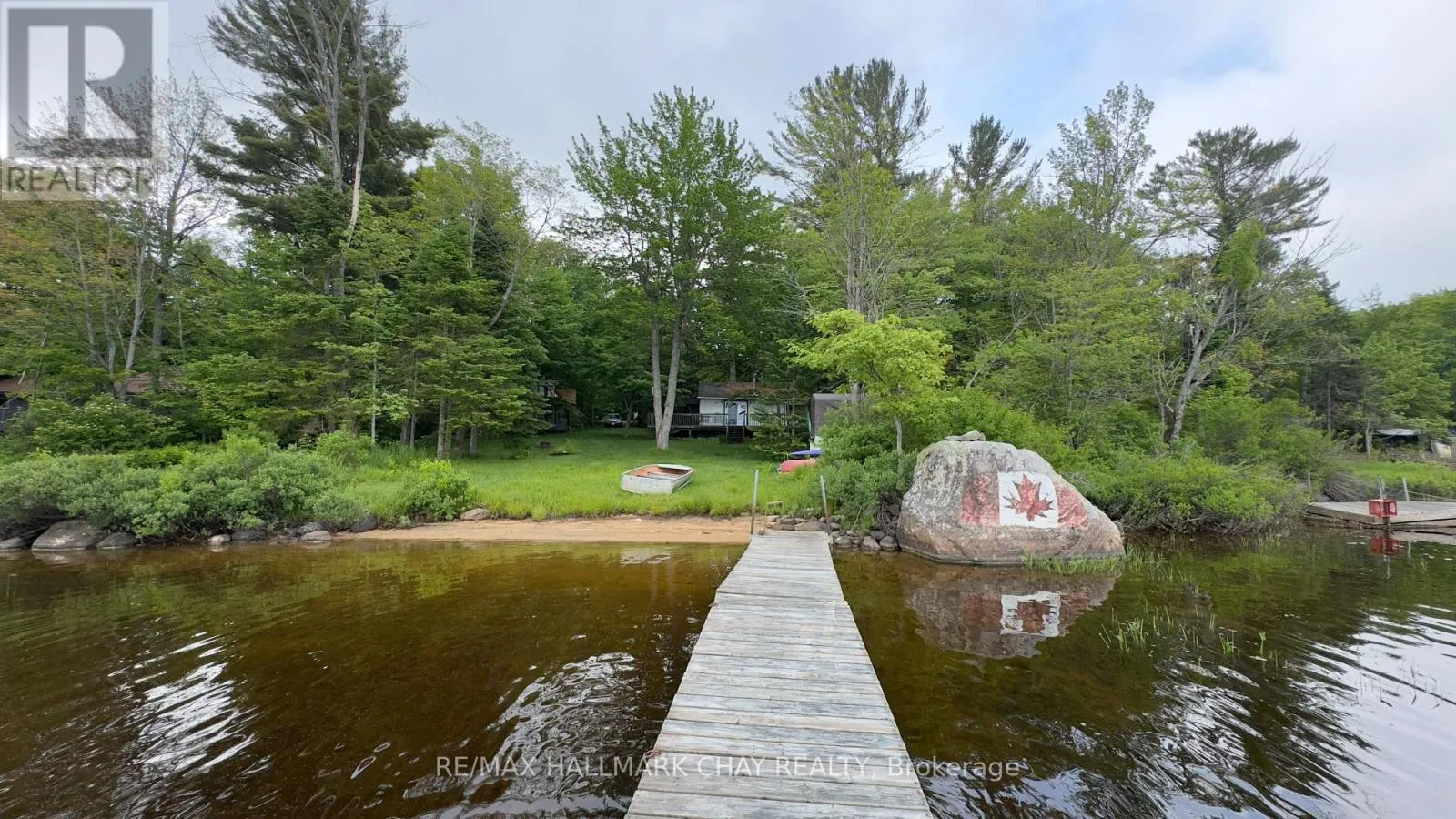 Cross Streets: Hwy 518 & East Bear Lake Rd. ** Directions: HWY 11 N to HWY 518, West to East to Bear Lake Rd. LAKEFRONT LIVING ON BEAR LAKE 102 FEET OF WATERFRONT! Escape to the serenity of Bear Lake with this charming 2-bedroom, 1-bathroom cottage offering picturesque lake views and 3 seasons of enjoyment. Set on over half an acre with a gentle slope to the waters edge, the property features a 780 sq ft wraparound deck perfect for taking in the view. Inside, the cozy cottage includes a spacious living room with lake views and a wood stove for added ambiance and efficient heating. A separate 294 sq ft two-storey Bunkie with a new upper-level deck and composting toilet provides space for guests or a private retreat. Ideal for outdoor enthusiasts, enjoy summer fun on the lake or winter adventure on nearby snowmobile trails. Just 40 minutes from Hidden Valley, it's easily accessible on a municipally maintained road. Bear Lake, located in the Parry Sound District, is a hidden gem known for clear waters ideal for swimming, fishing, kayaking, and canoeing. Surrounded by forest and scenic trails, the area offers a peaceful yet vibrant atmosphere with a mix of cottages and year-round homes. It would be easy to extend use into the winter simply add a heat line to the dug well and you're ready for year-round living. The original front block wall is no longer load-bearing and now functions as skirting to enclose the underside of the cottage. Structural support has been fully upgraded with a new beam and piers beneath the front of the cabin. The block work was reassembled for enclosure only and does not contribute to the structure. Don't miss this opportunity, schedule your private showing and start living the lake life! (id:27476)