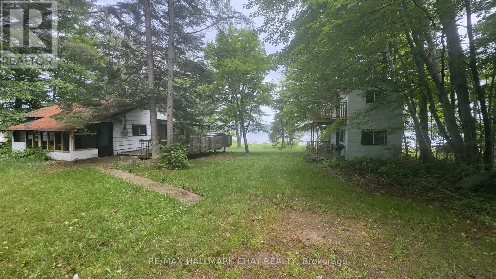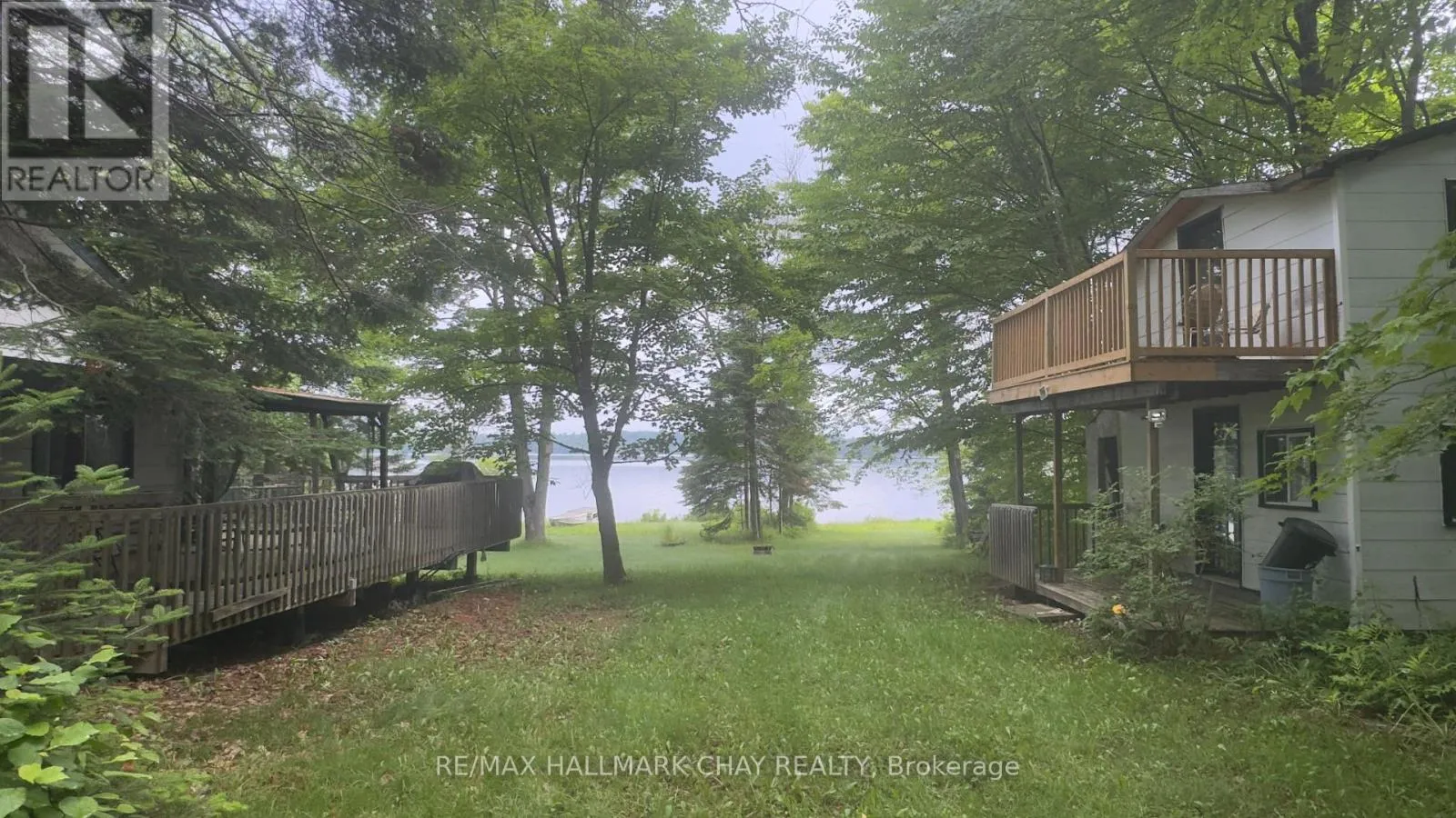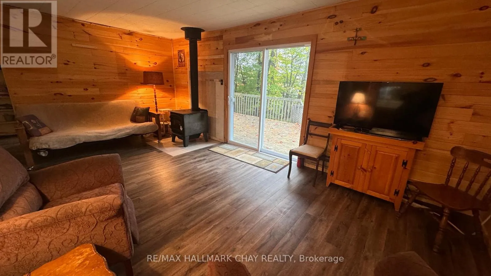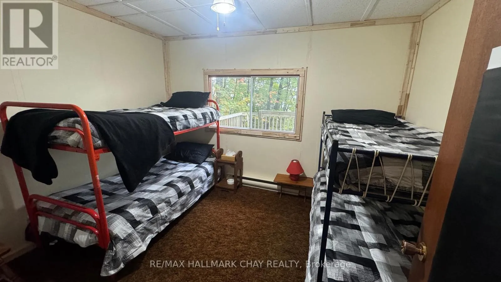 Cross Streets: Hwy 518 & East Bear Lake Rd. ** Directions: HWY 11 N to HWY 518, West to East to Bear Lake Rd. LAKEFRONT LIVING ON BEAR LAKE 102 FEET OF WATERFRONT! Escape to the serenity of Bear Lake with this charming 2-bedroom, 1-bathroom cottage offering picturesque lake views and 3 seasons of enjoyment. Set on over half an acre with a gentle slope to the waters edge, the property features a 780 sq ft wraparound deck perfect for taking in the view. Inside, the cozy cottage includes a spacious living room with lake views and a wood stove for added ambiance and efficient heating. A separate 294 sq ft two-storey Bunkie with a new upper-level deck and composting toilet provides space for guests or a private retreat. Ideal for outdoor enthusiasts, enjoy summer fun on the lake or winter adventure on nearby snowmobile trails. Just 40 minutes from Hidden Valley, it's easily accessible on a municipally maintained road. Bear Lake, located in the Parry Sound District, is a hidden gem known for clear waters ideal for swimming, fishing, kayaking, and canoeing. Surrounded by forest and scenic trails, the area offers a peaceful yet vibrant atmosphere with a mix of cottages and year-round homes. It would be easy to extend use into the winter simply add a heat line to the dug well and you're ready for year-round living. The original front block wall is no longer load-bearing and now functions as skirting to enclose the underside of the cottage. Structural support has been fully upgraded with a new beam and piers beneath the front of the cabin. The block work was reassembled for enclosure only and does not contribute to the structure. Don't miss this opportunity, schedule your private showing and start living the lake life! (id:27476)