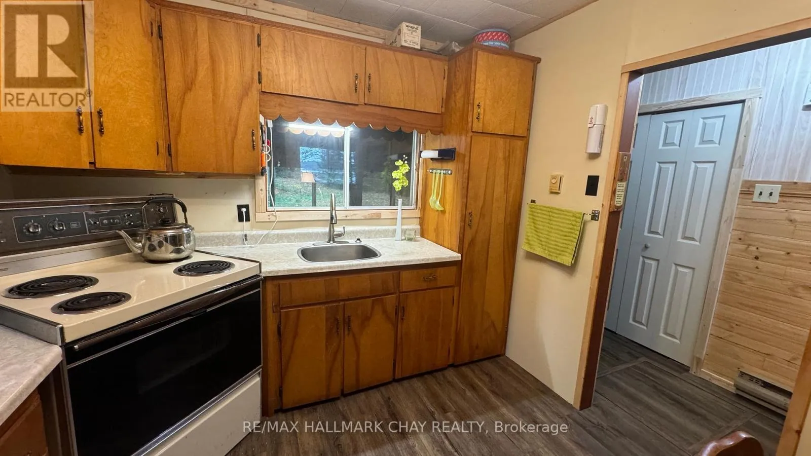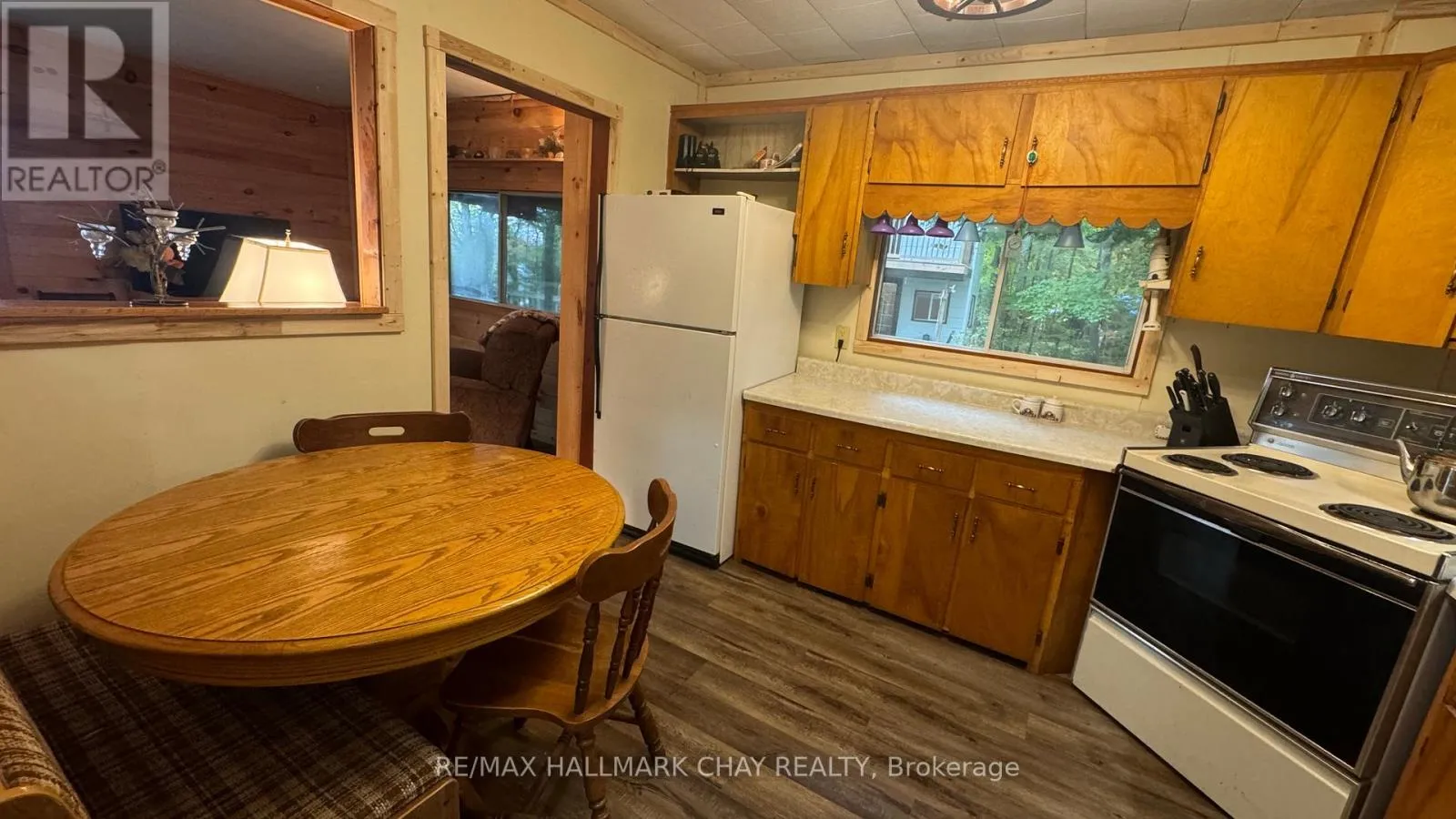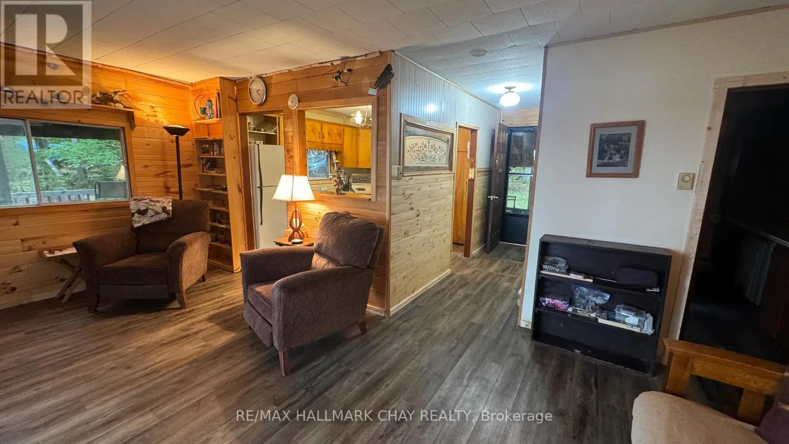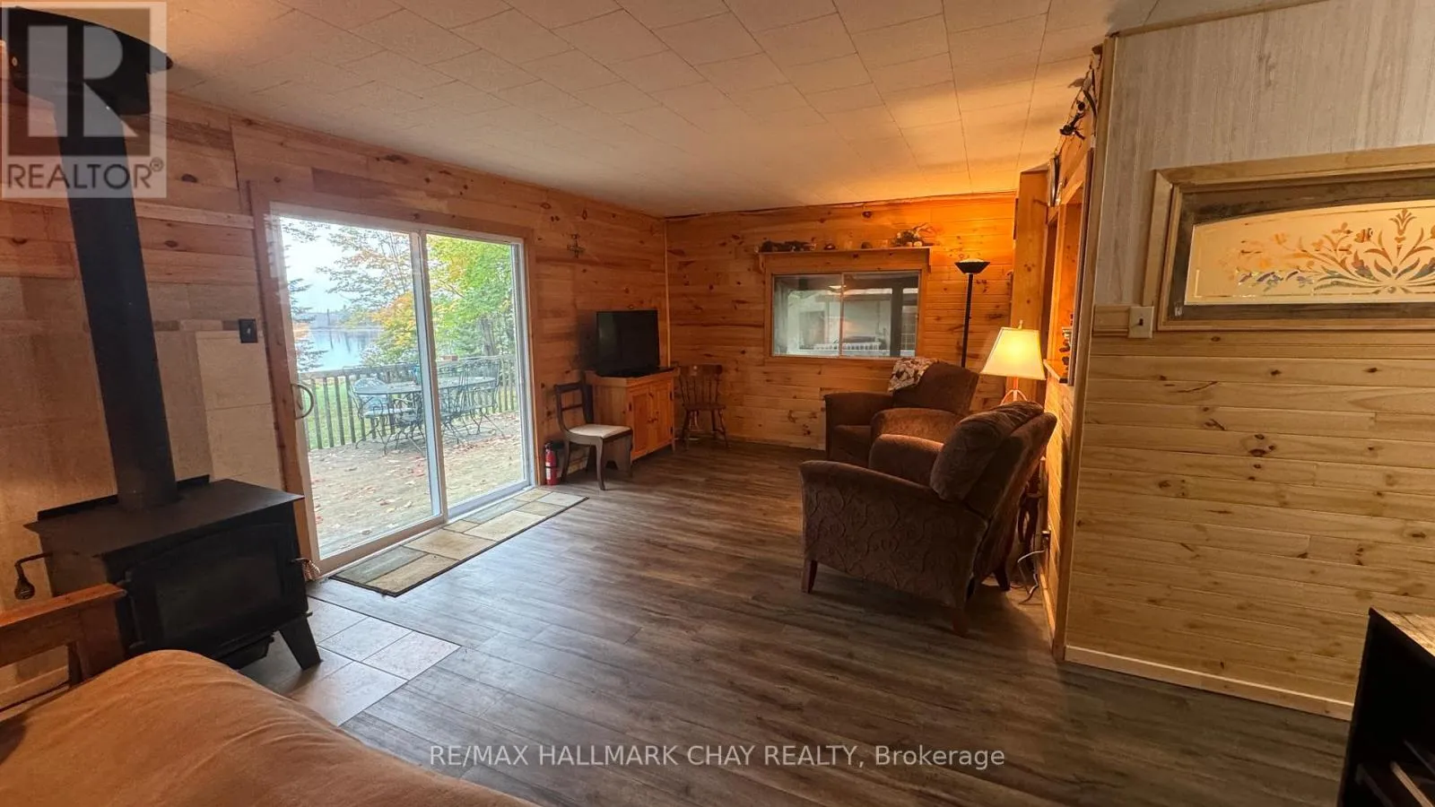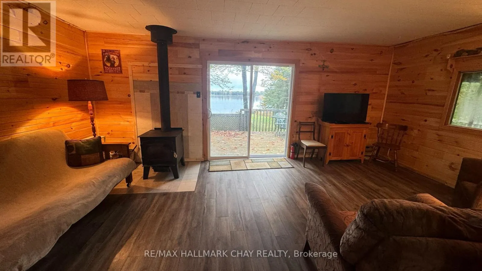 Cross Streets: Hwy 518 & East Bear Lake Rd. ** Directions: HWY 11 N to HWY 518, West to East to Bear Lake Rd. LAKEFRONT LIVING ON BEAR LAKE 102 FEET OF WATERFRONT! Escape to the serenity of Bear Lake with this charming 2-bedroom, 1-bathroom cottage offering picturesque lake views and 3 seasons of enjoyment. Set on over half an acre with a gentle slope to the waters edge, the property features a 780 sq ft wraparound deck perfect for taking in the view. Inside, the cozy cottage includes a spacious living room with lake views and a wood stove for added ambiance and efficient heating. A separate 294 sq ft two-storey Bunkie with a new upper-level deck and composting toilet provides space for guests or a private retreat. Ideal for outdoor enthusiasts, enjoy summer fun on the lake or winter adventure on nearby snowmobile trails. Just 40 minutes from Hidden Valley, it's easily accessible on a municipally maintained road. Bear Lake, located in the Parry Sound District, is a hidden gem known for clear waters ideal for swimming, fishing, kayaking, and canoeing. Surrounded by forest and scenic trails, the area offers a peaceful yet vibrant atmosphere with a mix of cottages and year-round homes. It would be easy to extend use into the winter simply add a heat line to the dug well and you're ready for year-round living. The original front block wall is no longer load-bearing and now functions as skirting to enclose the underside of the cottage. Structural support has been fully upgraded with a new beam and piers beneath the front of the cabin. The block work was reassembled for enclosure only and does not contribute to the structure. Don't miss this opportunity, schedule your private showing and start living the lake life! (id:27476)